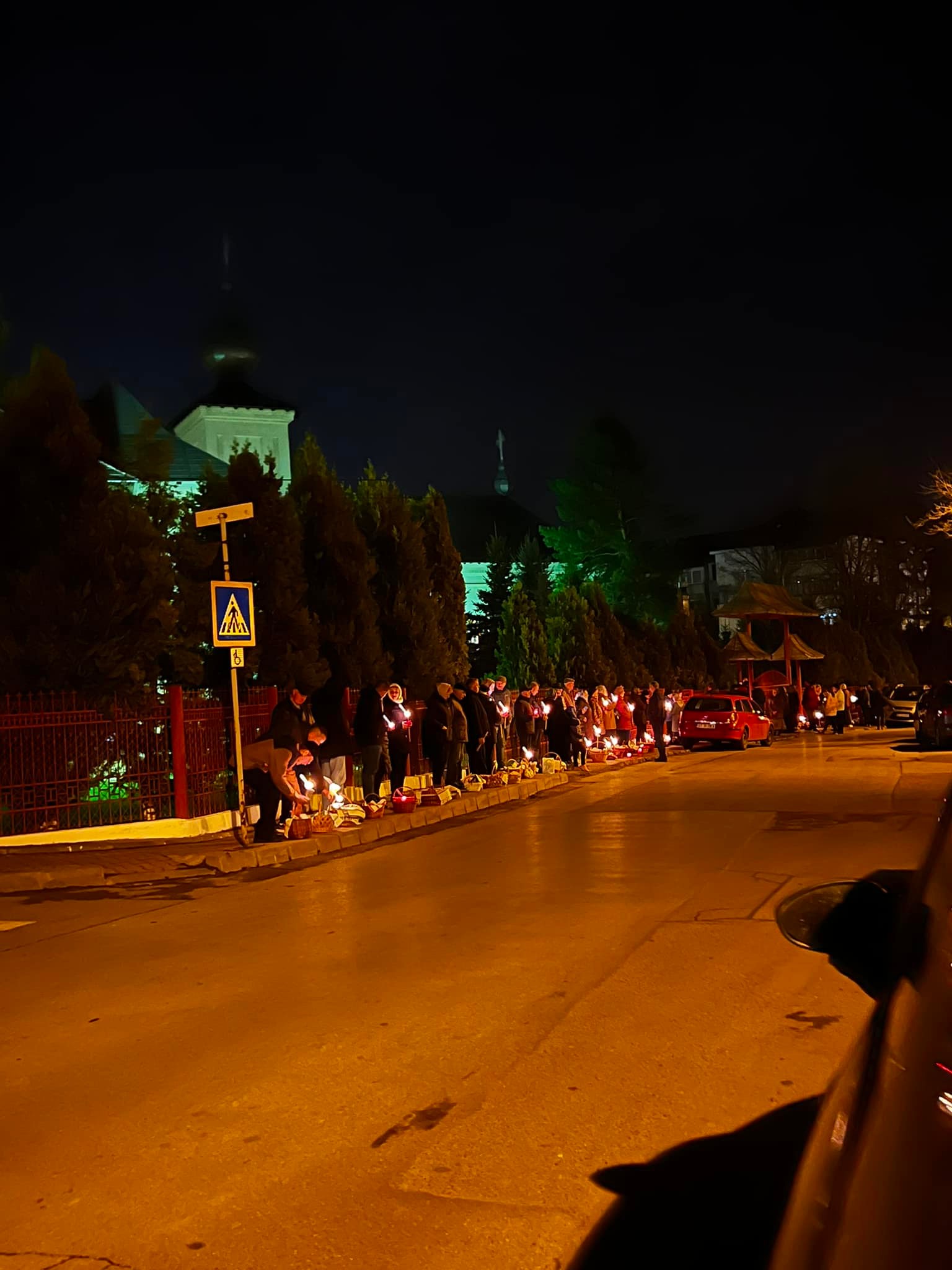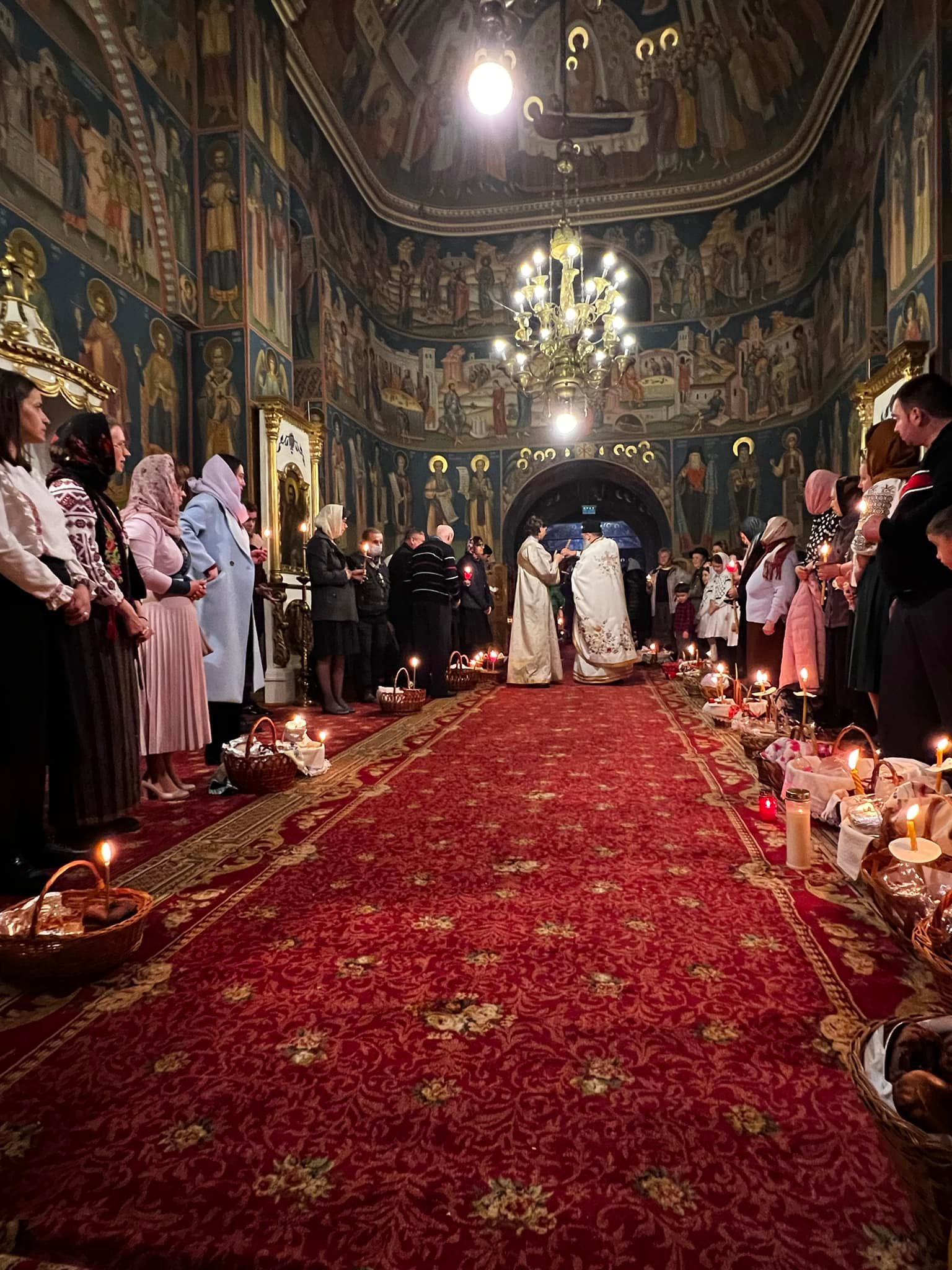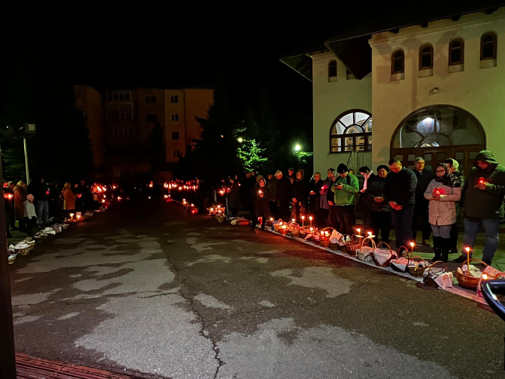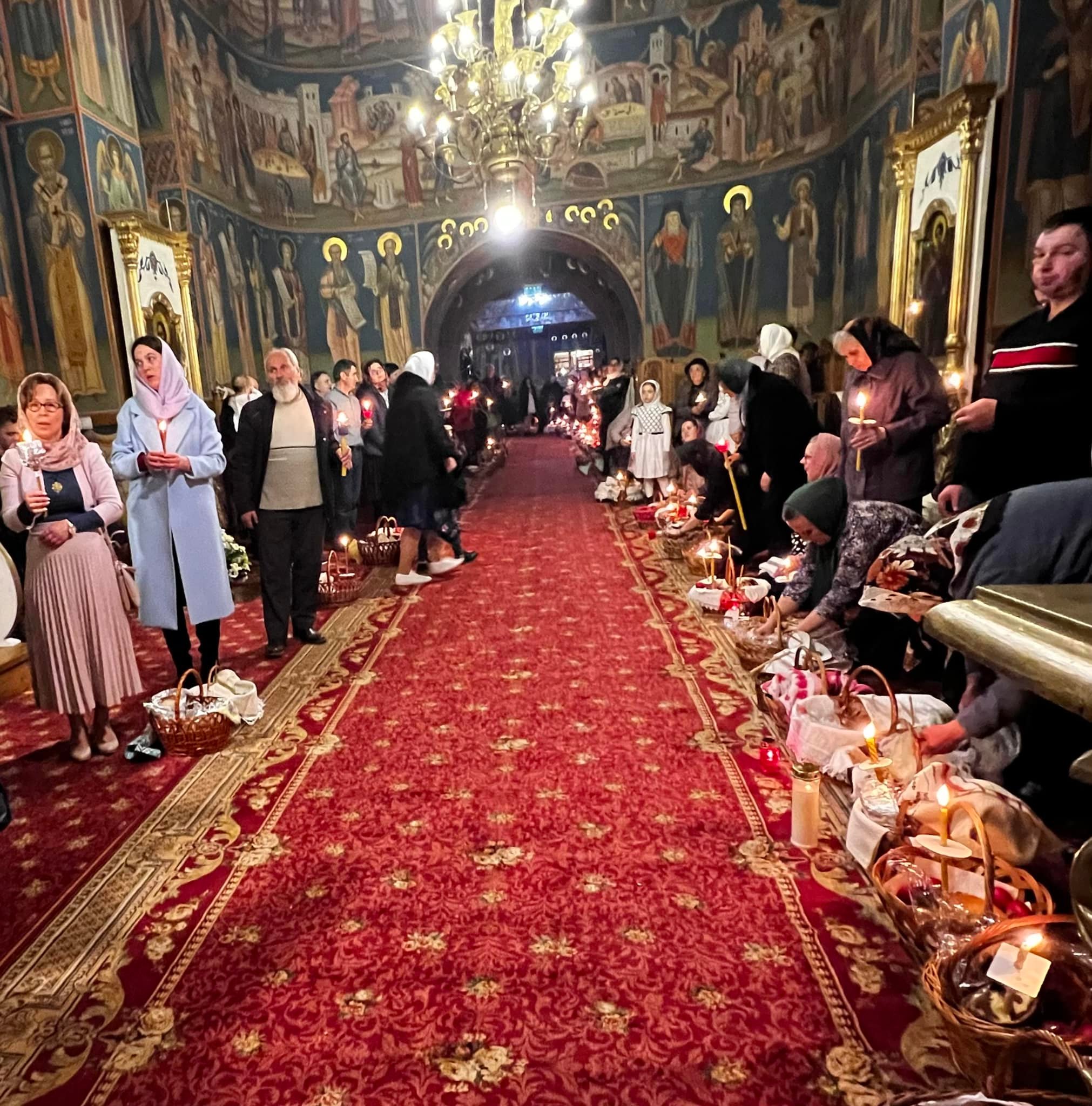 După slujbă, creștinii au mers să își sfințească coșurile cu bunătățile pentru Paște.