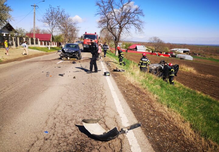 FOTO! Accident, marți dimineață, în județul Botoșani. O mașină s-a răsturnat; o femeie a fost rănită