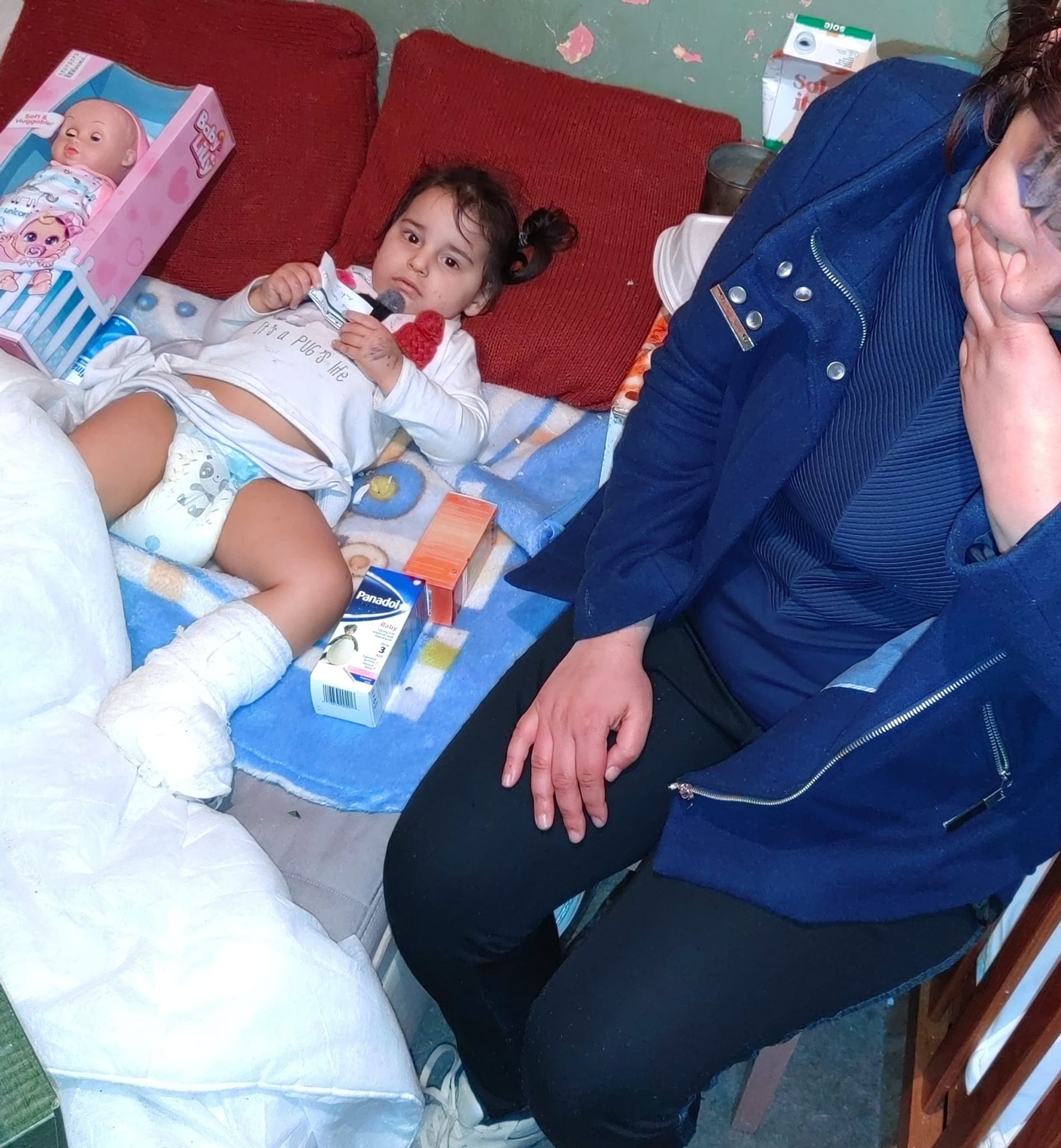 „Acum 2 luni a călcat în oala cu ciorba pusa la răcit, iar noi i-am dus medicamentele necesare și astăzi are doar câteva cicatrici care vor trece de tot în curând”, povestește Simona.