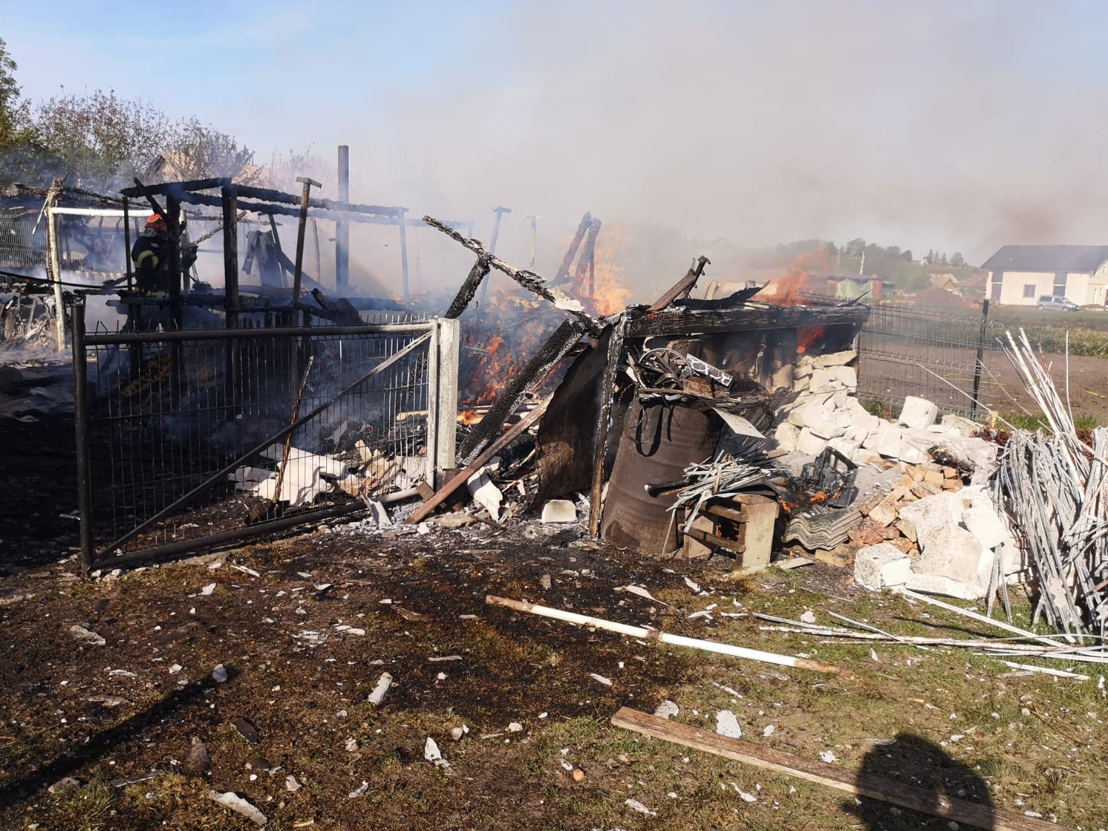 O anexă din satul Pădureni a fost transformată în scrum, miercuri după-amiază. Distruse de flăcări au fost și bunurile din interior (lemne de foc, aparatură electrocasnică și unelte, porumb, grâu și mobilier). Și 100 de pui și 10 curci au pierit în incendiu. Totul din cauza jarului căzut din sobă pe materiale combustibile.