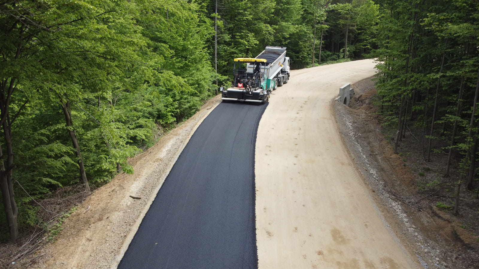 Pe cel de al doilea sector din pădure, se continuă lucrările de supralărgire și stabilizare a căii de rulare, precum și cele la podețele transversale, susține sursa citată.