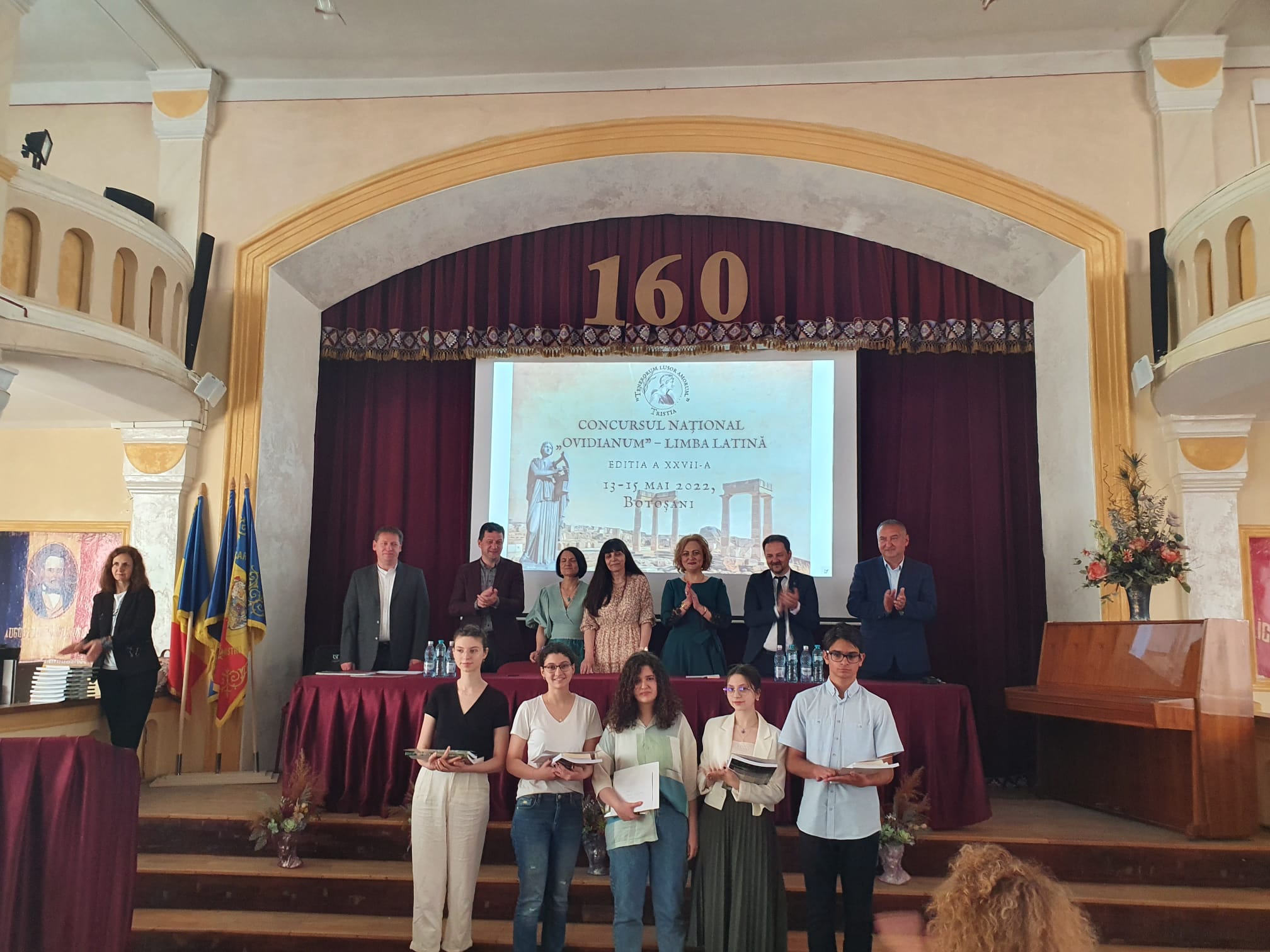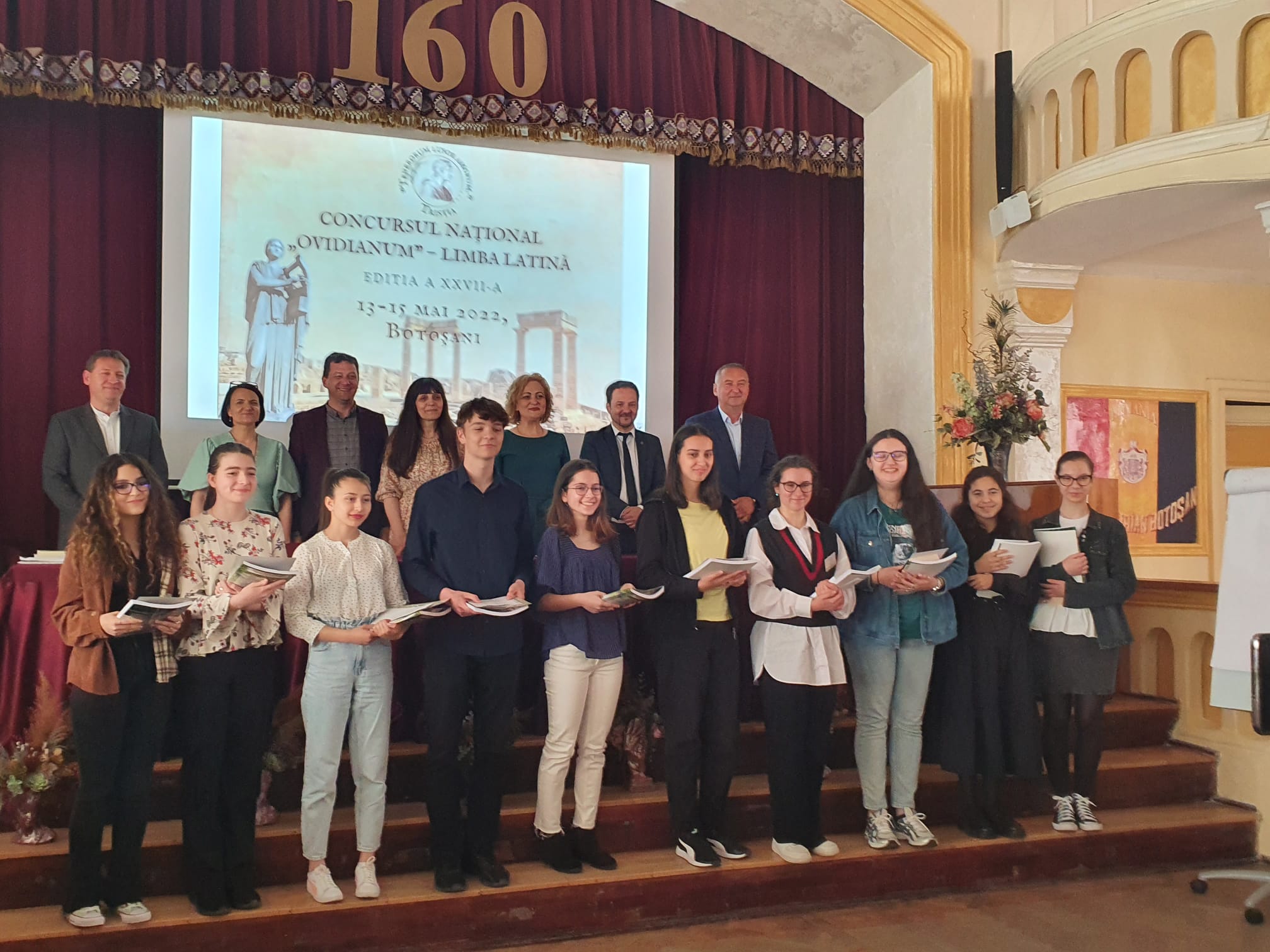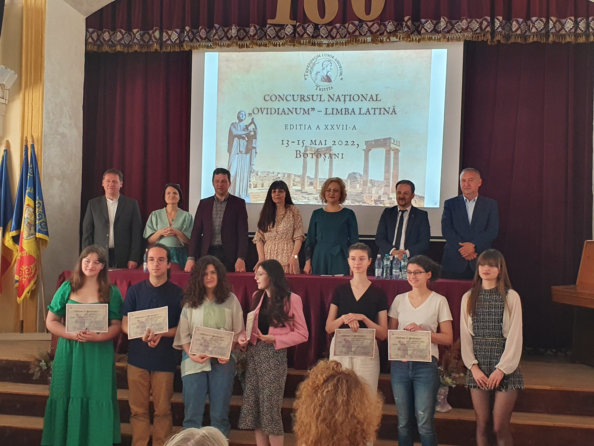 Duminică, a avut loc festivitatea de premiere a concursului, desfășurat între 13-15 mai, la Botoșani. unde au participat aproximativ 40 de elevi din țară, cei mai buni pe traduceri din opera lui Ovidius.