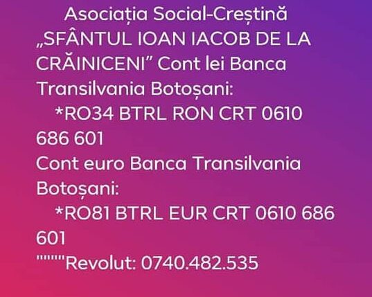 Nu s-a îndurat însă, nu suportă să stea departe de ei și face tot posibilul să îi protejeze și să îi educe așa cum știe mai bine. Împreună cu cei doi copilași, femeia stă într-o locuință cu chirie. Cei care vor să o ajute, din puținul lor, pot face donații în conturile asociației „Sfântul Ioan Iacob de la Crăiniceni”, specifind numele ei.