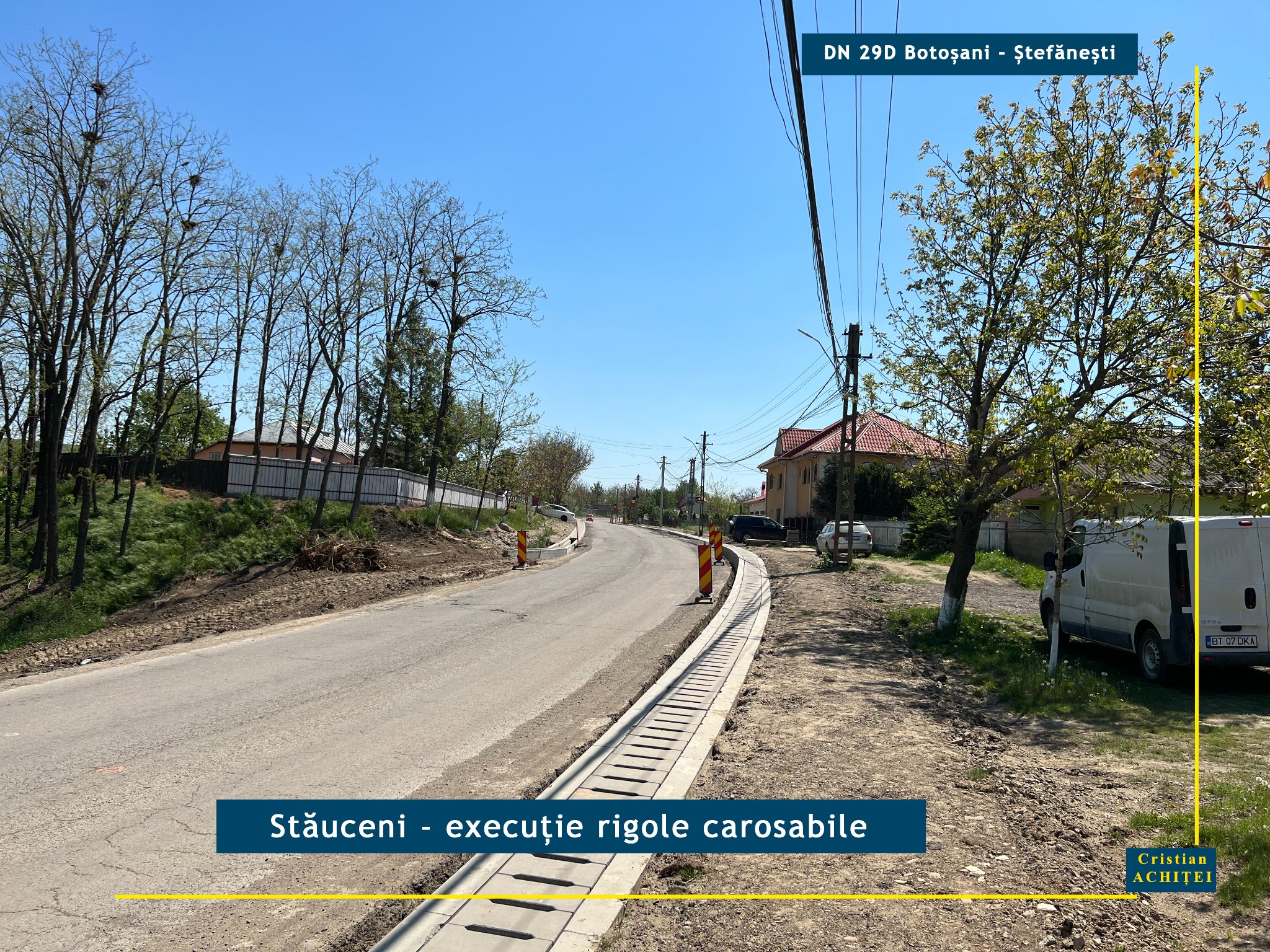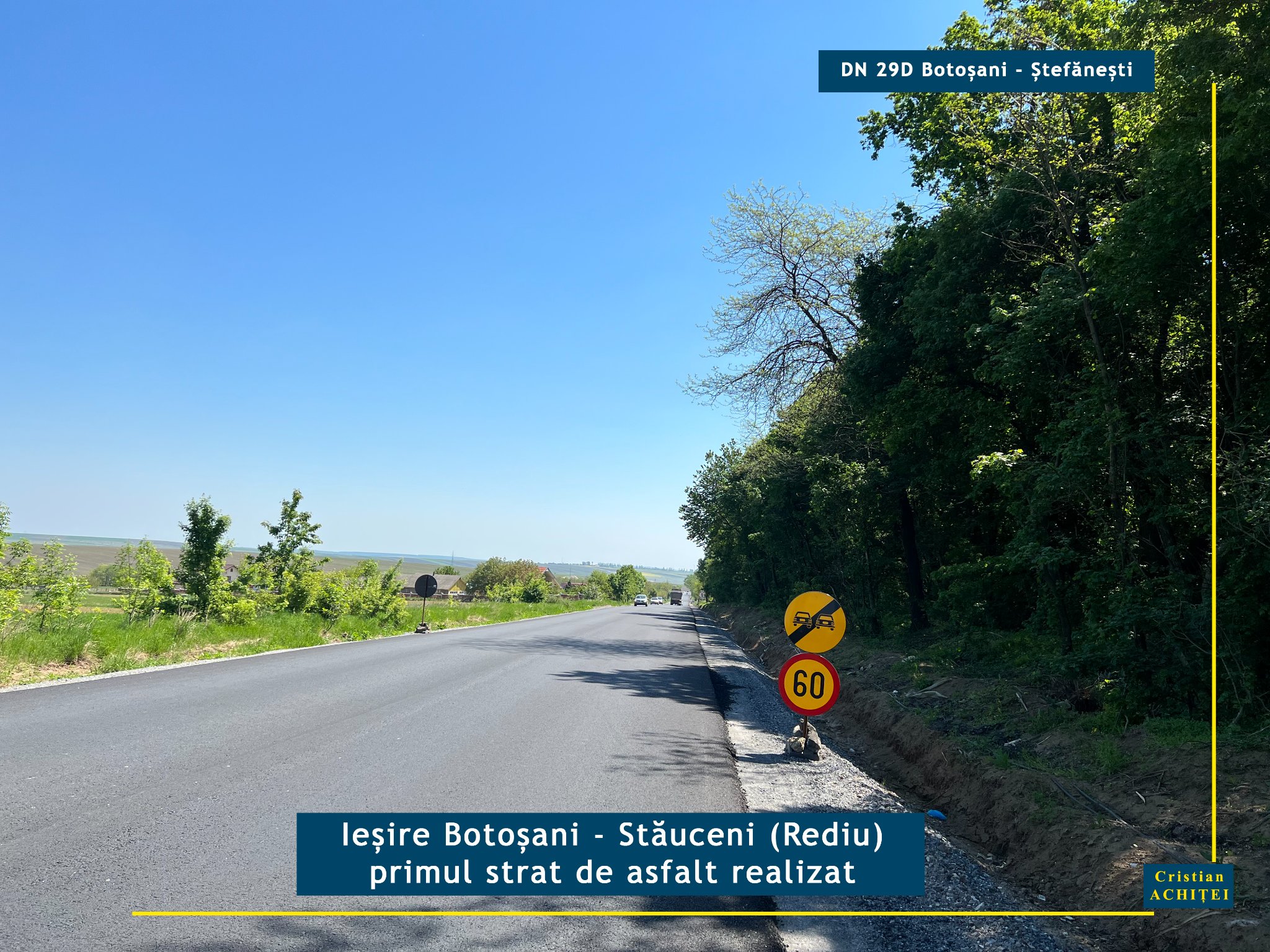 „Personal, ca parlamentar de Botoșani și inginer de drumuri, sunt mulțumit de ritmul și calitatea lucrărilor executate pe Drumul Național DN 29D până la această dată. Continui să monitorizez această lucrare de investiții importantă pentru botoșăneni și să fac tot ce îmi stă în putință pentru ca proiectul să poată fi dus la bun sfârșit conform calendarului stabilit prin contract. În acest context, am fost unul dintre cei care au susținut nevoia adoptării în regim de urgență a unui act normativ care să reglementeze modul de acoperire a cheltuielilor și costurilor suplimentare, rezultate ca urmare a majorării prețurilor materialelor de construcție și combustibilului. Salut emiterea de către Guvernul Nicolae Ciucă, la începutul acestei luni, a ordonanței de urgență care reglementează această problemă, asigurându-le astfel tuturor constructorilor susținerea financiară necesară pentru buna derulare a proiectelor de investiții realizate cu fonduri externe nerambursabile. De asemenea, la mijlocul lunii februarie, i-am adresat o interpelare ministrului Transporturilor, Sorin Grindeanu, solicitându-i adoptarea cât mai rapidă a unei soluții pentru modernizarea segmentului de 3,3 kilometri din Drumul Național DN 29D, din zona Vânători-Șoldănești, care nu a fost inclus în proiectul de modernizare. În răspunsul ministrului, am primit asigurări că a fost elaborată expertiza tehnică pentru acest tronson, iar aceasta urmează să fie supusă avizării Consiliului Tehnico-Economic al DRDP Iași. Ulterior, ”se va întocmi nota de fundamentare pentru aprobarea necesității și oportunității introducerii serviciilor de proiectare în lista obiectivelor de investiții cu finanțare de la bugetul de stat pe anul 2022”, conform răspunsului ministrului”, a precizat Achiței.