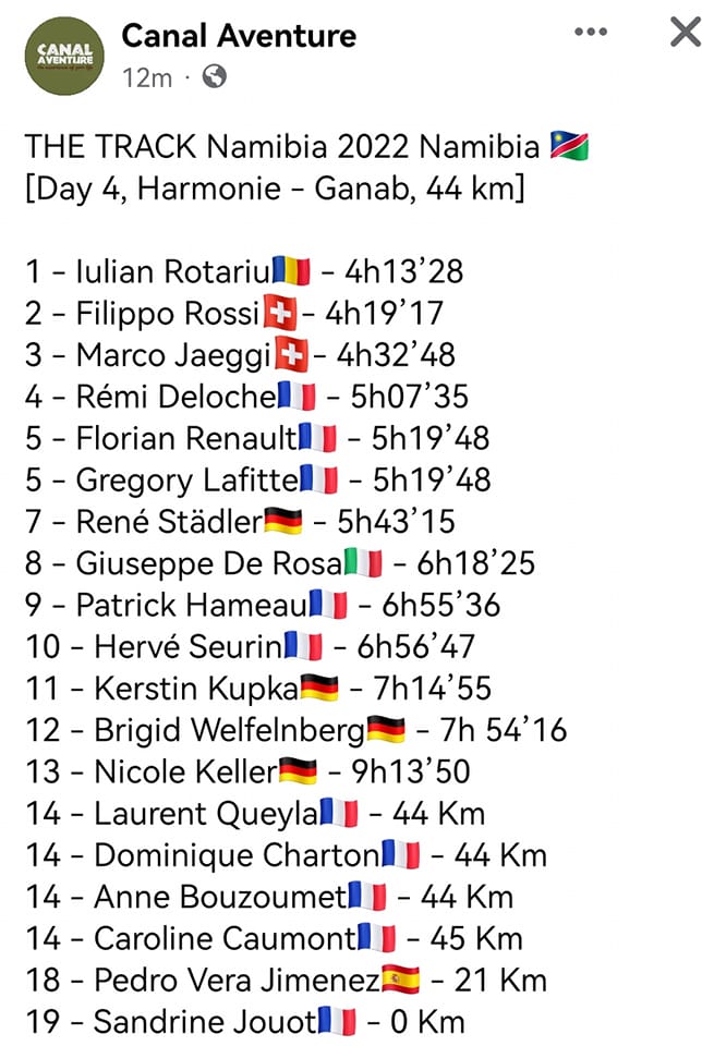 Organizat de Canal Aventure, ultramaratonul The Track Namibia se desfășoară în perioada 18 – 27 mai. Concurenții au de parcurs distanța totală de 520 de kilometri, în nouă etape, fiind vorba de o cursă autosusținută. La start s-au înscris 19 sportivi, Iulian Rotariu fiind singurul român care participă la această cursă.