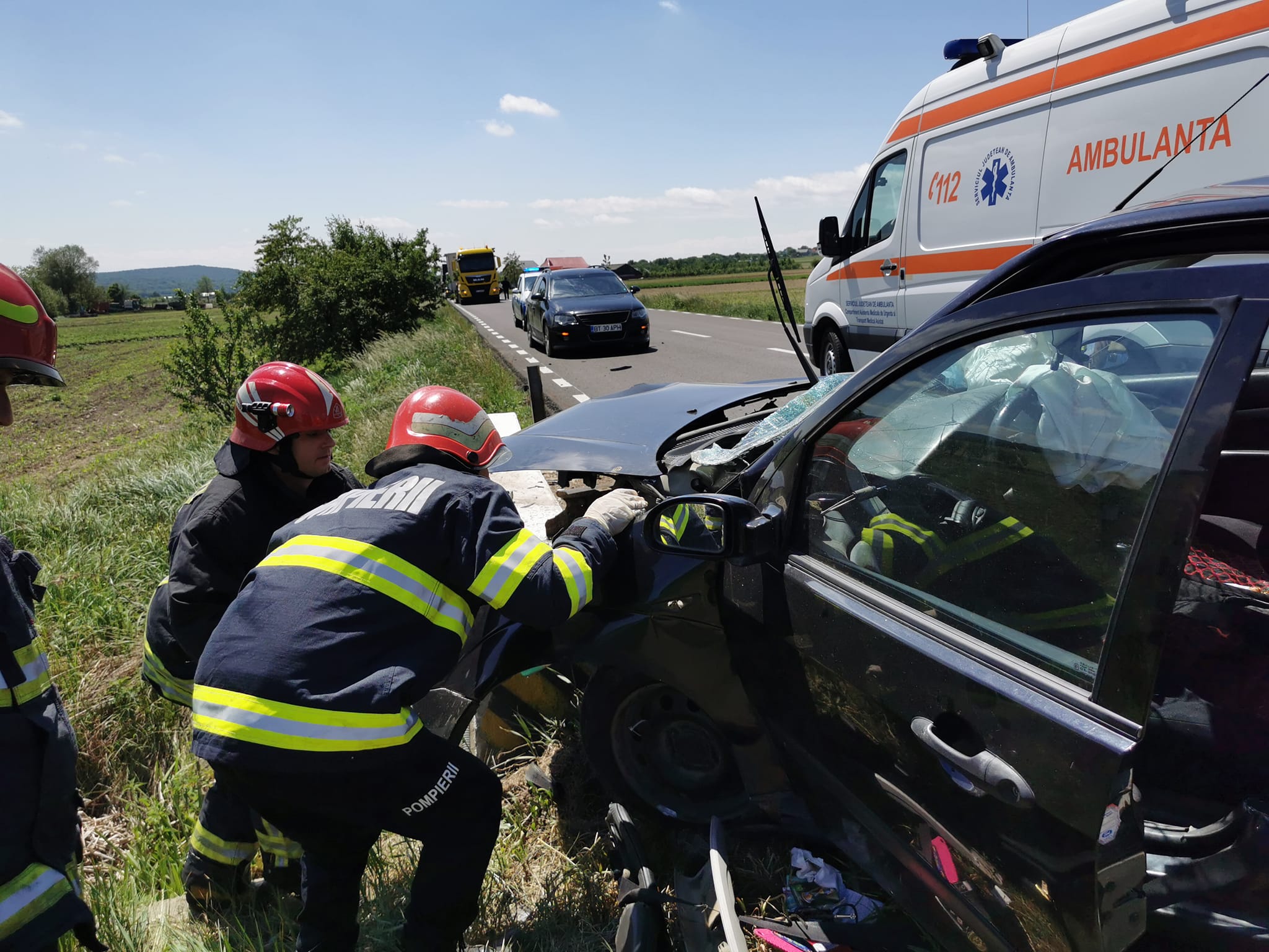Pompierii au constatat că femeia, in varsta de 40 ani, era încarcerata, fiind conștienta. Pentru a o extrage din masina, salvatorii au taiat stalpul si portiera din stanga-spate. Soferita a fost preluata de echipajul medical si transportata la spital pentru ingrijiri medicale de specialitate.