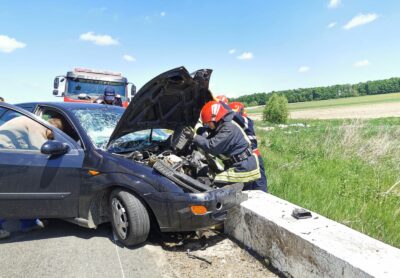 FOTO & VIDEO Accident într-o comună din Botoșani! O femeie a ajuns cu mașina într-un cap de pod