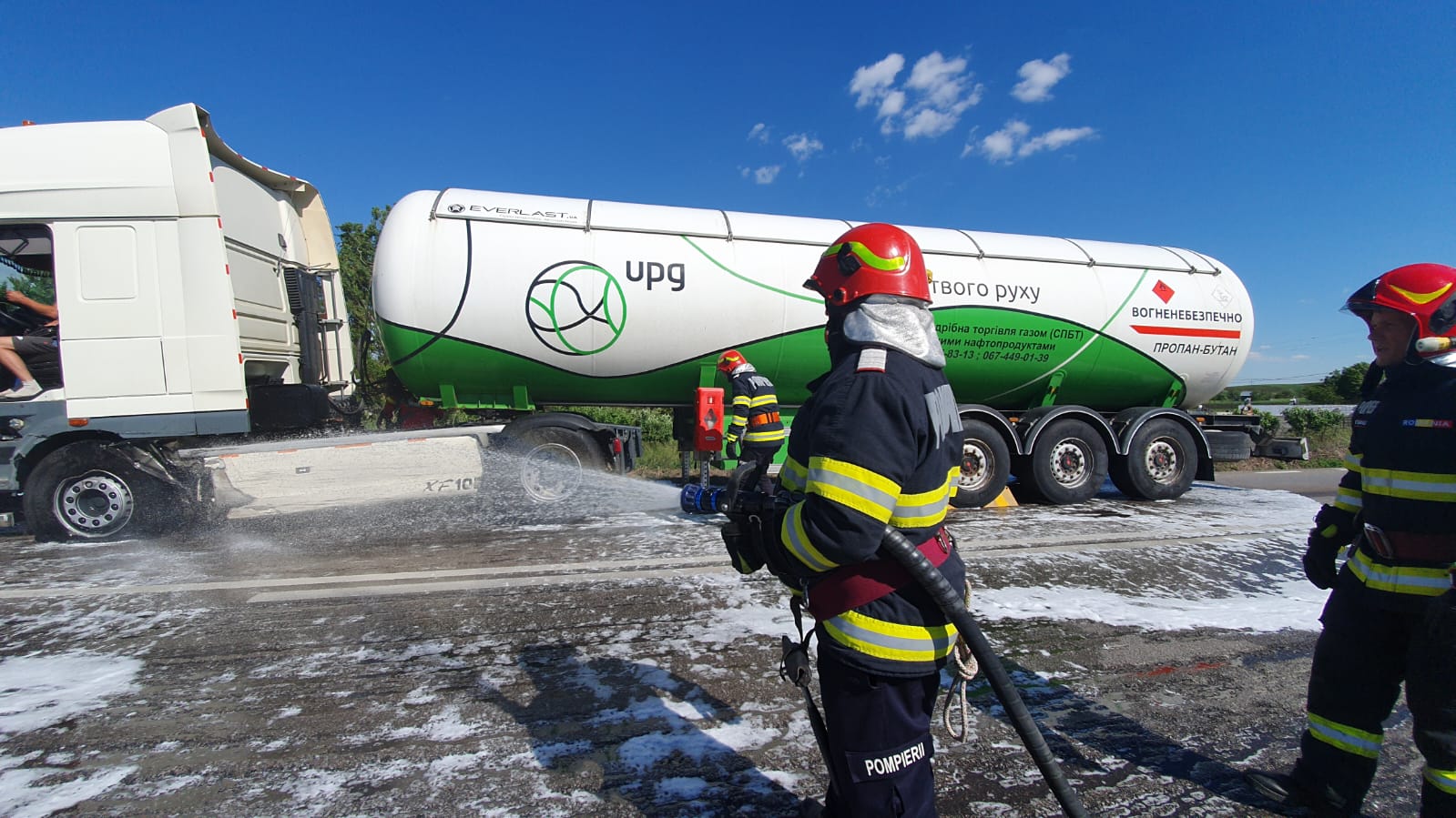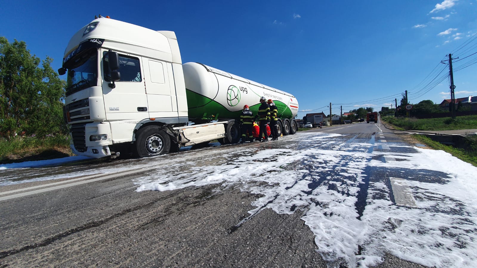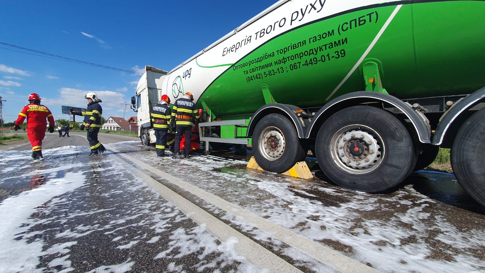 Autocisterna transporta GPL, iar rezervorul cu combustibil al acesteia a fost spart, in urma evenimentului. Deoarece exista pericol de explozie, circulatia a fost blocata pe ambele sensuri, iar pompierii militari au luat toate masurile specifice de protectie (inclusiv cu perdea protectoare de apa).