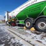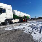 Capul tractor al autovehiculului a fost desprins de cisterna si tractat in afara partii carosabile, iar pericolul de explozie a fost inlaturat. Un alt cap tractor a preluat cisterna.