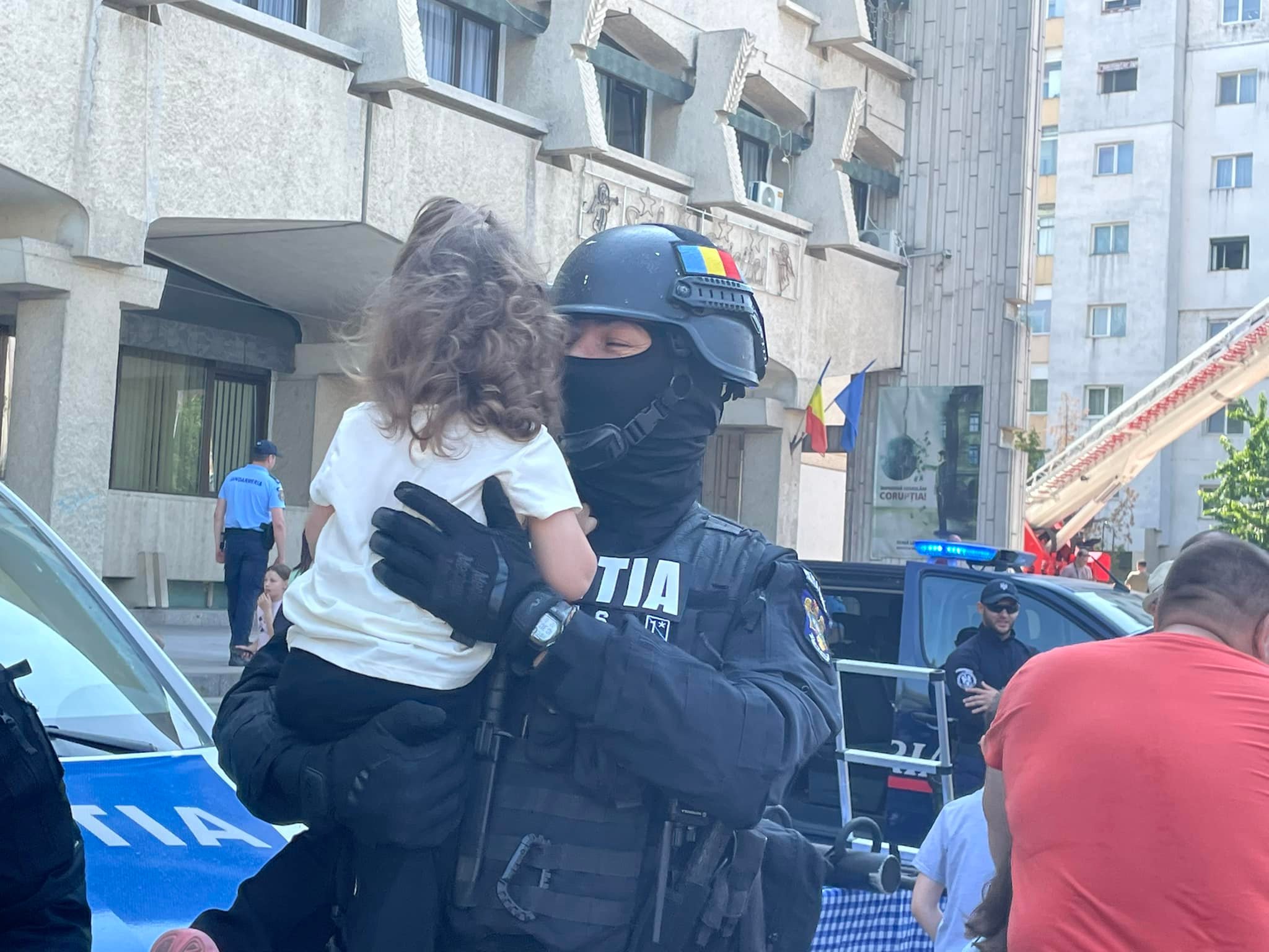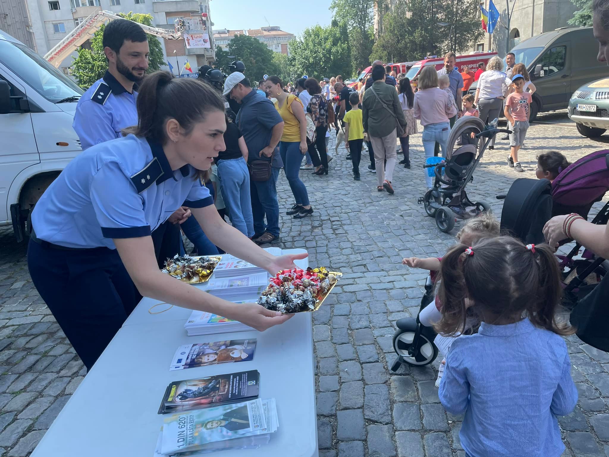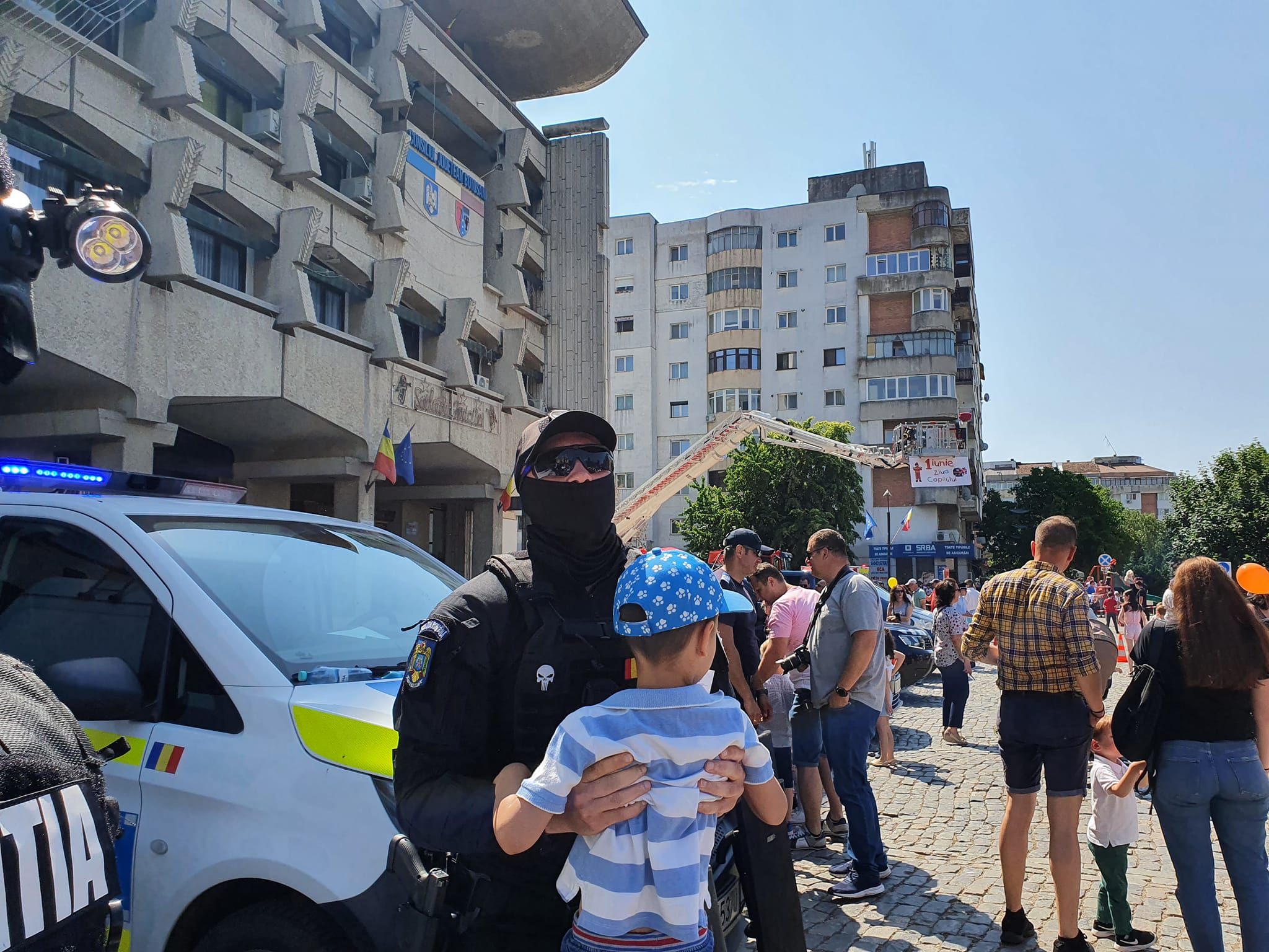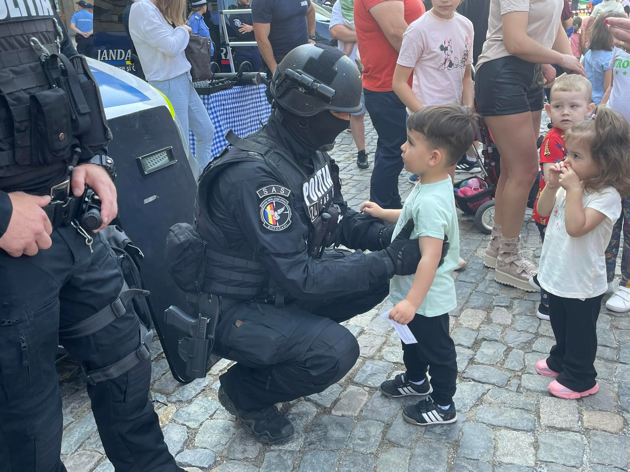 Sute de copii din Botoşani au fost miercuri, în parcarea din faţa Prefecturii, pentru a se întâlni cu polițiștii.