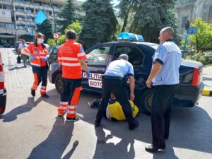 Un botoșănean s-a prăbușit din picioare, joi, în apropierea trecerii de pietoni din fața Prefecturii. Bărbatul a căzut din picioare, putând fi lovit în orice moment de mașinile care treceau prin zonă.