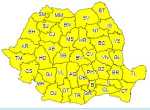 Meteorologii au emis, vineri, o avertizare de Cod galben de ploi pentru întreaga țară, valabilă între 10 iunie, ora 14 – 12 iunie, ora 22