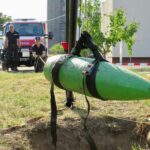 Pe timpul efectuării unor lucrări de excavație la conductele din apropierea bazinului de rezervă apă tehnologică, a fost descoperit un element de muniție neexplodată din timpul conflictului armat.