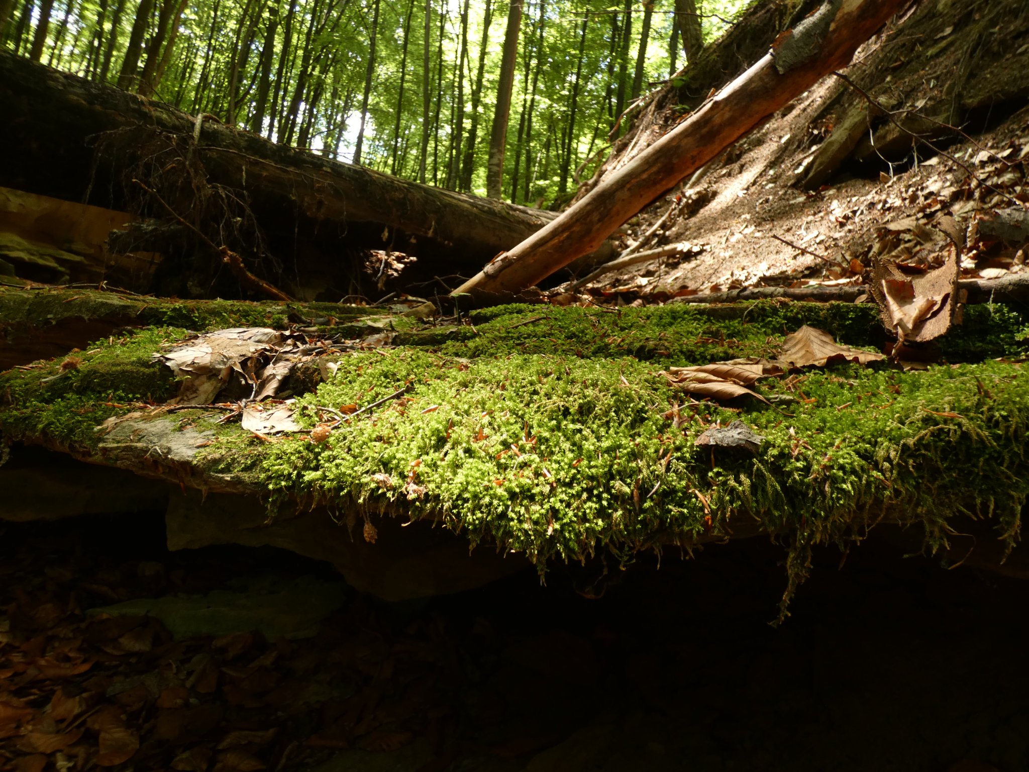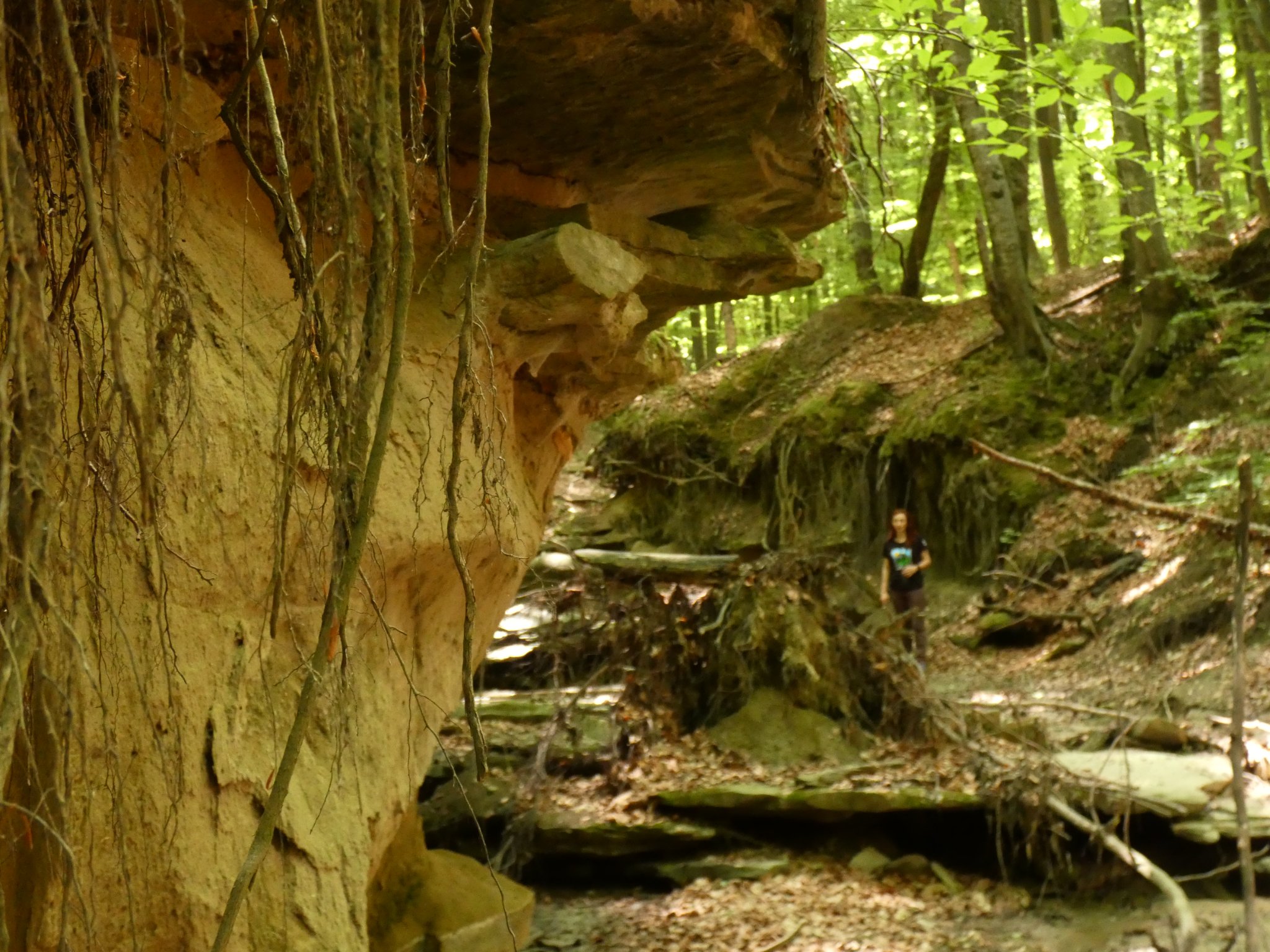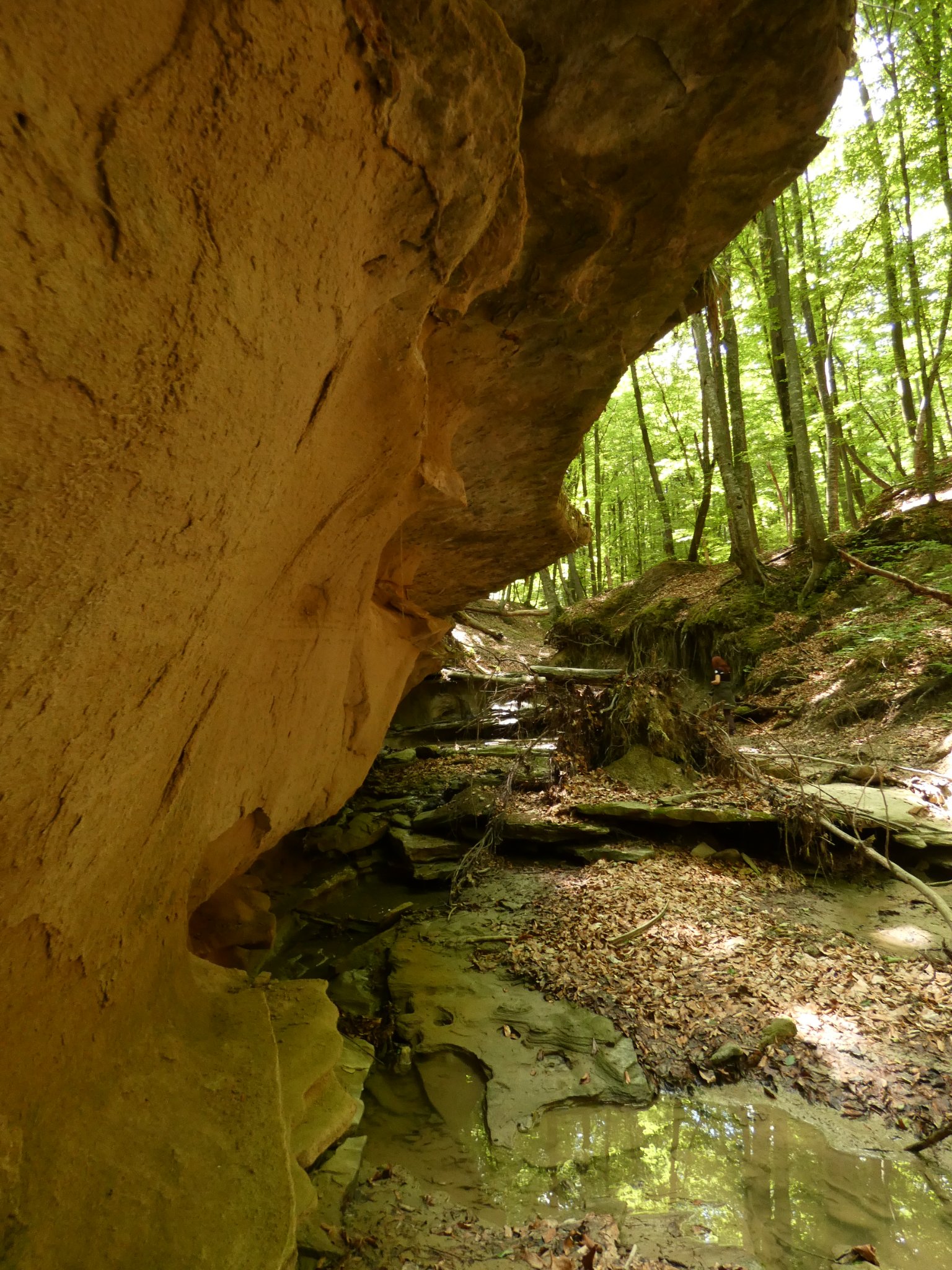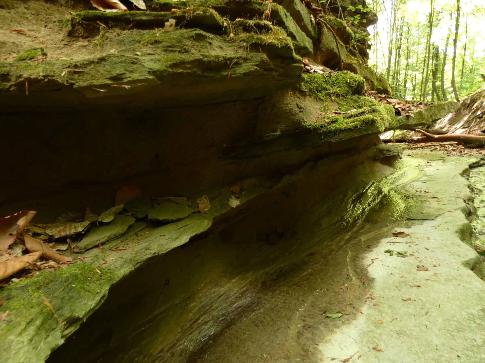 Parcurgând albia pârâului, se observă un perete stâncos alcătuit din gresii nisipoase, în care timpul a creat modele uimitoare. Din loc in loc la baza acestui perete se întâlnesc formațiuni fosile care s-au desprins din masa mare a pereților. Urcând spre izvoare peretele începe să se stratifice. Datorită eroziunii, în gresia nisipoasă s-au format mici surplombe - care măresc spectacolul naturii.