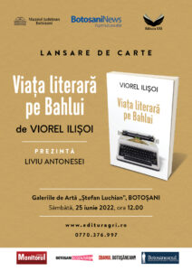 Muzeul Județean Botoșani găzduiește la Galeriile de Artă „Ștefan Luchian”, sâmbătă, 25 iunie 2002, de la ora 12, un eveniment cultural deosebit. Cunoscutul scriitor și gazetar botoșănean Viorel Ilișoi se întoarce în orașul în care s-a format pentru a-și lansa noua carte, „Viața literară pe Bahlui”. Volumul va fi prezentat de unul dintre cei mai importanți scriitori români de astăzi, poetul și prozatorul Liviu Antonesei, el însuși protagonist în carte și implicat direct în realizarea ei.