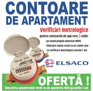 Societatea comercială Smart Eco Plus, care reprezintă divizia de smart metering a Grupului Elsaco din Botoșani, a lansat o ofertă pentru verificarea metrologică a contorilor de apartament la apă rece și apă caldă. Firma din Botoșani oferă populației posibilitatea de a face verificarea contorilor, dar și înlocuirea acestora.