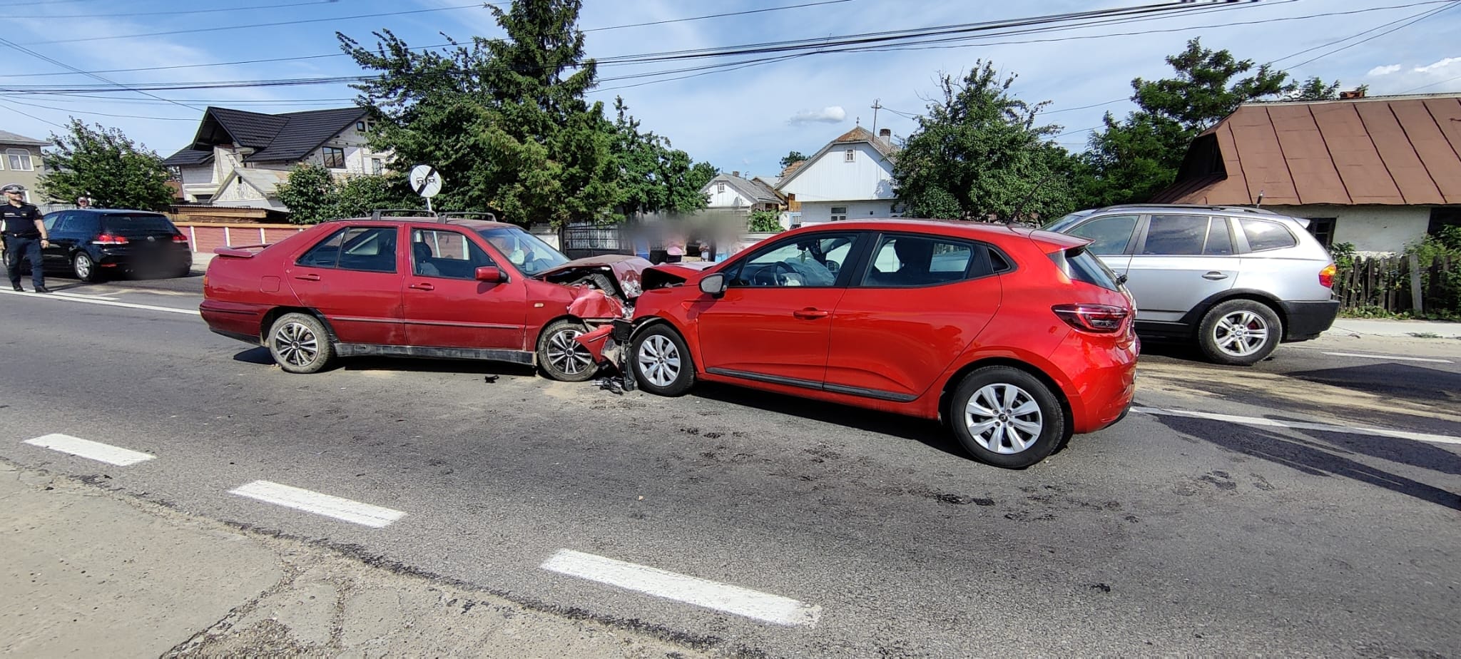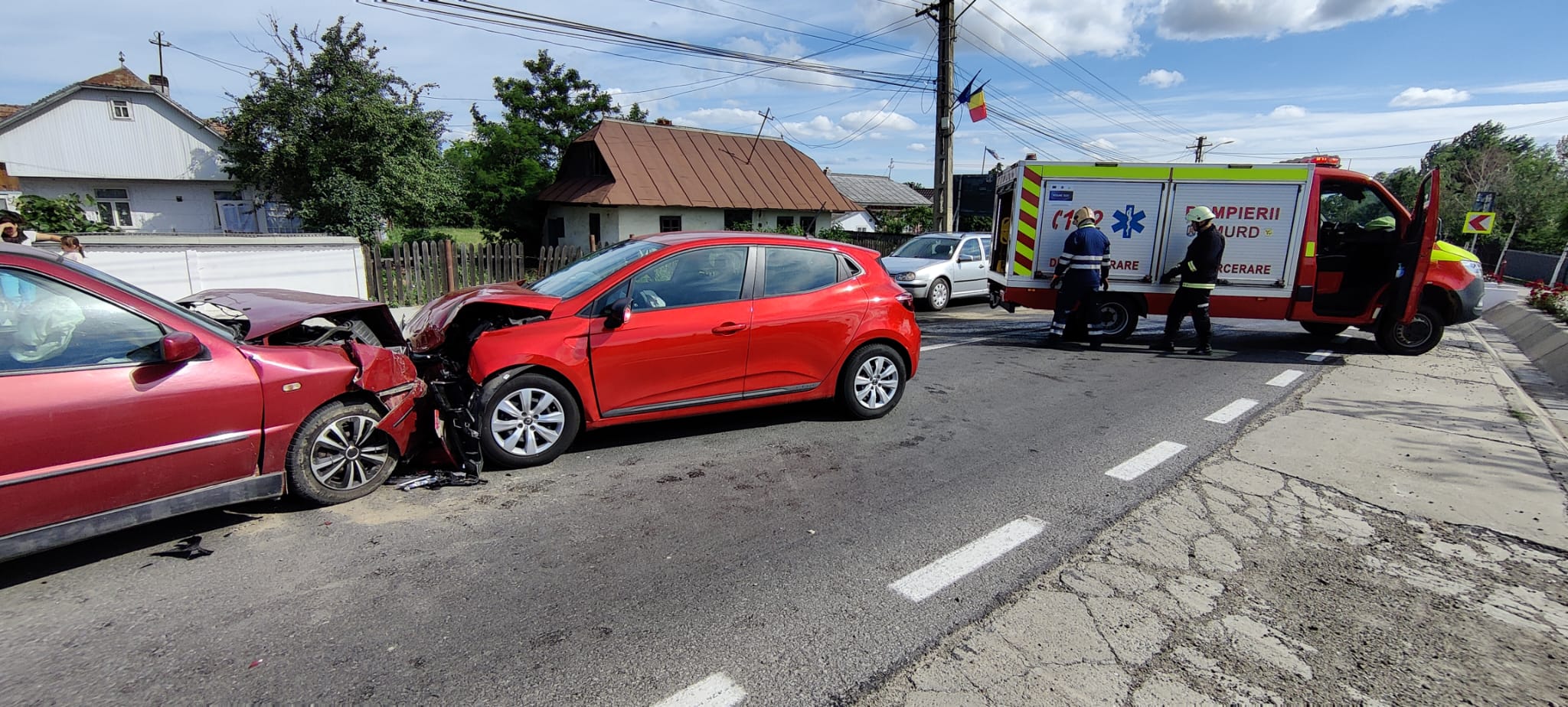 Două mașini s-au izbit frontal, iar o femeie și un bărbat au avut nevoie de îngrijiri medicale.