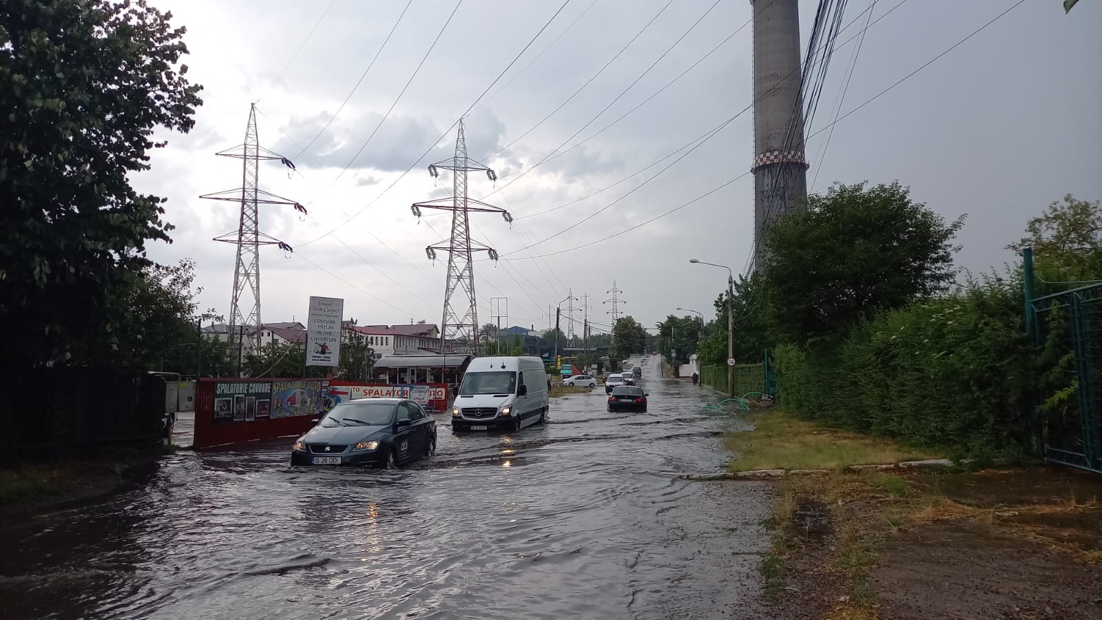 FOTO & VIDEO Inundații în municipiul Botoșani după o rupere de nori. O mașină a rămas blocată de ape