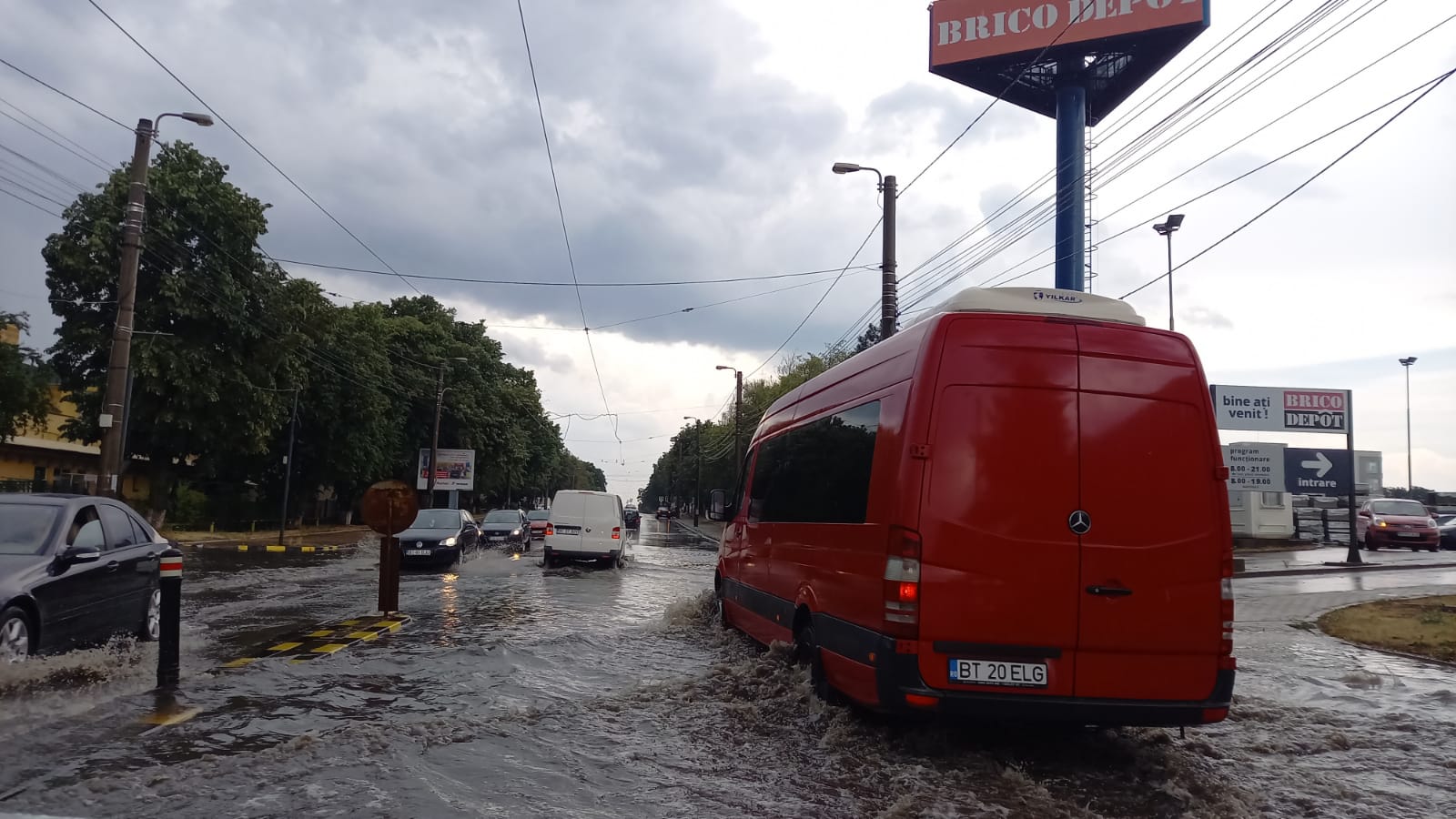 O rupere de nori de miercuri după-amiază a dus la producerea unor inundații în municipiul Botoșani. Probleme au fost în zona Pacea, în fața societății comerciale Modern Calor, dar și pe Calea Națională, în fața magazinului Brico Depot. pe strada Pacea, o mașină a rămas blocată de ape, nemaiputând înainta.