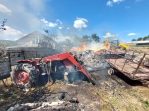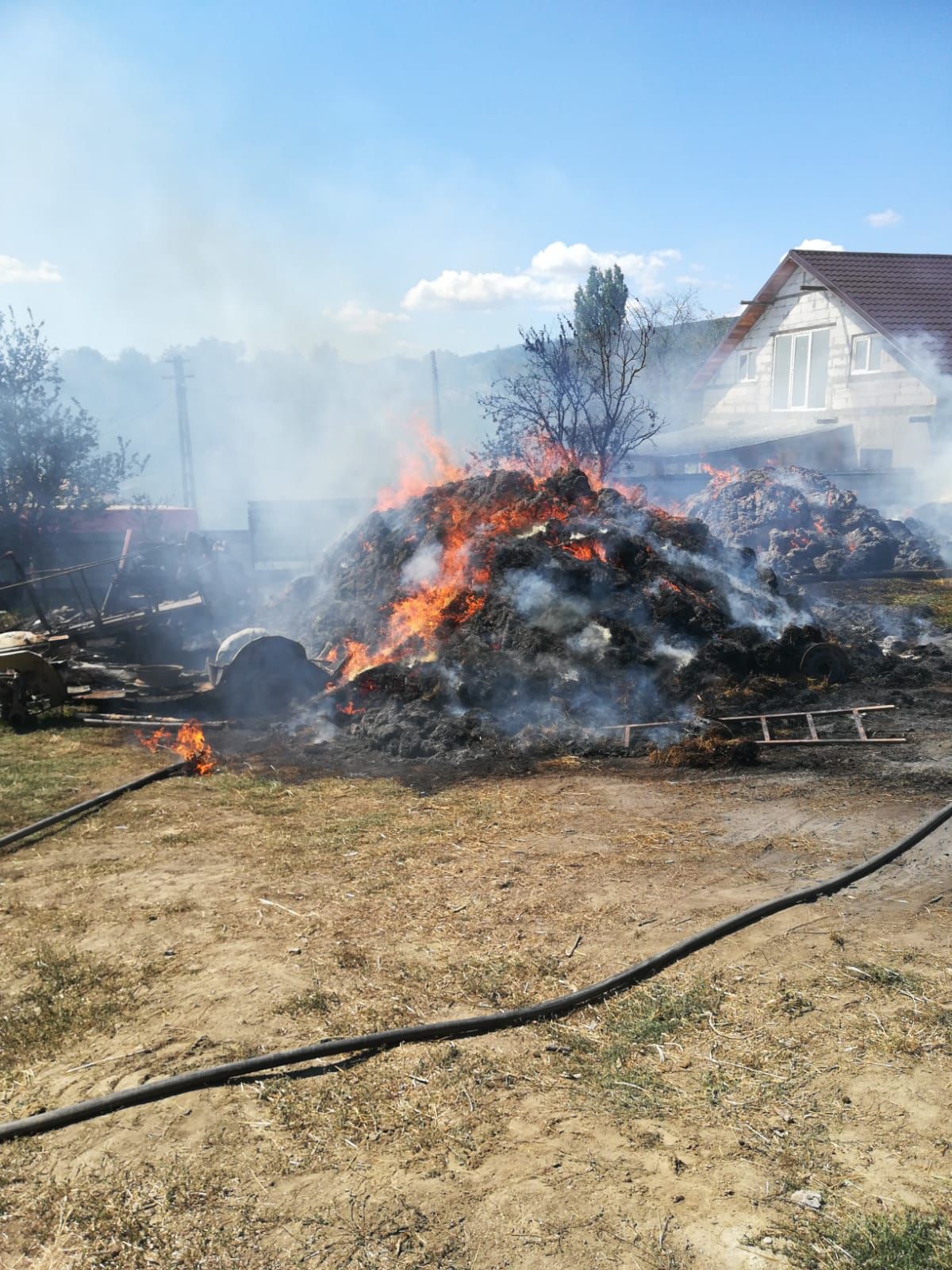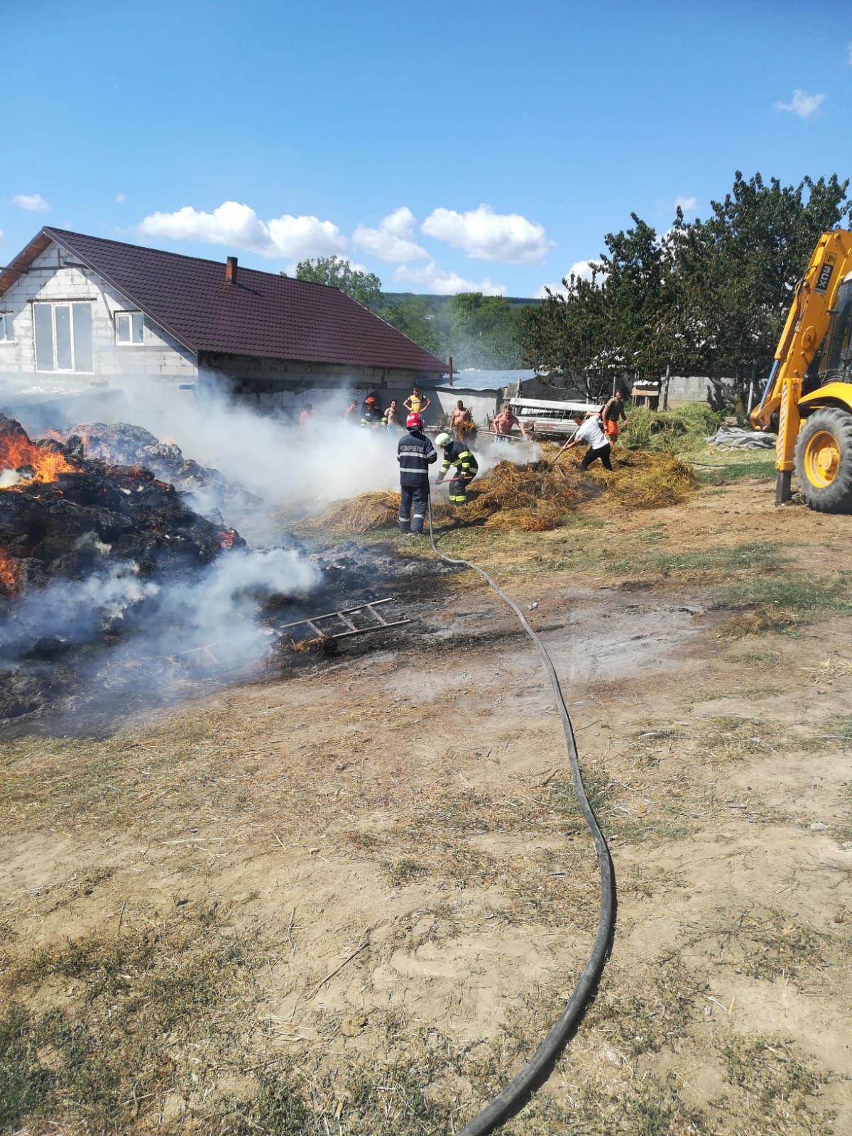 Au ars aproximativ 20 de tone de furaje și un utilaj agricol, iar cauza probabilă a producerii incendiului a fost stabilită ca fiind autoaprinderea.