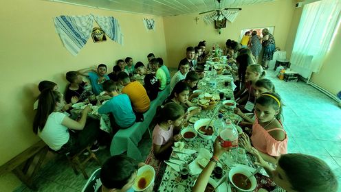 „După primirea ecusoanelor și întocmirea tabelelor specifice am găsit de cuviință să dăm startul zilei printr-o înviorare ce a determinat pofta de mâncare a participanților, necesară fiind, căci urma micul dejun. Am făcut împreună Rugăciunea de dimineață dupa care copiii au fost împărțiți în trei grupe și repartizați în trei săli de clasă pentru participarea la sesiunile inițiate de către tinerii de la Iași. După primele două sesiuni a avut loc masa de prânz asigurată și aceasta de către Parohie. Au urmat alte doua sesiuni despărțite într-un mod dulce prin pauza de înghețată, iar apoi copiii s-au bucurat cu alți voluntari de diverse jocuri despre care las imaginile să vorbească. După jocuri am vizionat un film alături de voluntari în incinta scolii, pe houl ce pentru doua ceasuri a devenit un mic cinema. Nici aici nu a lipsit surpriza dulce de care s-a îngrijit doamna Învățător Rodica Pirlog”, povestește George Brînzei.