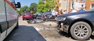 Un accident a avut loc sâmbătă, 23 iulie 2022, pe Bulevardul Victoriei din municipiul Dorohoi, în parcarea aflată vis-a-vis de Braseria Eden. Din primele informații, se pare că P.N., în vârstă de 72 de ani, șoferul unui autoturism Ford a pirdut controlul volanului și a intrat în impact cu patru mașini parcate.