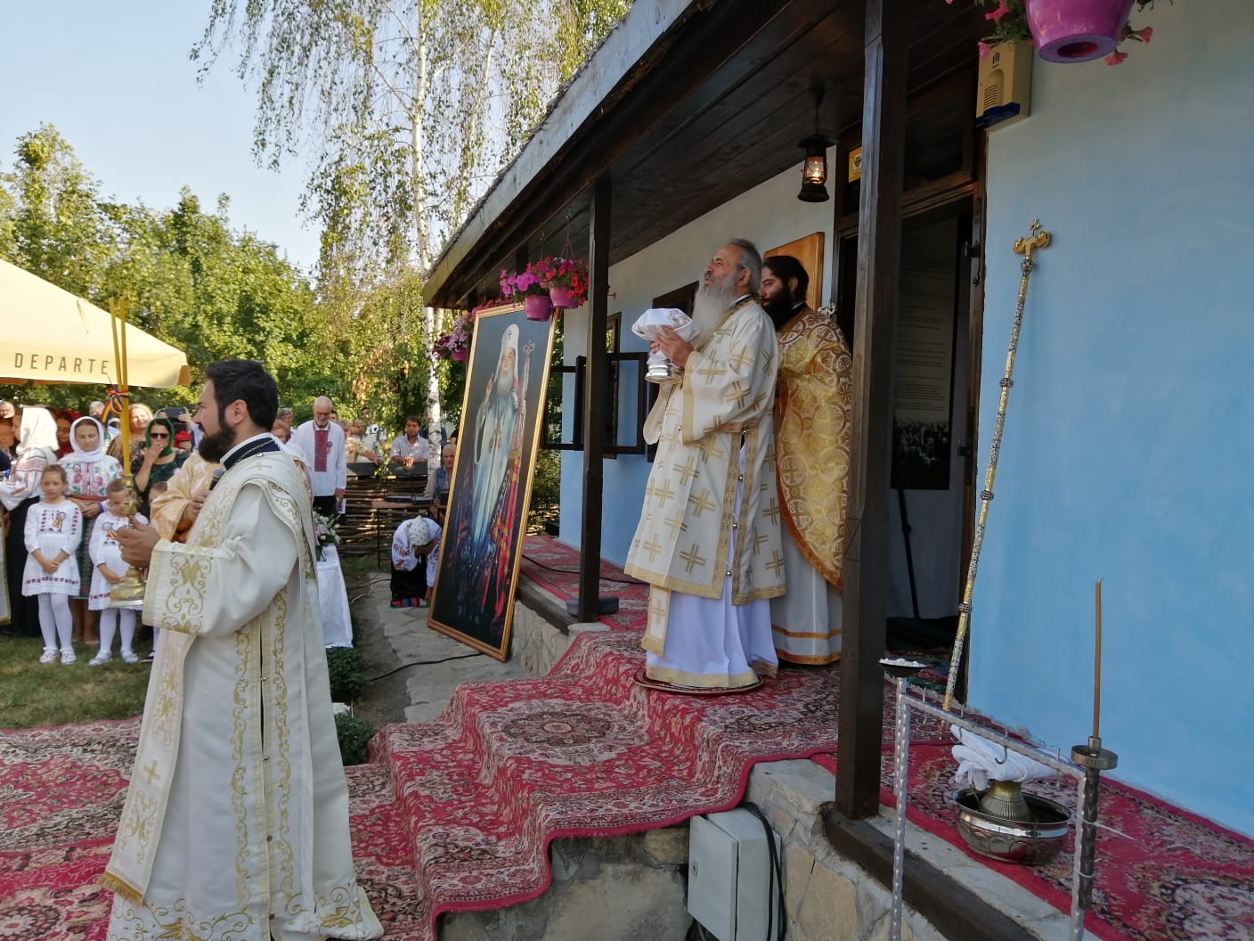 Slujba a avut loc în curtea Casei Memoriale "Patriarh Teoctist" ridicată în satul natal al fostului înalt prelat în localitatea Tocileni din comuna Stăuceni. La eveniment au luat parte sute de credincioşi, dar şi primarul din Stăuceni, Cozmin Epuraş, şi prefectul de Botoşani, Sorin Cornilă, președintele CJ, Doina Federovici, dar și liderul PNL Costel Șoptică.