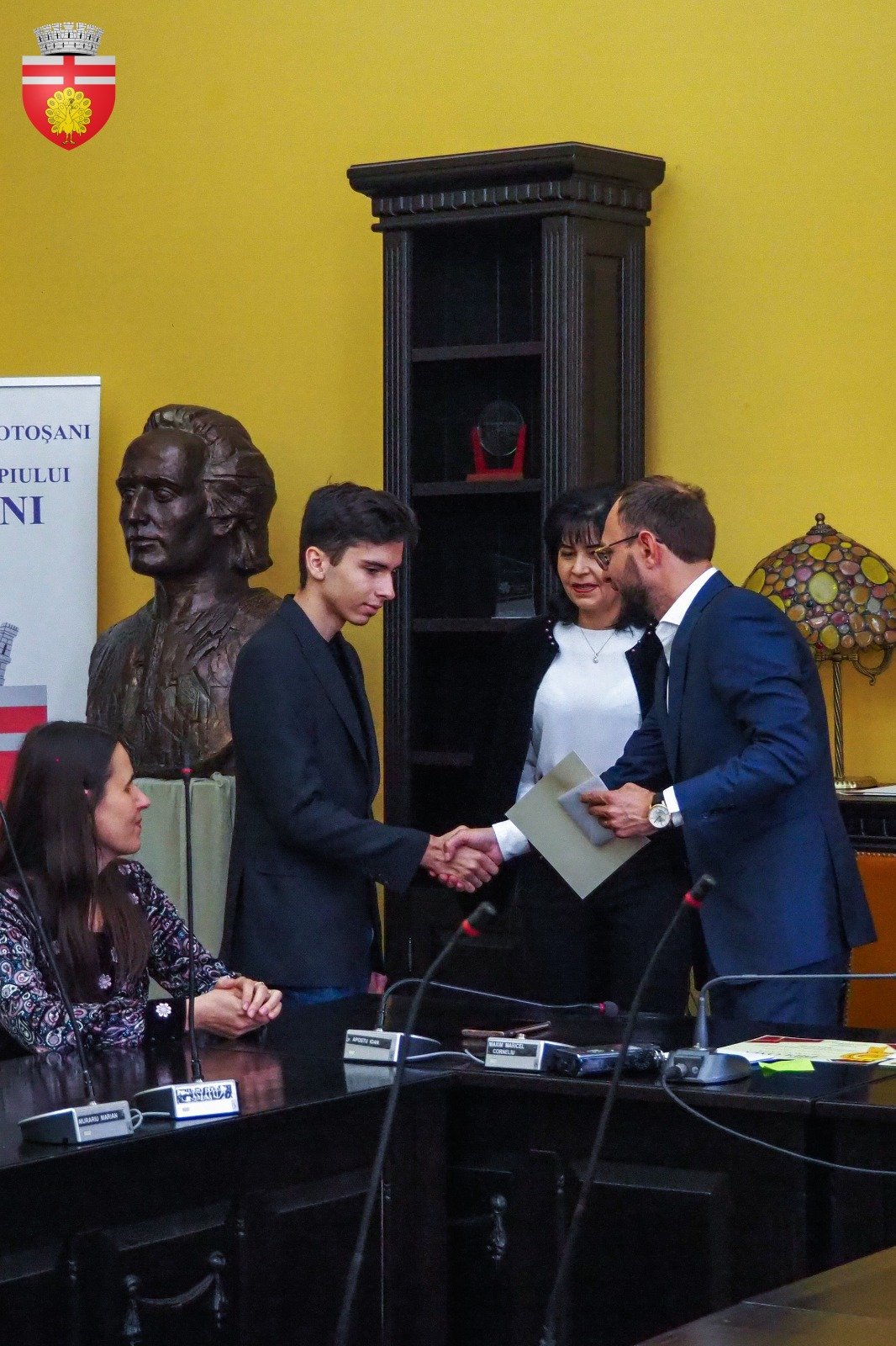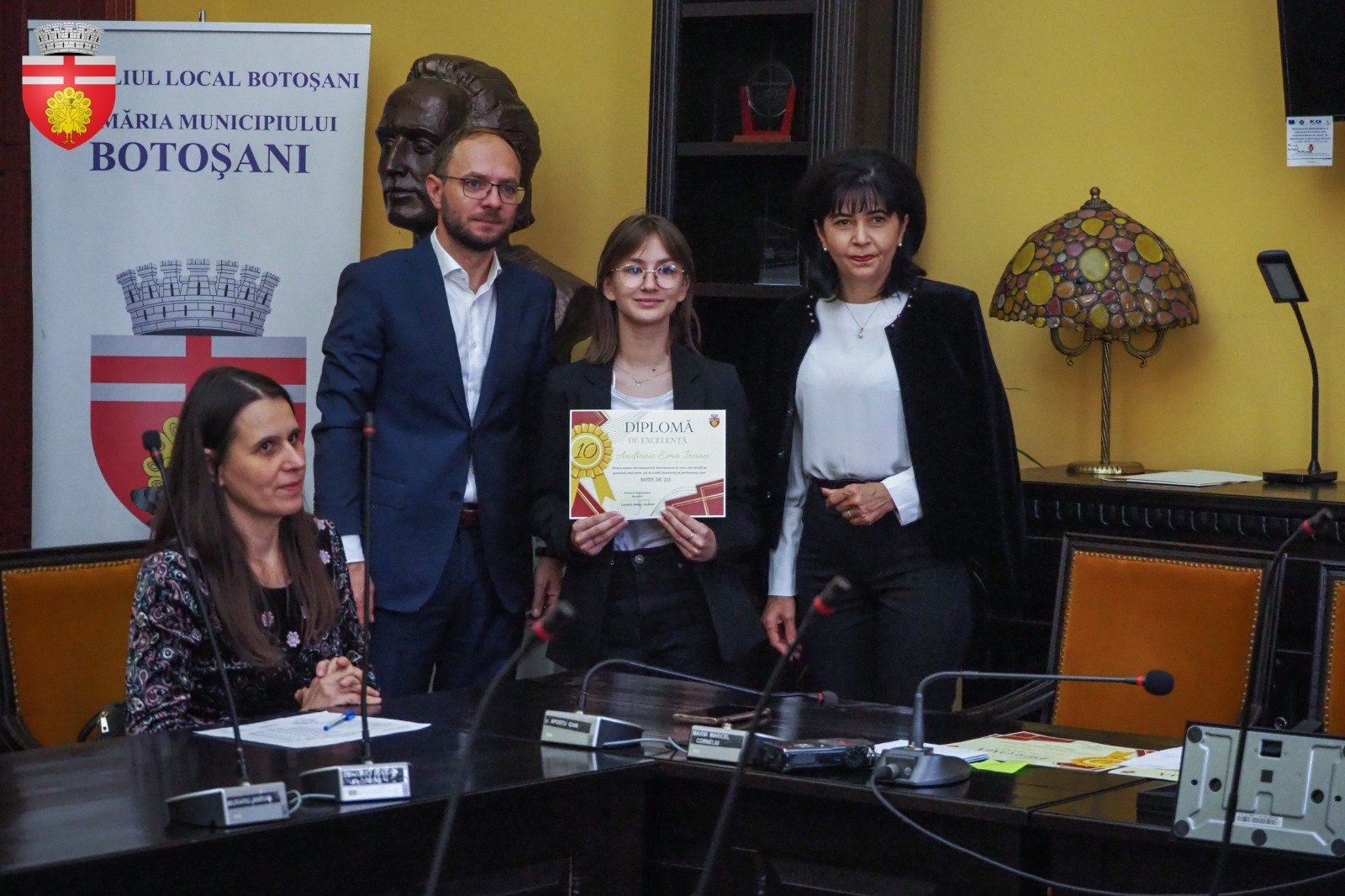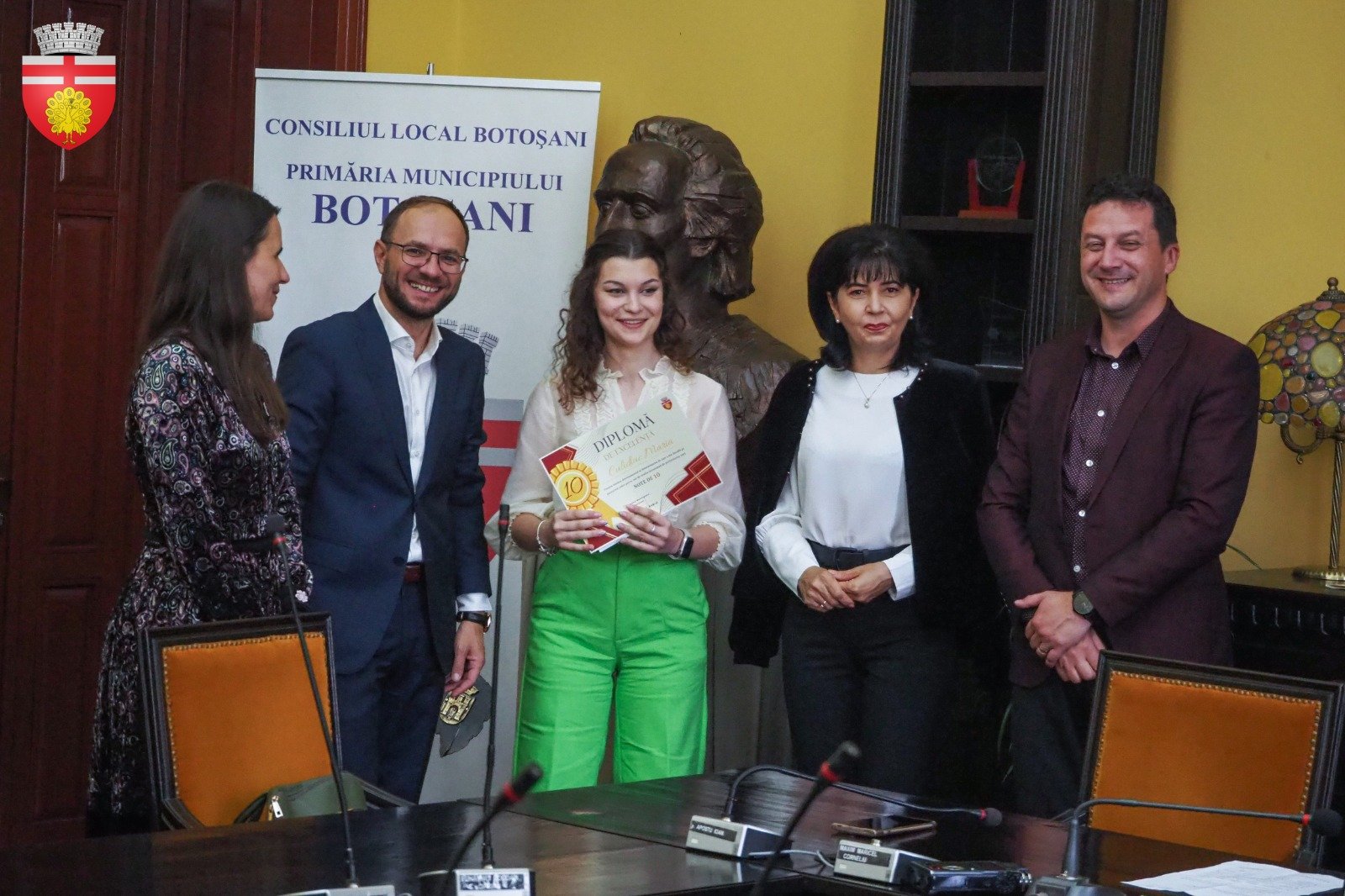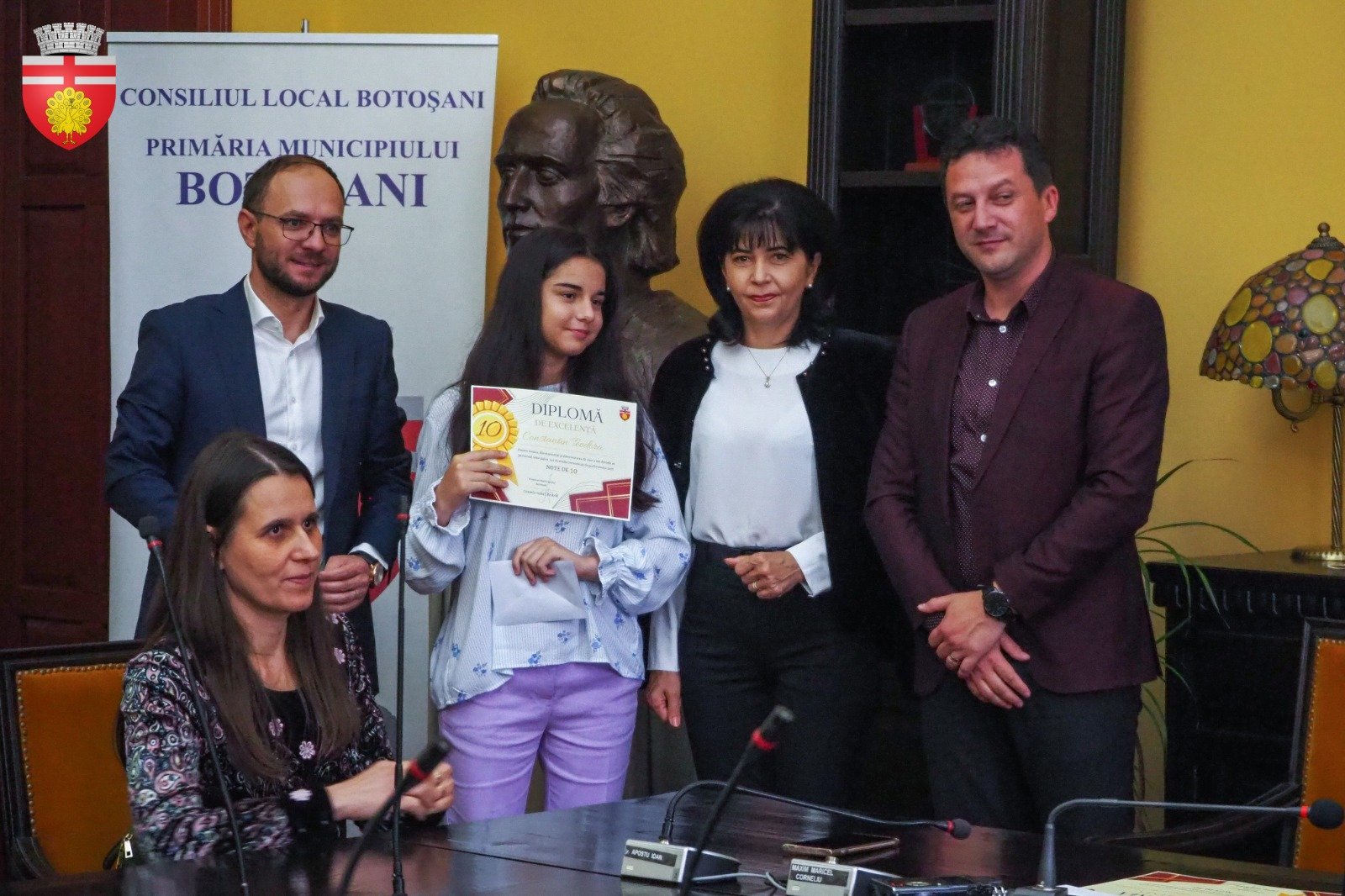 Elevii de top ai municipiului Botoșani au fost premiați, marți, pentru rezultatele excepționale obținute la Evaluarea Națională și examenul de Bacalaureat. Premiile le-au fost înmânate de primarul Cosmin Andrei, alături de președintele Consiliului Județean Botoșani, Doina Federovici, inspectorul școlar general al Inspectoratului Școlar Județean (ISJ), Bogdan Suruciuc și inspectorul școlar general adjunct al ISJ, Cristina Bălăucă.