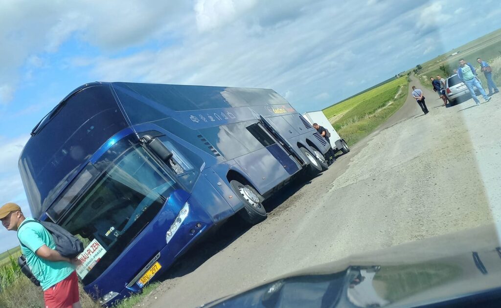 FOTO Accident la Botoșani! Un autobuz cu 34 de persoane la bord a ieșit de pe carosabil