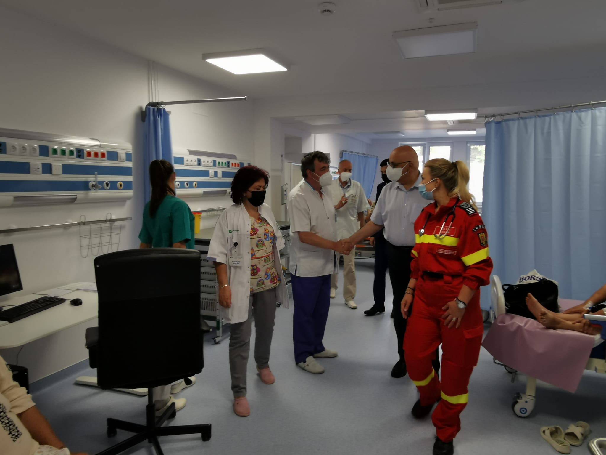 Raed Arafat a fost însoțit de prefectul județului, Sorin Cornilă. Noul sediu UPU al Spitalului Județean Botoșani a fost sfințit la sfârșitul săptămânii trecute, în prezența ministrului Sănătății, Alexandru Rafila.