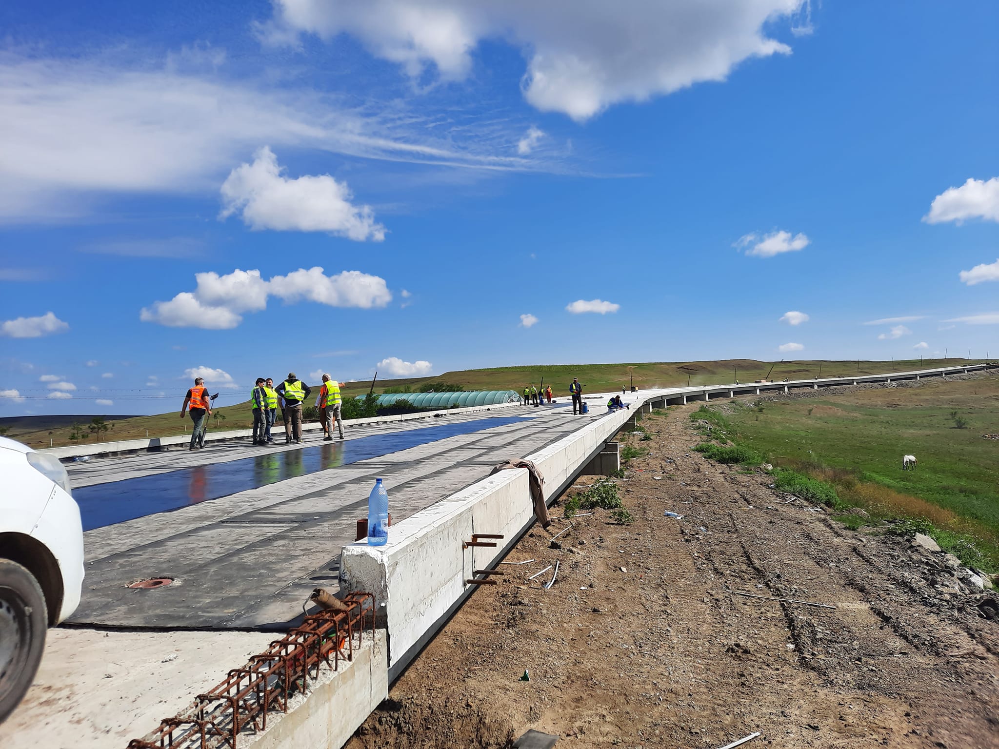 Lucrările avansează conform graficelor, pe sectoare importante fiind turnat deja asfaltul, alături de celelalte elemente ale drumului – rigole și șanțuri de scurgere din beton și trotuare pavate. În paralel, se execută lucrări de montare a grinzilor la cele trei viaducte de pe traseu, de lărgire a părții carosabile, amenajări ale acostamentelor și ale drumurilor laterale, execuție de sistem rutier nou, ridicări la cotă ale căminelor, lucrări la poduri și podețe.