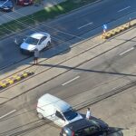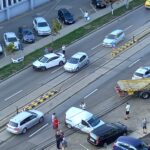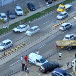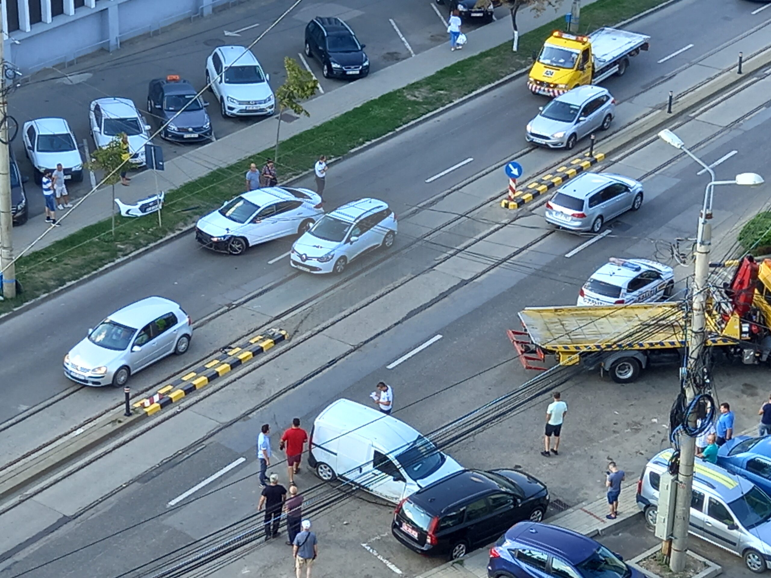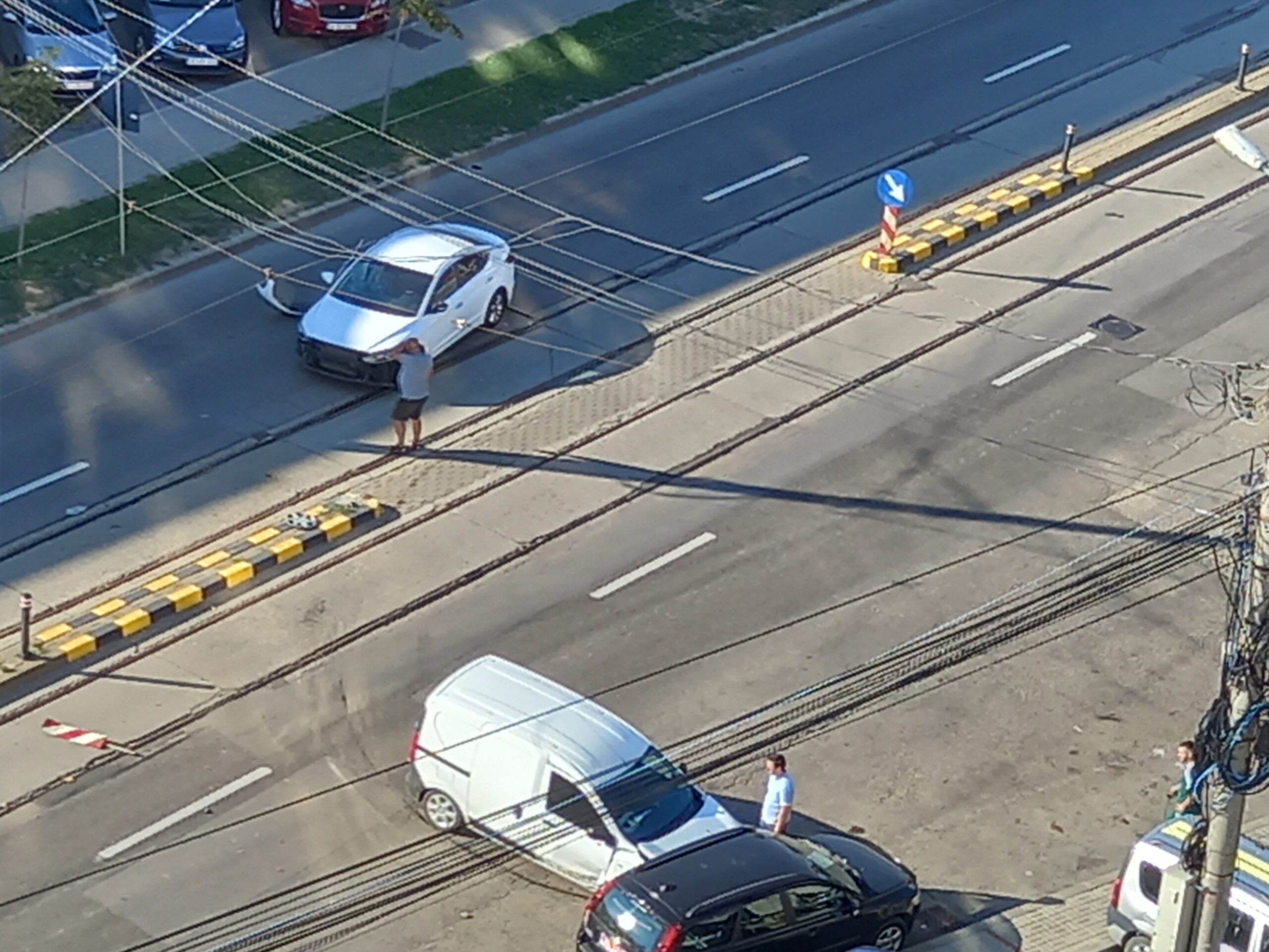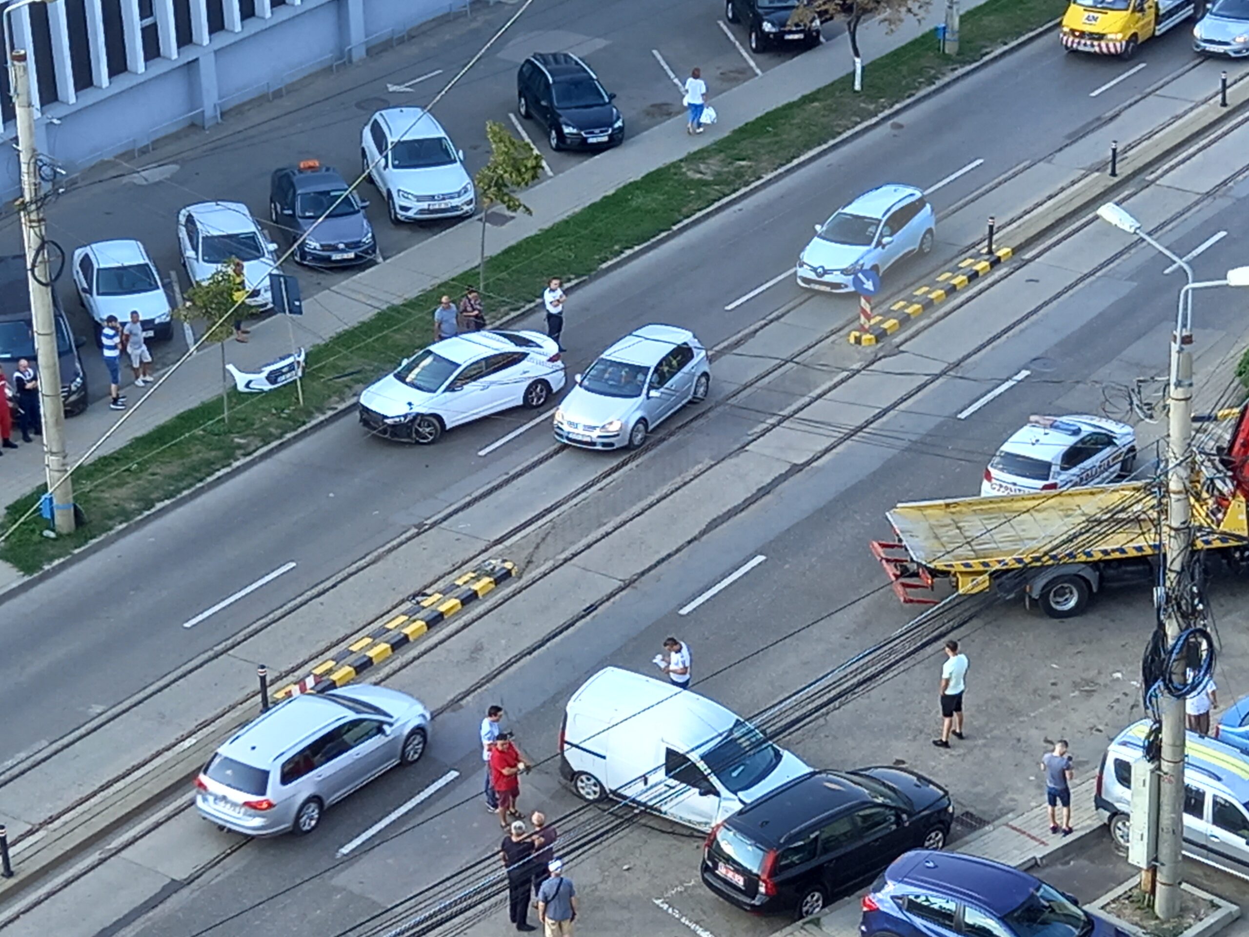 Un alt autoturism, Dacia, venea din spate, pe linia de tramvai, iar șoferul nu l-a observat, izbindu-l. Ulterior, după impact, unul dintre autoturisme a ricoșat într-un autoturism Volvo, care era parcat.