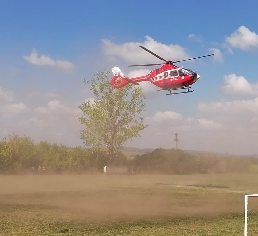 Elicopterul SMURD a aterizat pe stadionul municipal din Dorohoi pentru a-l preluat pe bolnav.