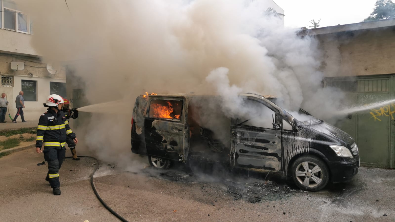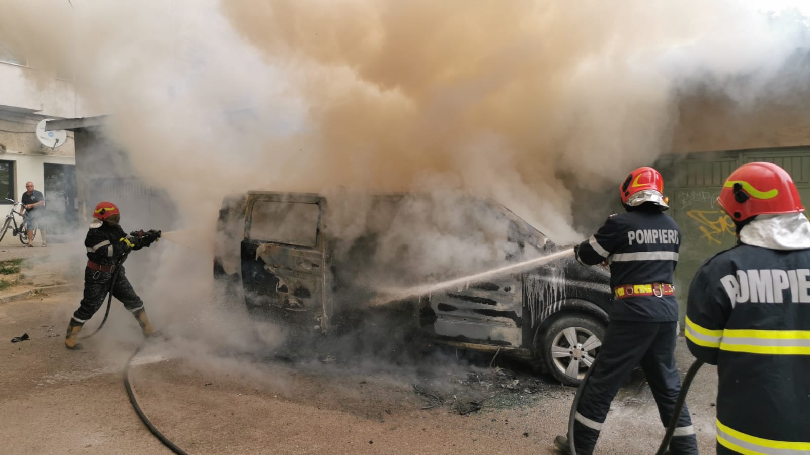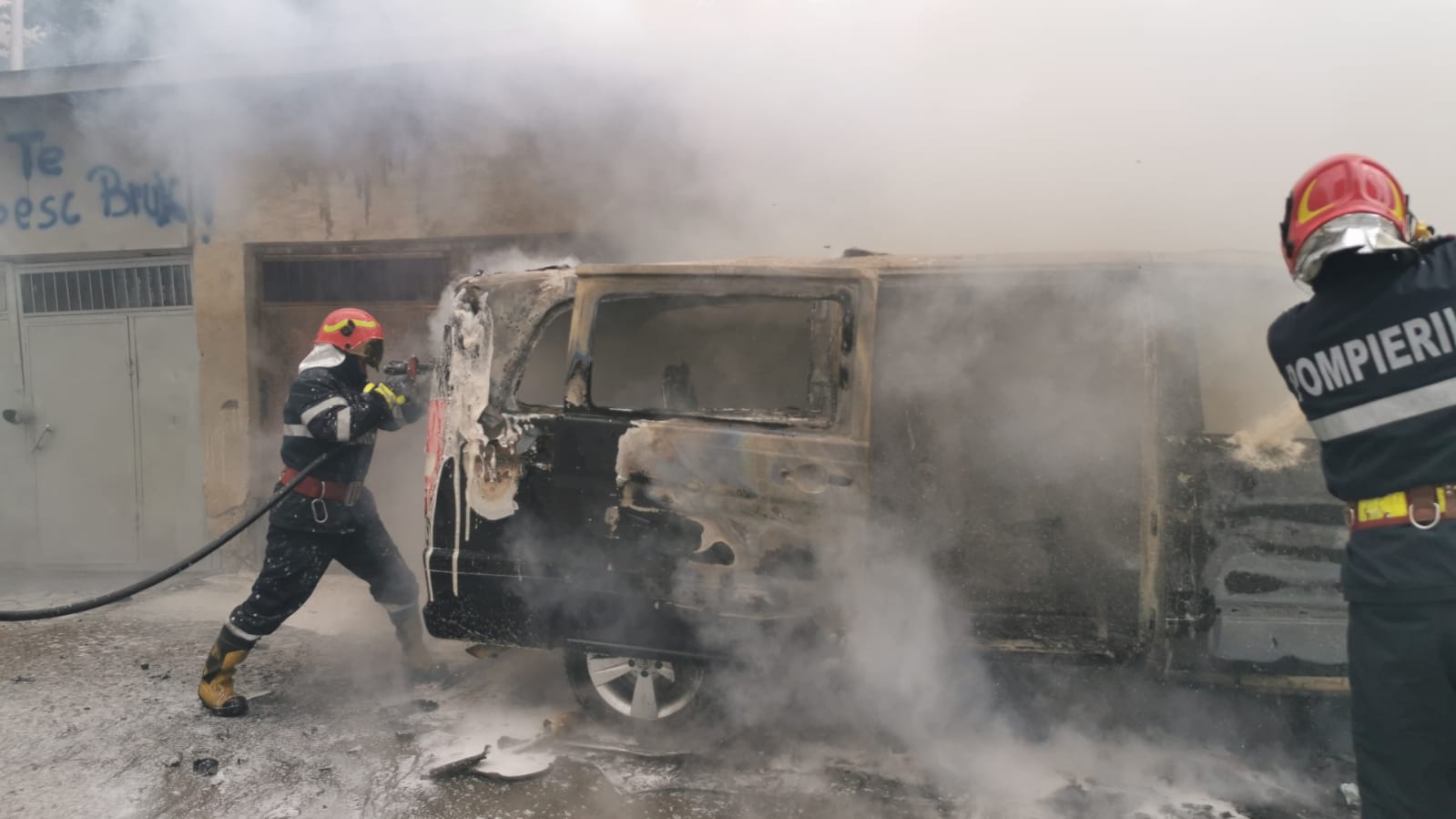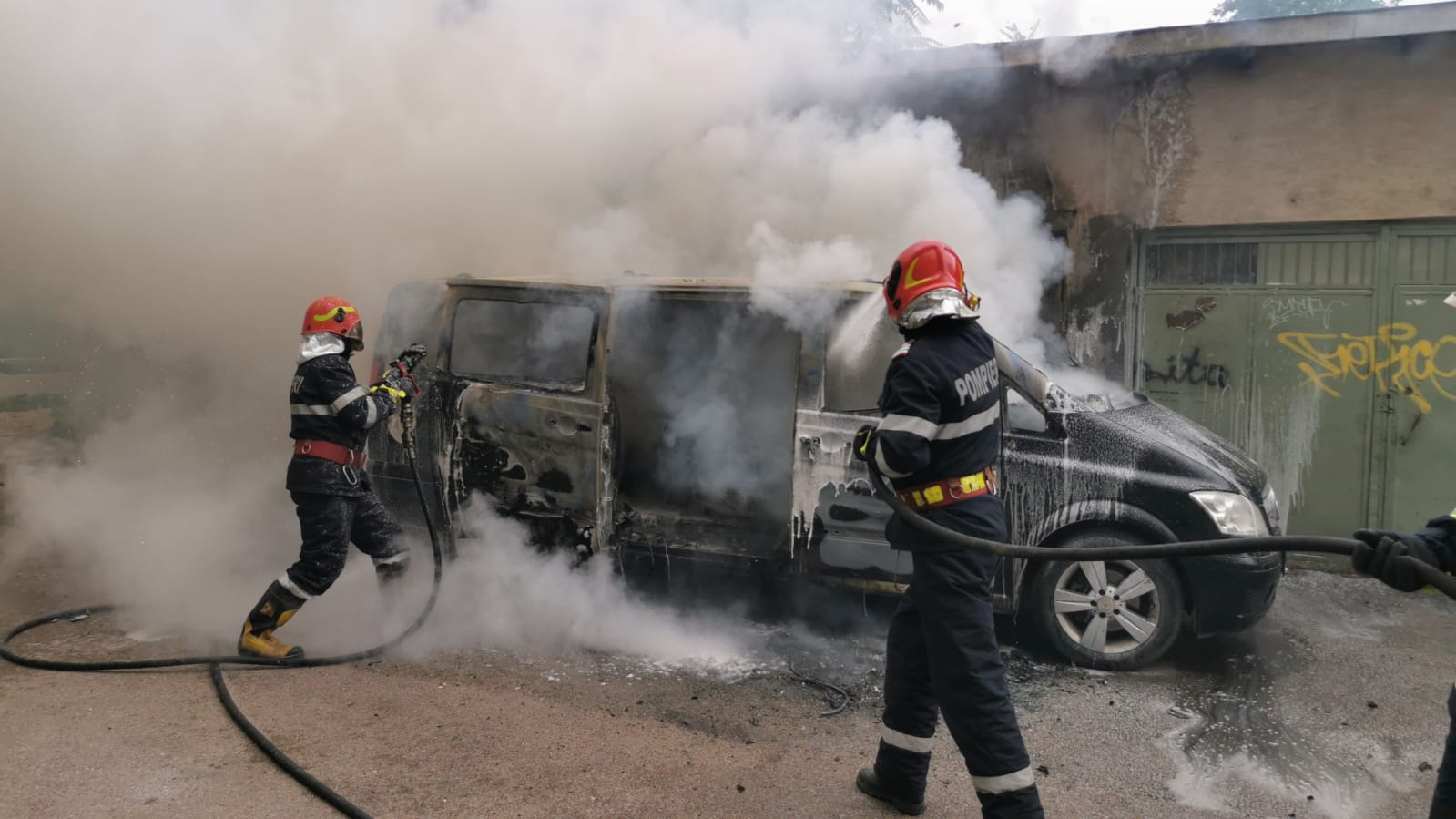 Pompierii au constatat că microbuzul ardea violent, cu degajări mari de fum. Flăcările au cuprins și o parte din acoperișul a două garaje, existând pericolul de propagare a flăcărilor și la bunurile din interior. Incendiul a fost stins în limitele găsite de pompieri.