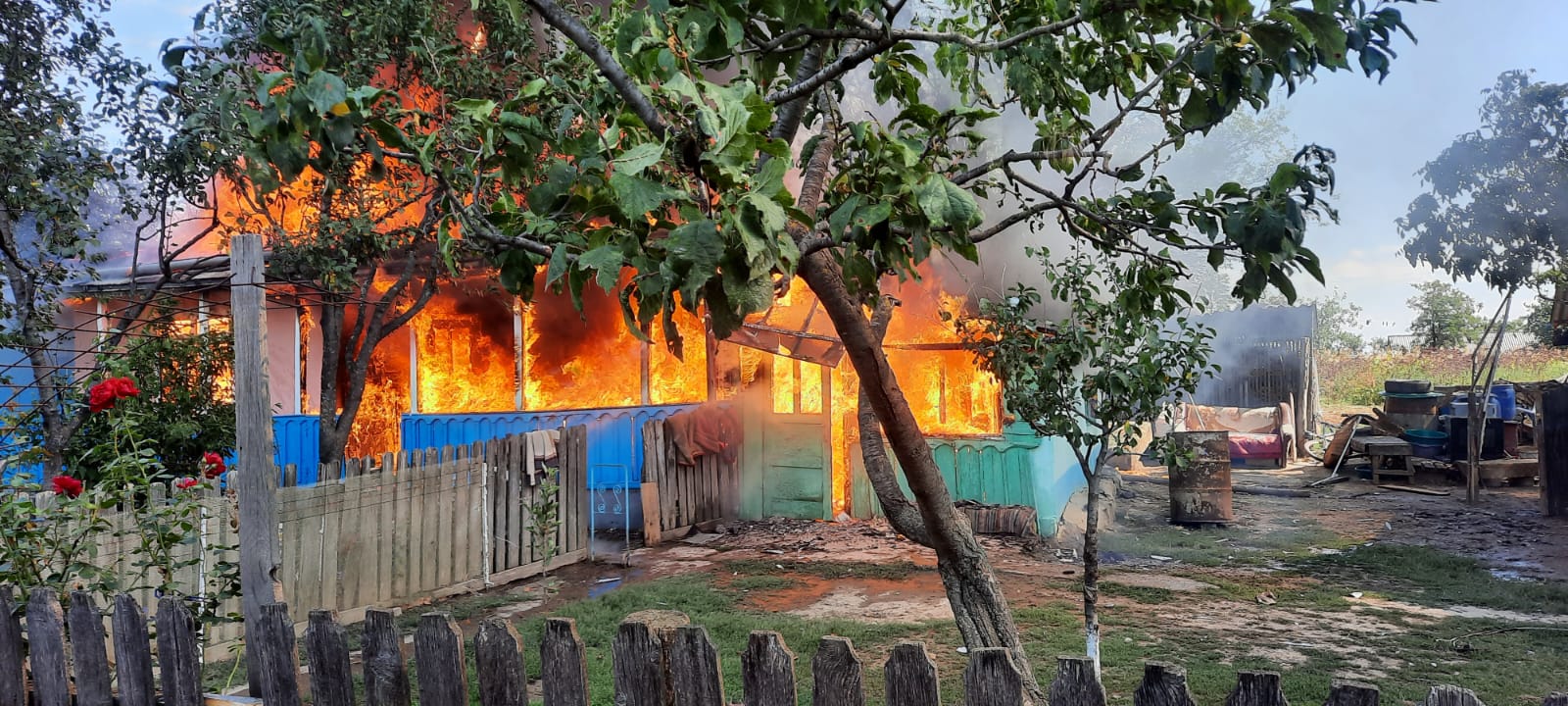 Ajunși la fața locului, pompierii au constatat că locuința ardea ca o torță și exista pericolul de propagare a flăcărilor la alte două anexe din gospodărie.