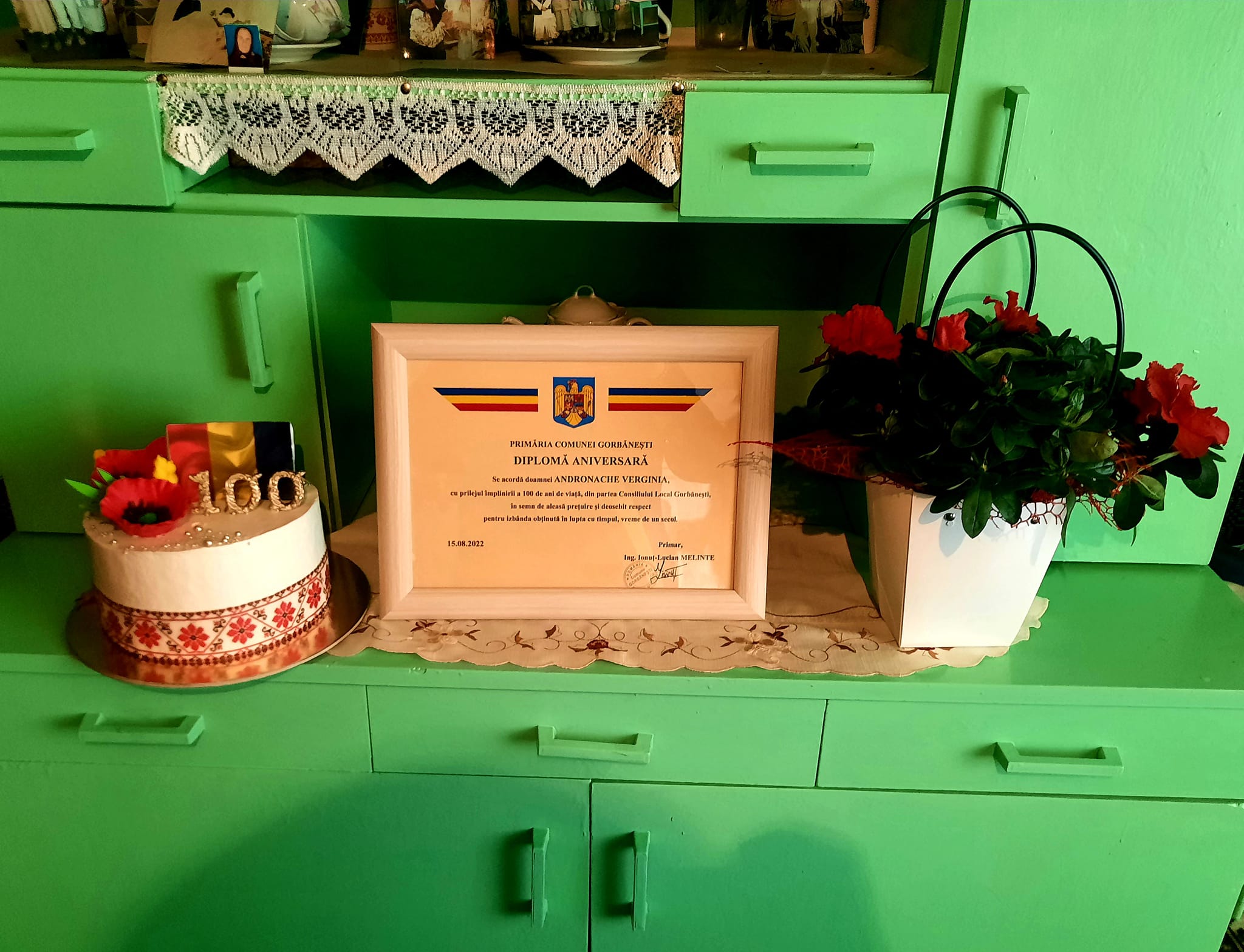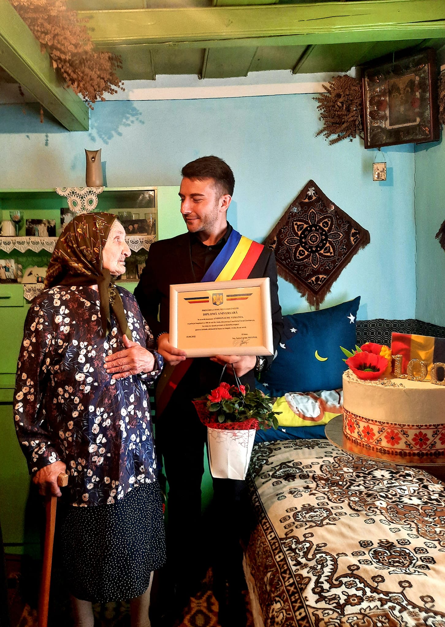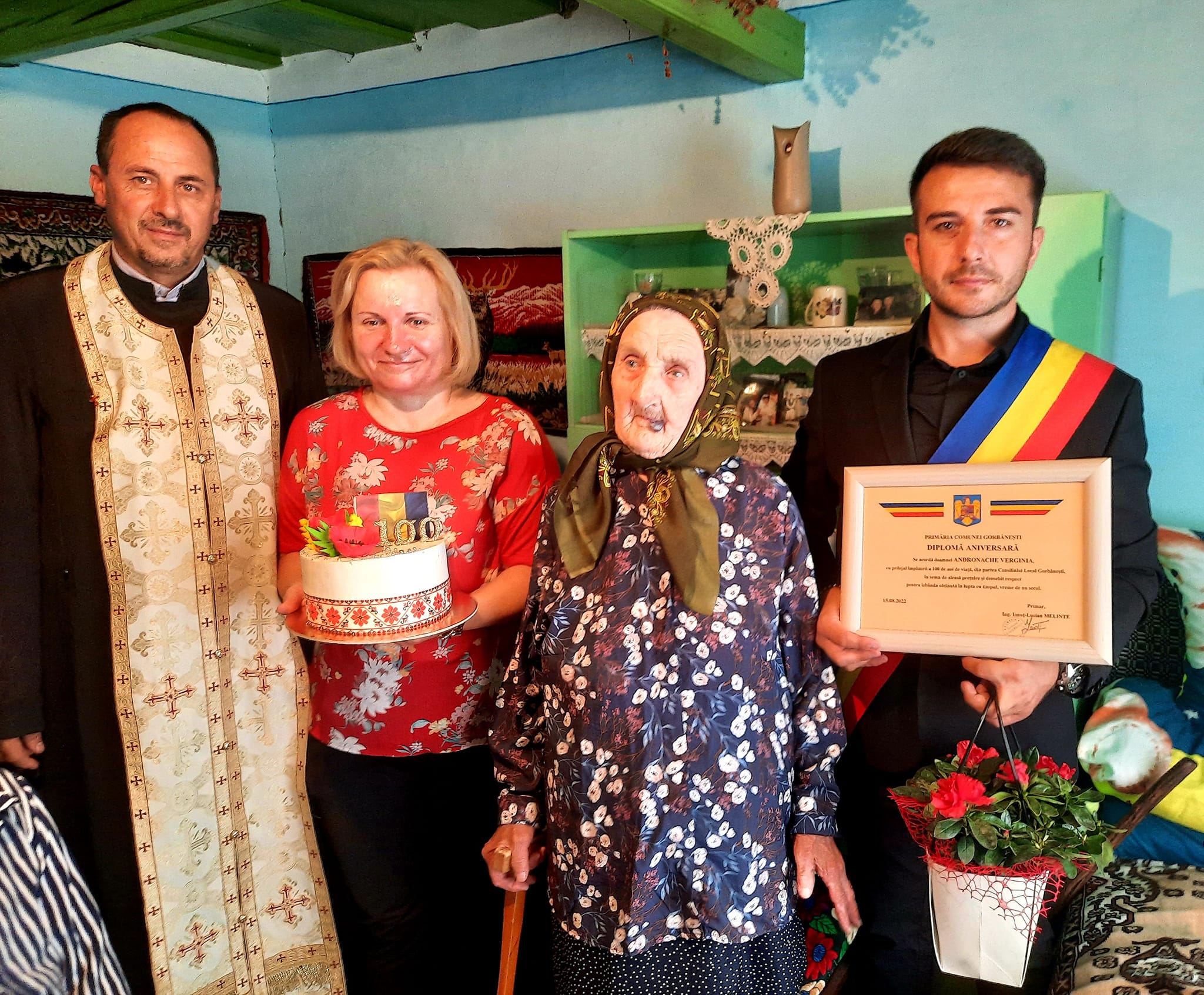 Pot spune că am participat cu emoție la un eveniment unic din viața unui om. Am ascultat povești care pur și simplu mi se par incredibile, am primit sfaturi și ne-am bucurat împreună cu tanti Verginia, la împlinirea vârstei de 100 de ani. Nu am putut merge cu mâna goală, așa că tanti Andronache Verginia a primit din partea noastră un tort (pe această cale țin să-i mulțumesc doamnei Monica Ioana Chică-Roșă ), o diplomă aniversară, dar și flori!”, a precizat primarul comunei, Ionuț Melinte.