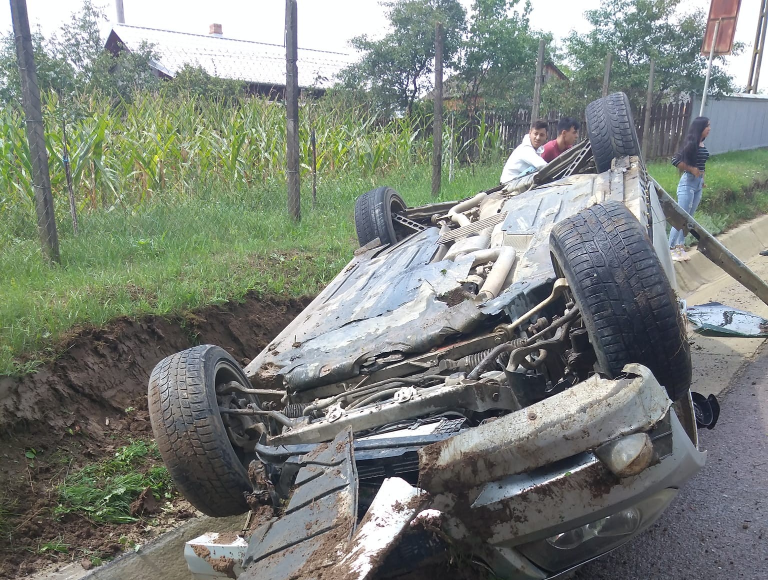 Un accident rutier a avut loc marți, într-o comună din județul Botoșani. O mașină a ajuns cu roțile în sus, la Cristești, după ce conducătorul acesteia, în vârstă de 20 de ani, din localitate, a pierdut controlul asupra direcției de mers, cel mai probabil, pe fondul vitezei excesive.