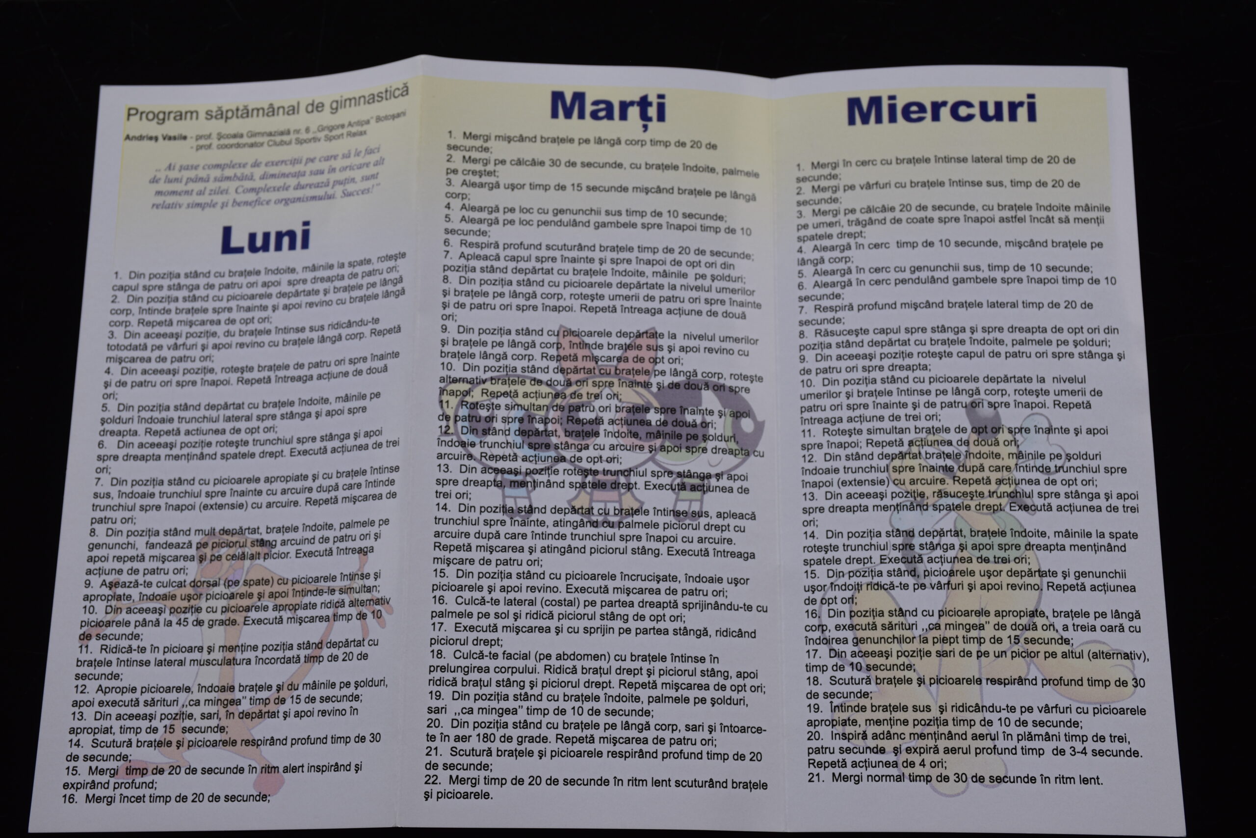 Cadrul didactic a folosit premiul primit tot pentru activități educative. Pentru a încuraja copiii care au participat la activitățile Clubului Sport Relax să facă mișcare și în mod independent, profesorul a conceput un program săptămânal de gimnastică, tipărit sub forma unui pliant pe care l-a oferit copiilor.