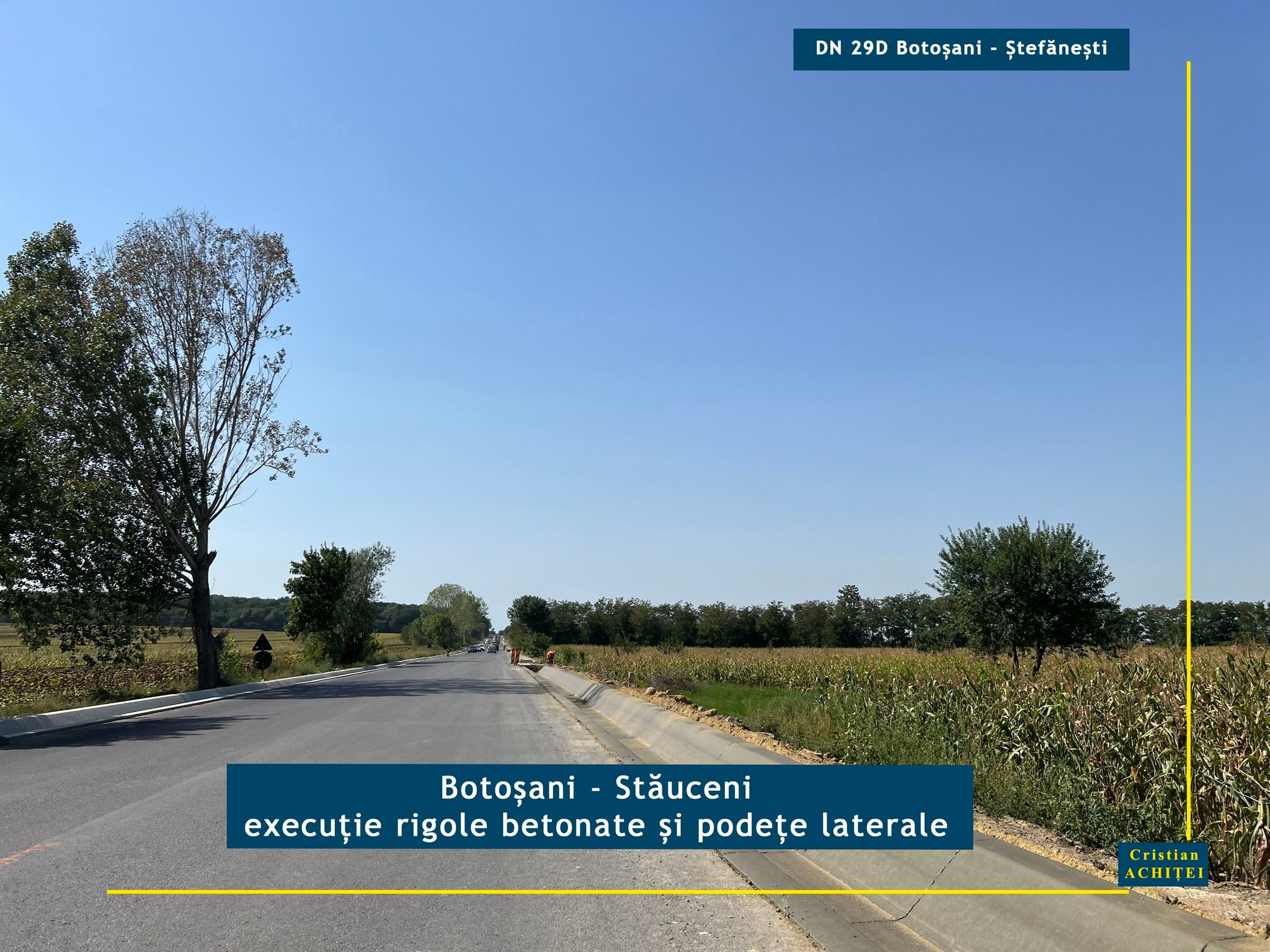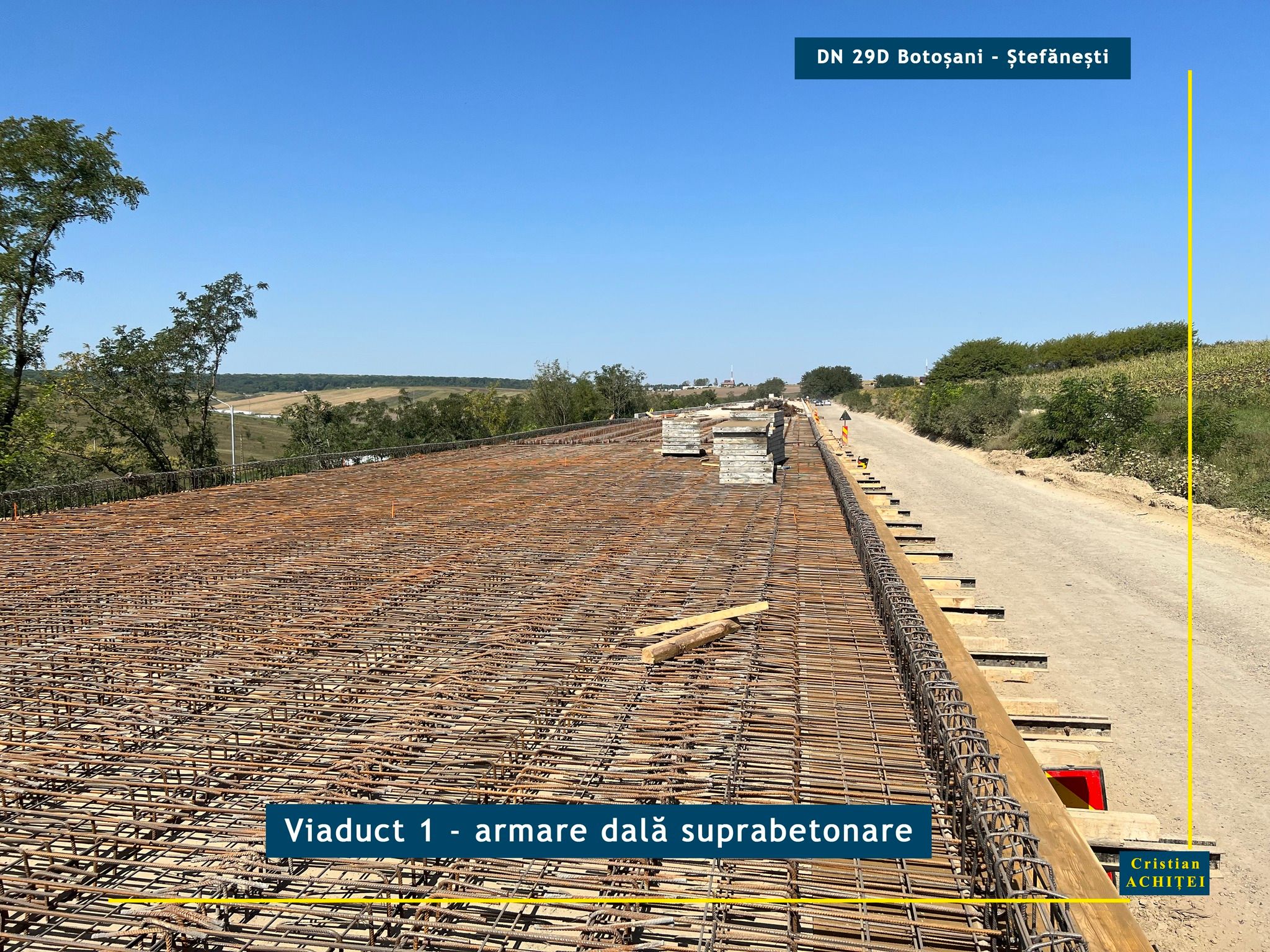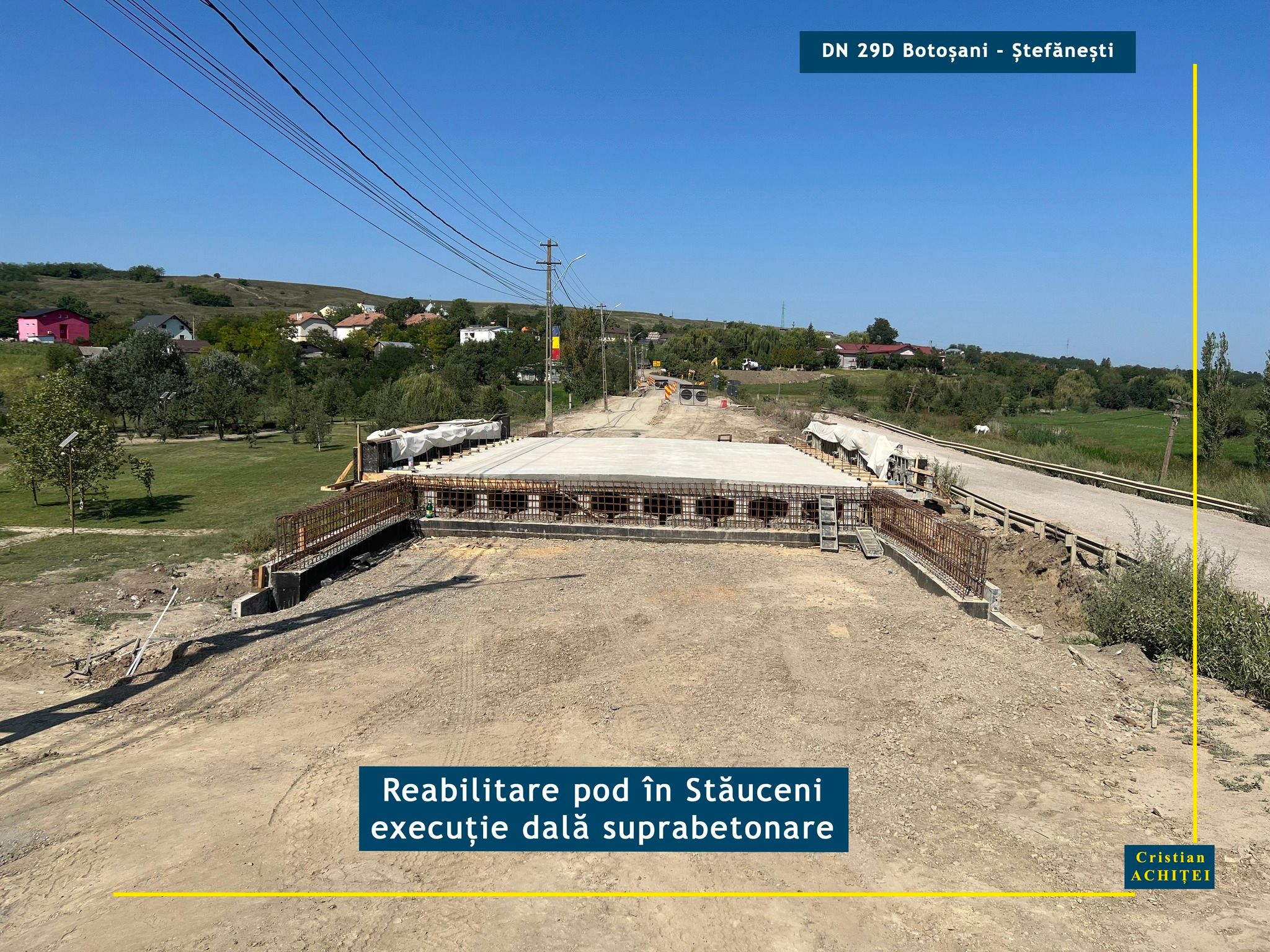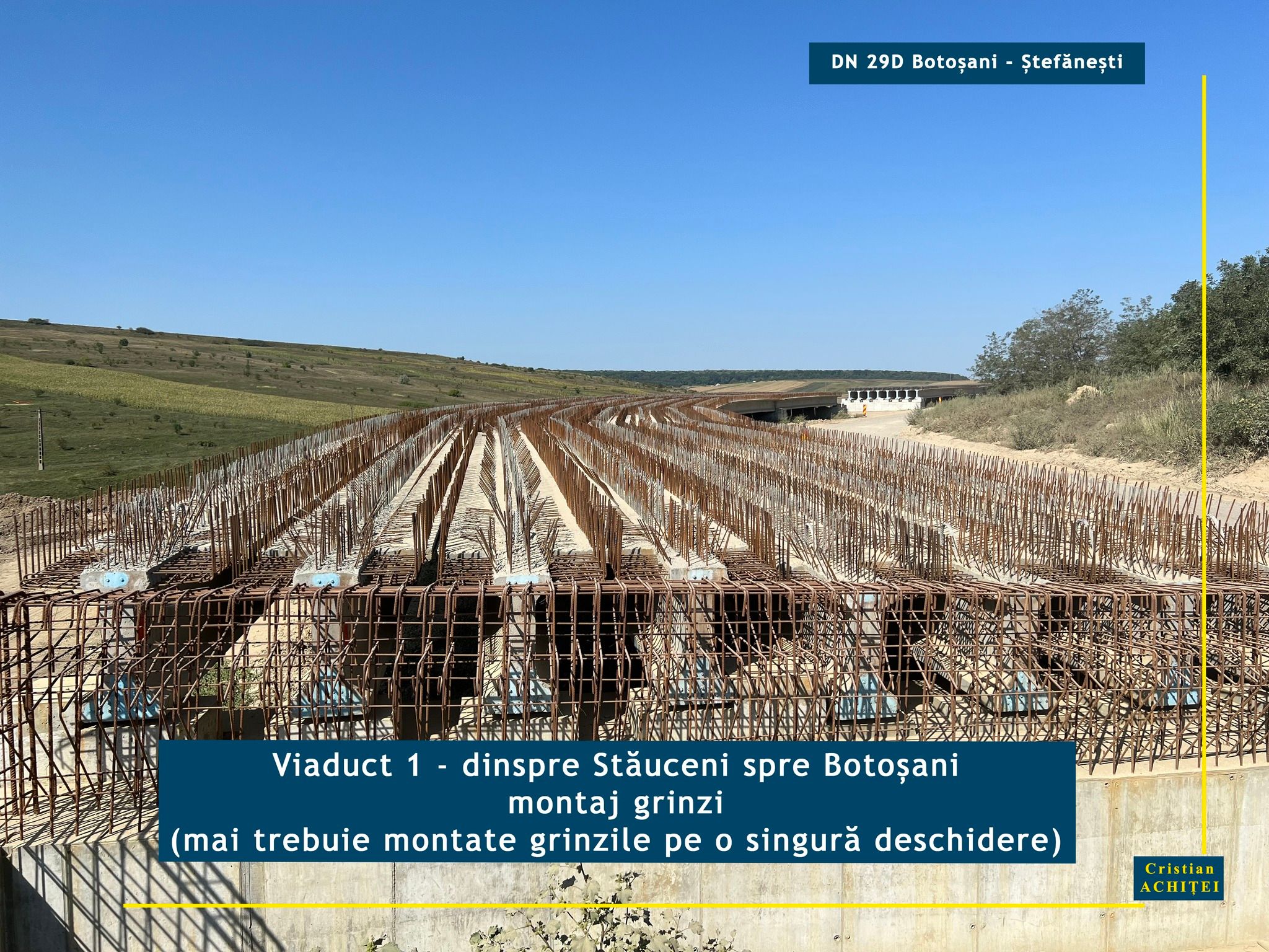 Senatorul Cristian Achiței supervizează lucrările pe drumurile de importanță majoră din județul Botoșani. Parlamentarul discută cu constructorii, merge la fața locului și deocamdată se declară mulțumit de modul în care decurge modernizarea DN 29 D Botoșani- Ștefănești. Potrivit acestuia, constructorul lucrează intens la execuția viaductelor de la intrarea și ieșirea din Stăuceni. La primul dintre acestea, cel dinspre municipiul Botoșani, a mai rămas o singură deschidere între coloanele de susținere pe care mai trebuie puse grinzi. Pe întreaga lungime a viaductului se execută dalele de suprabetonare.