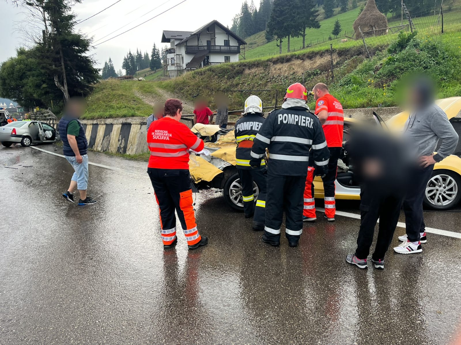 „ Intervin pompierii militari, cu o autospeciala pentru descarcerare si o ambulanta SMURD, cu sprijinul a trei echipaje SAJ”, anunța ISU Suceava.