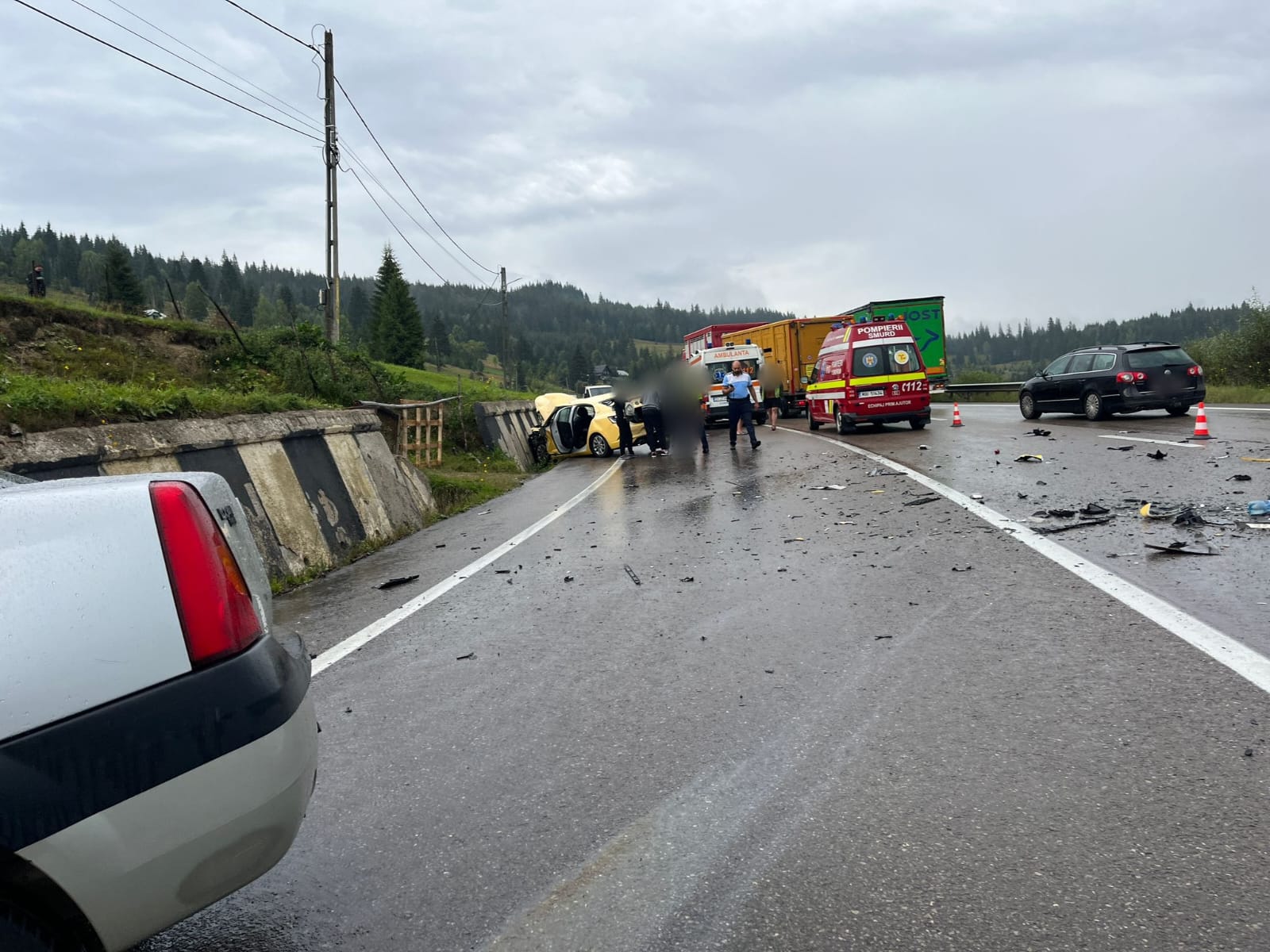 O tragedie a avut loc, marți, în Pasul Mestecăniș din județul Suceava. Un bărbat a murit, iar alte trei persoane au fost rănite după coliziunea dintre două autoturisme și un camion.