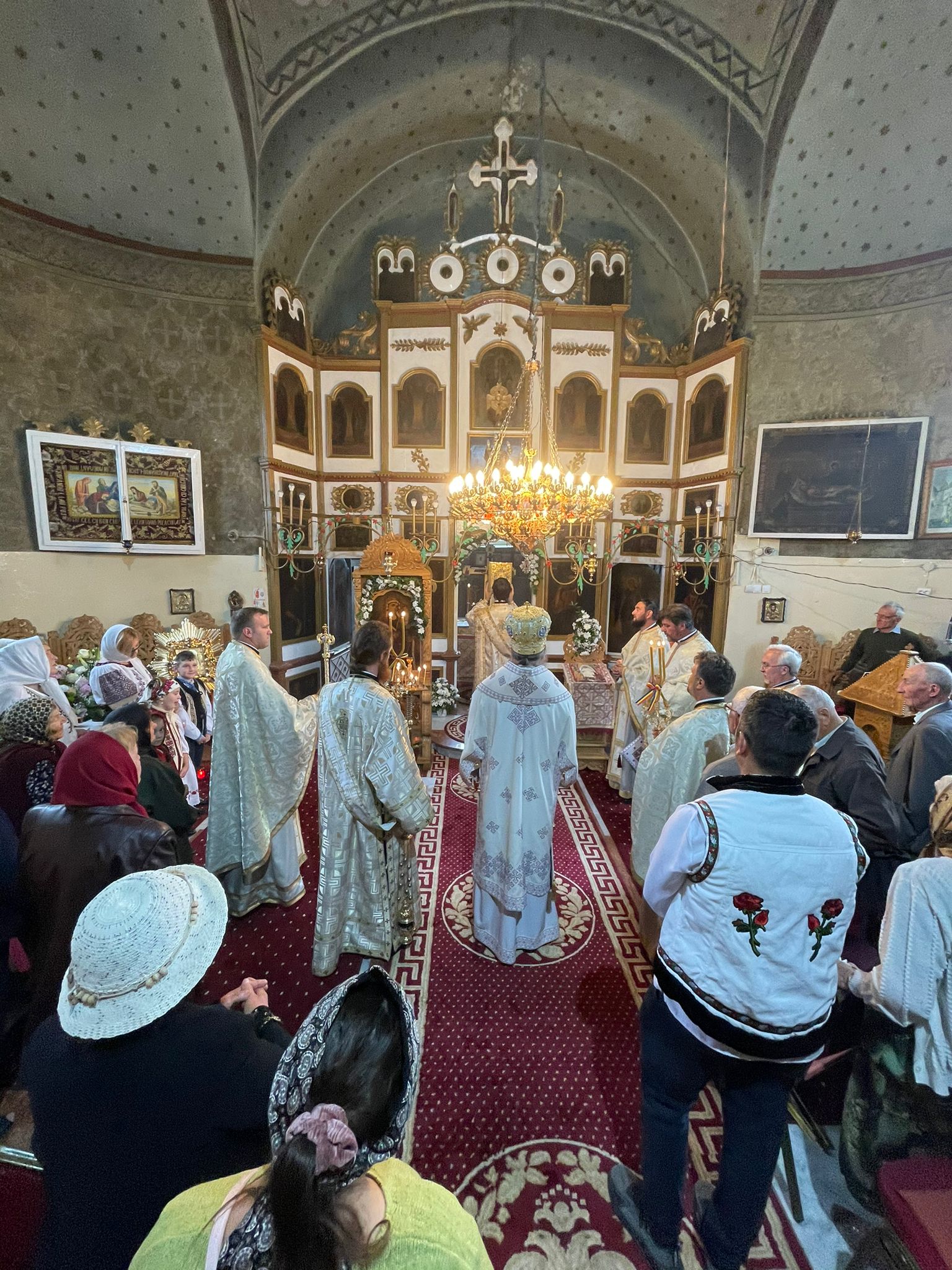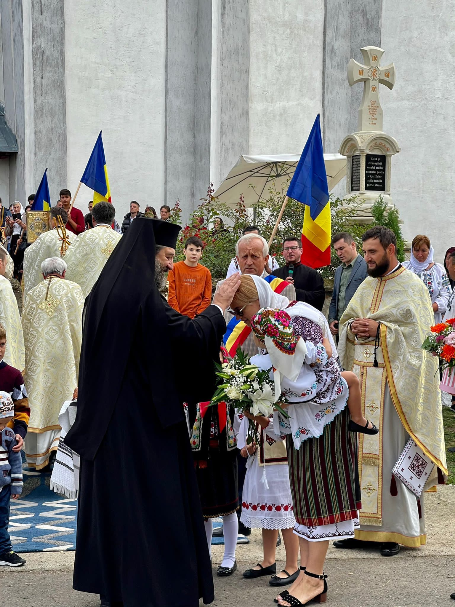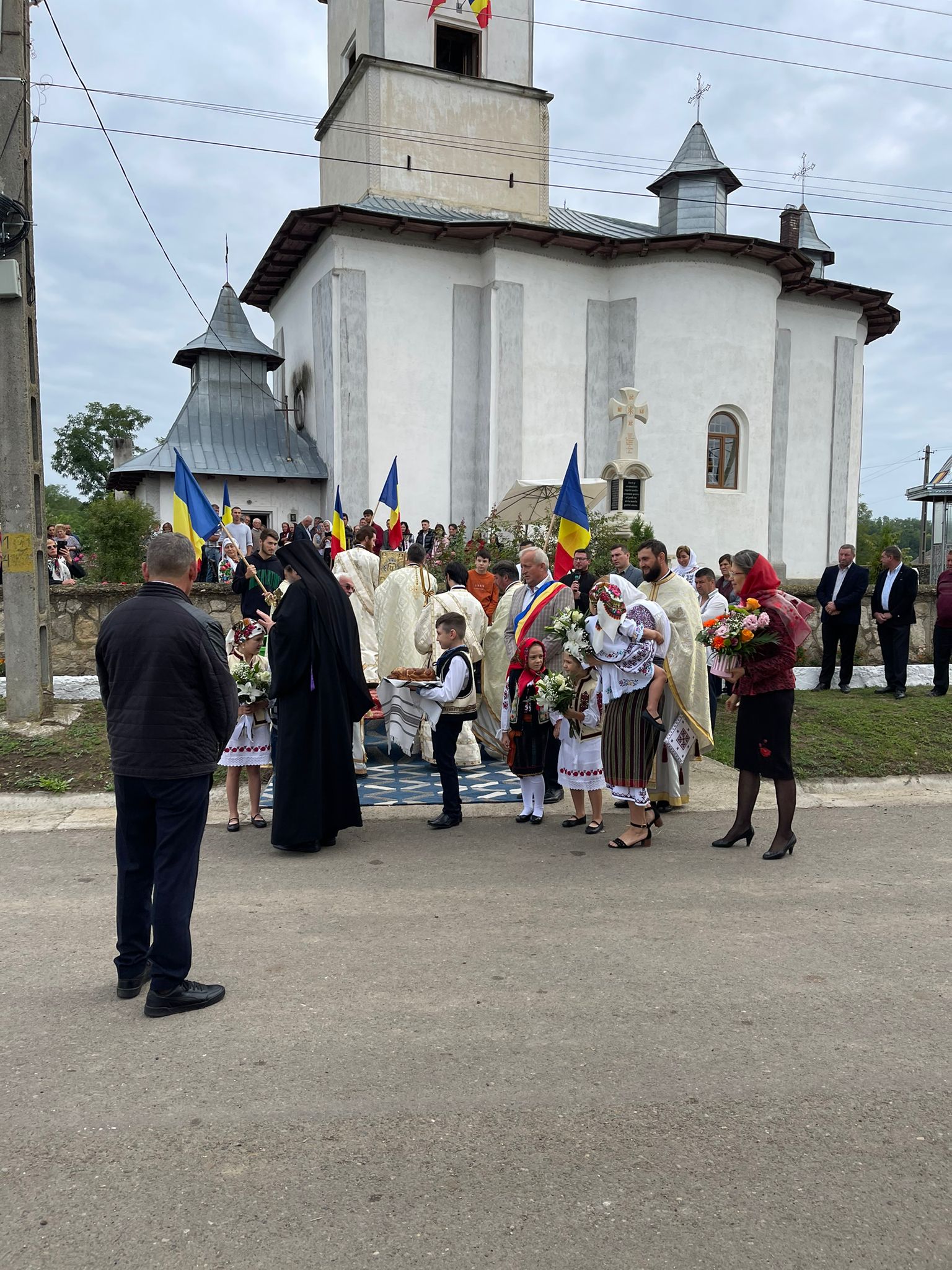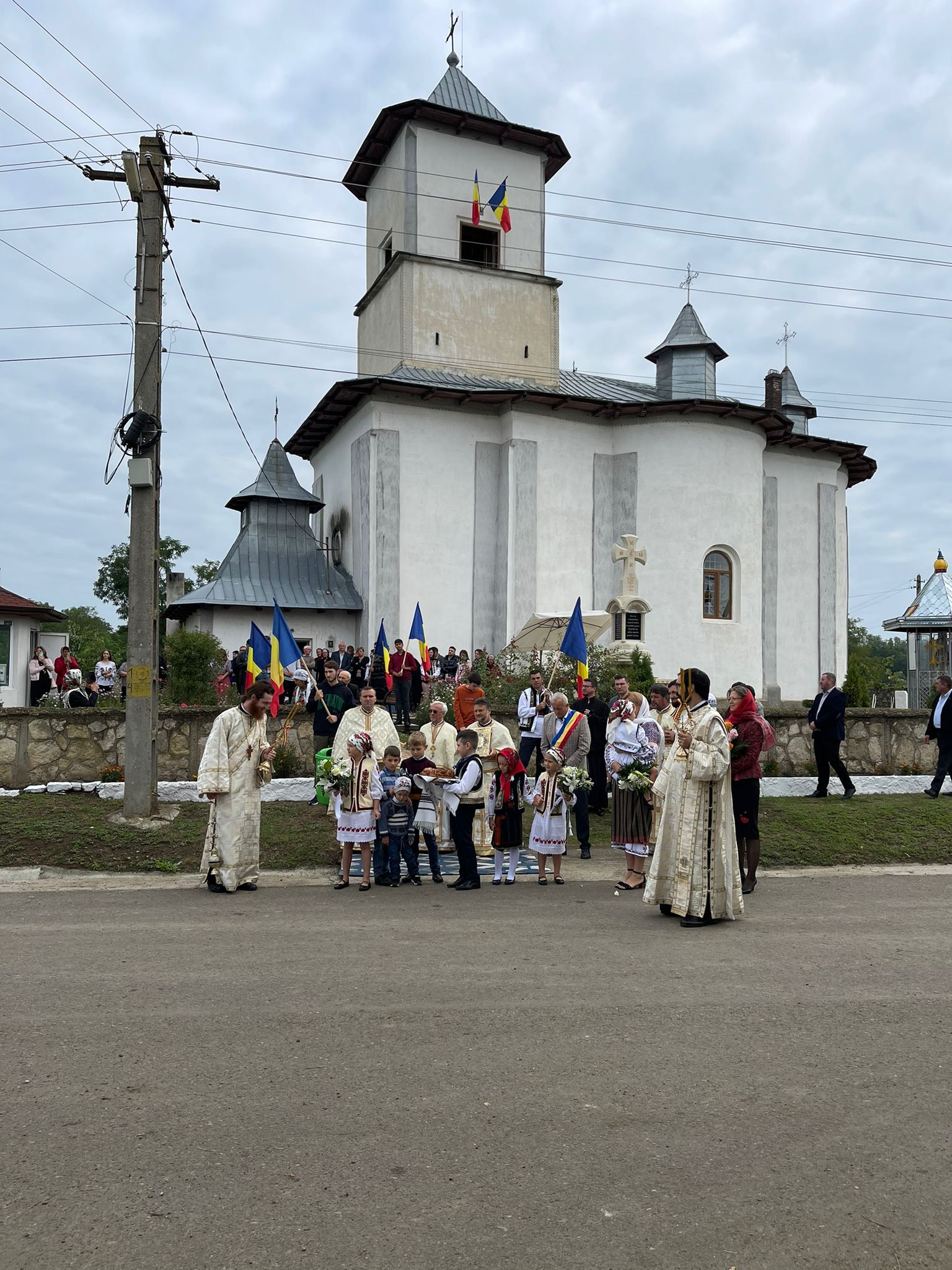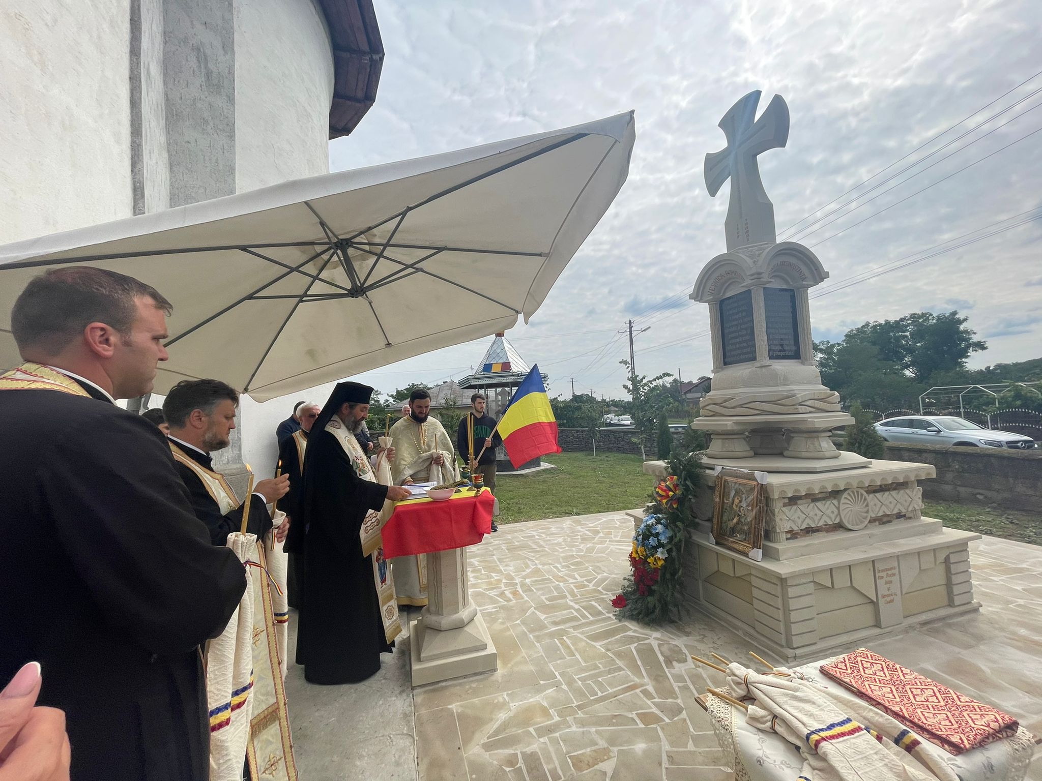 Dupa sosirea ierahului a urmat Sfanta Liturghie savarsita de Preasfintitul Nichifor Botosaneanul inconjurat de un sobor de preoti si diaconi. Apoi, toti cei prezenti au iesit in curtea bisericii si au participat la sfintirea monumentului eroilor, potrivit părintelui paroh Nicu Sorin Axinte.