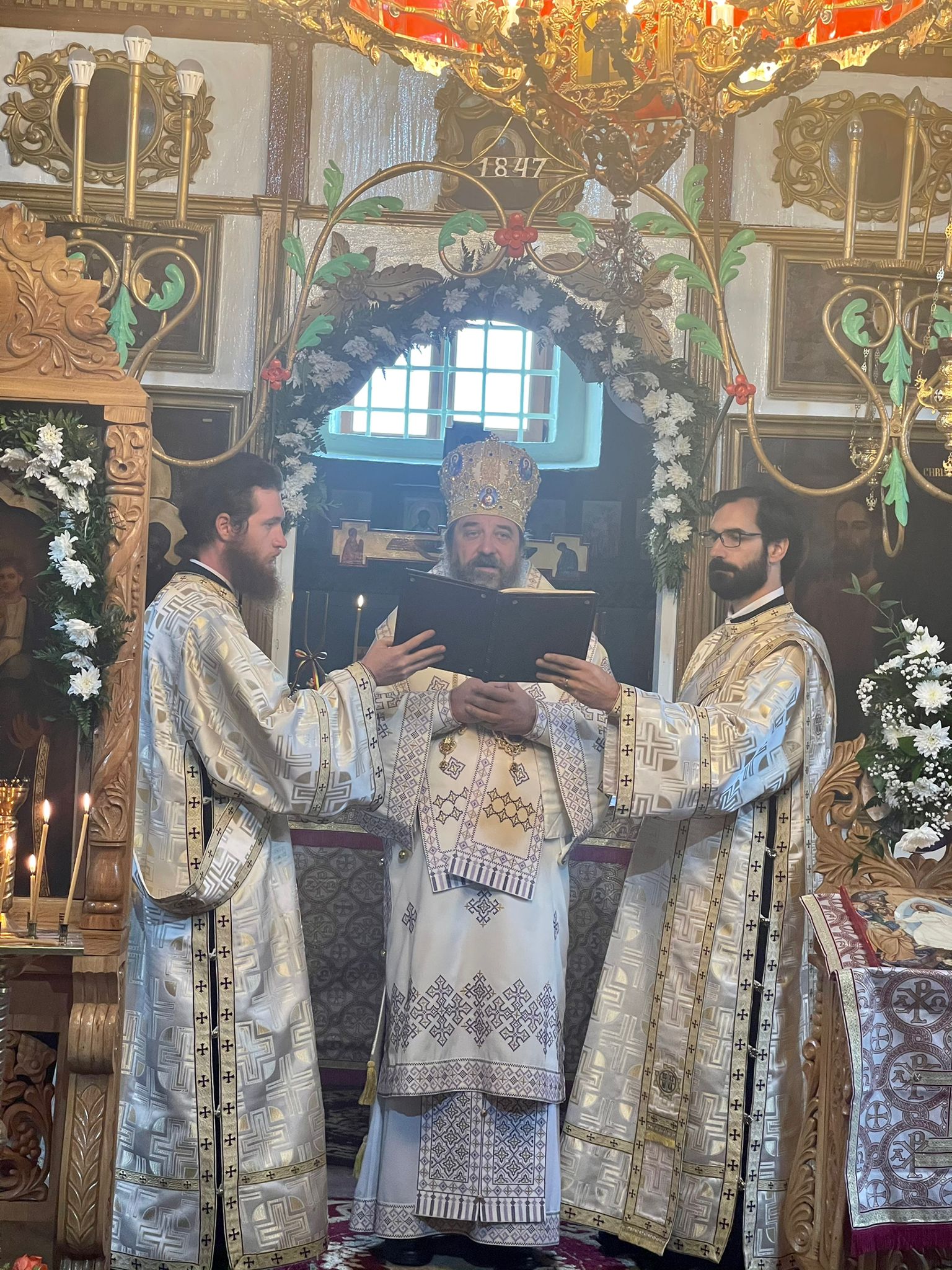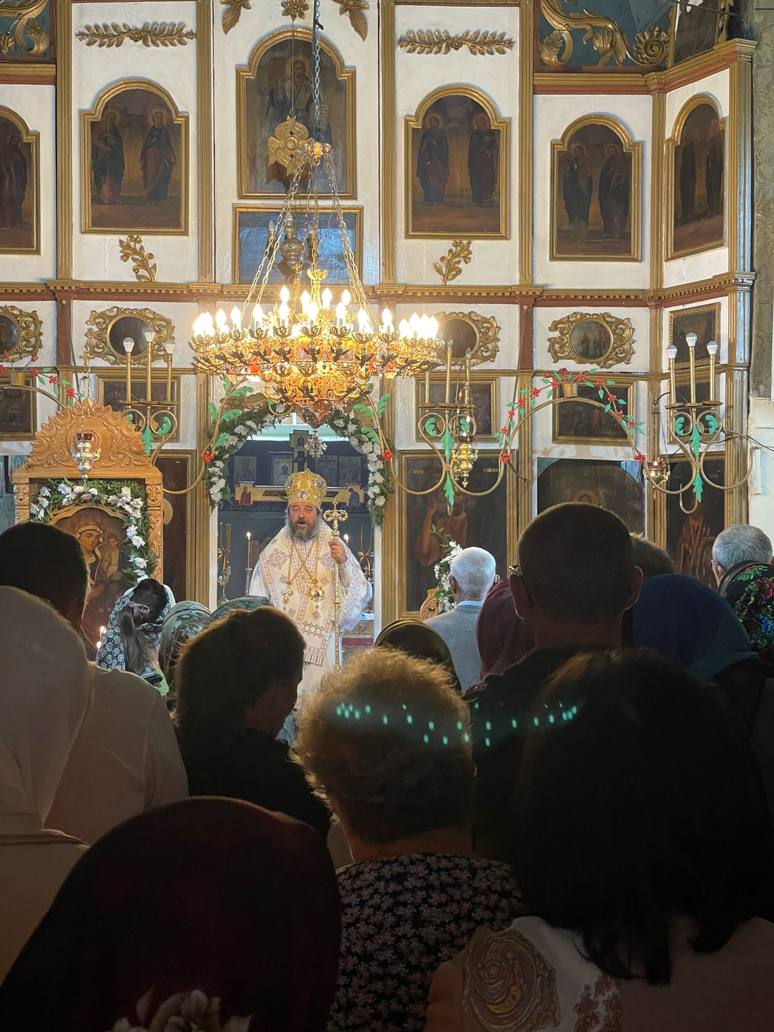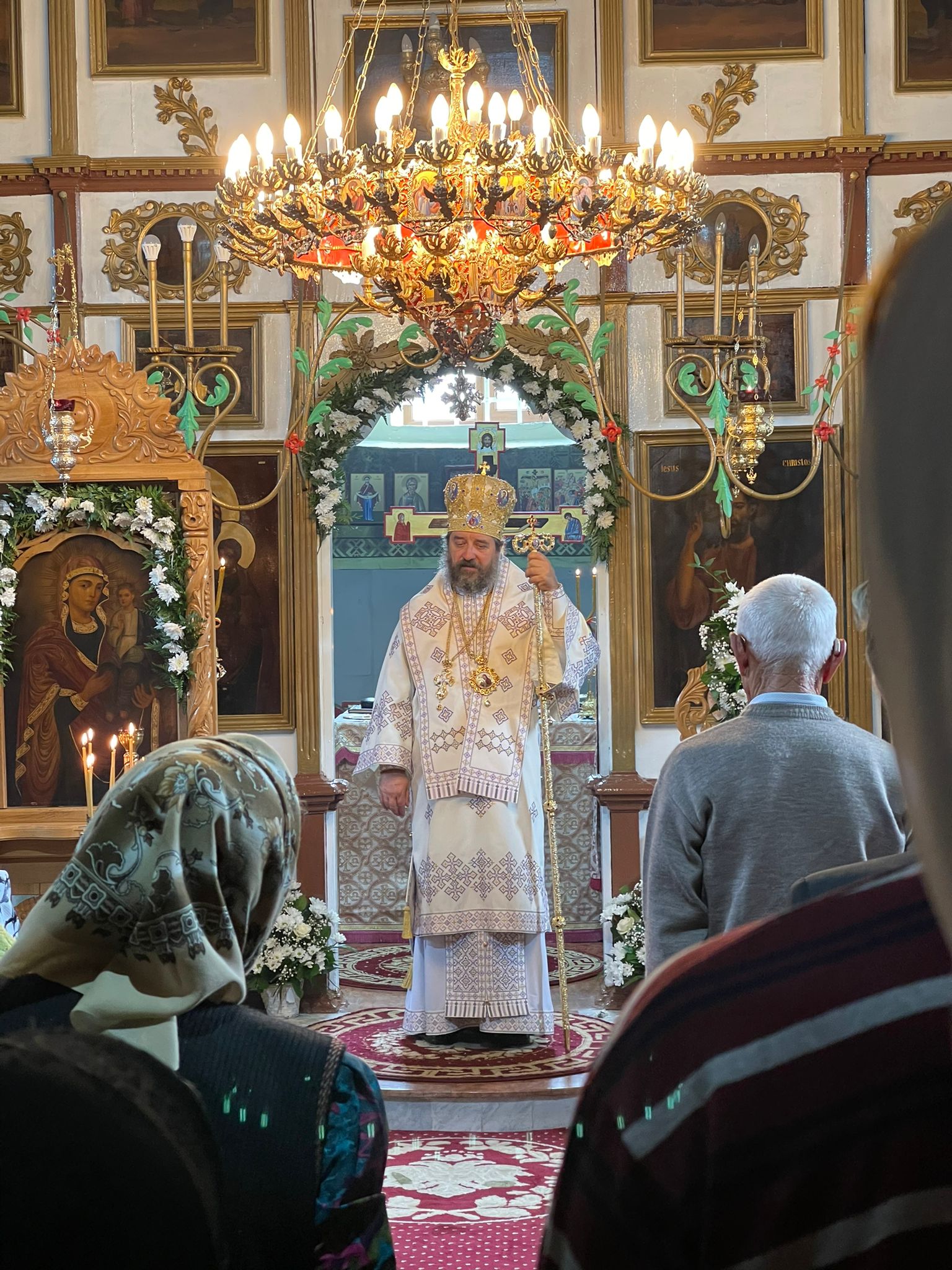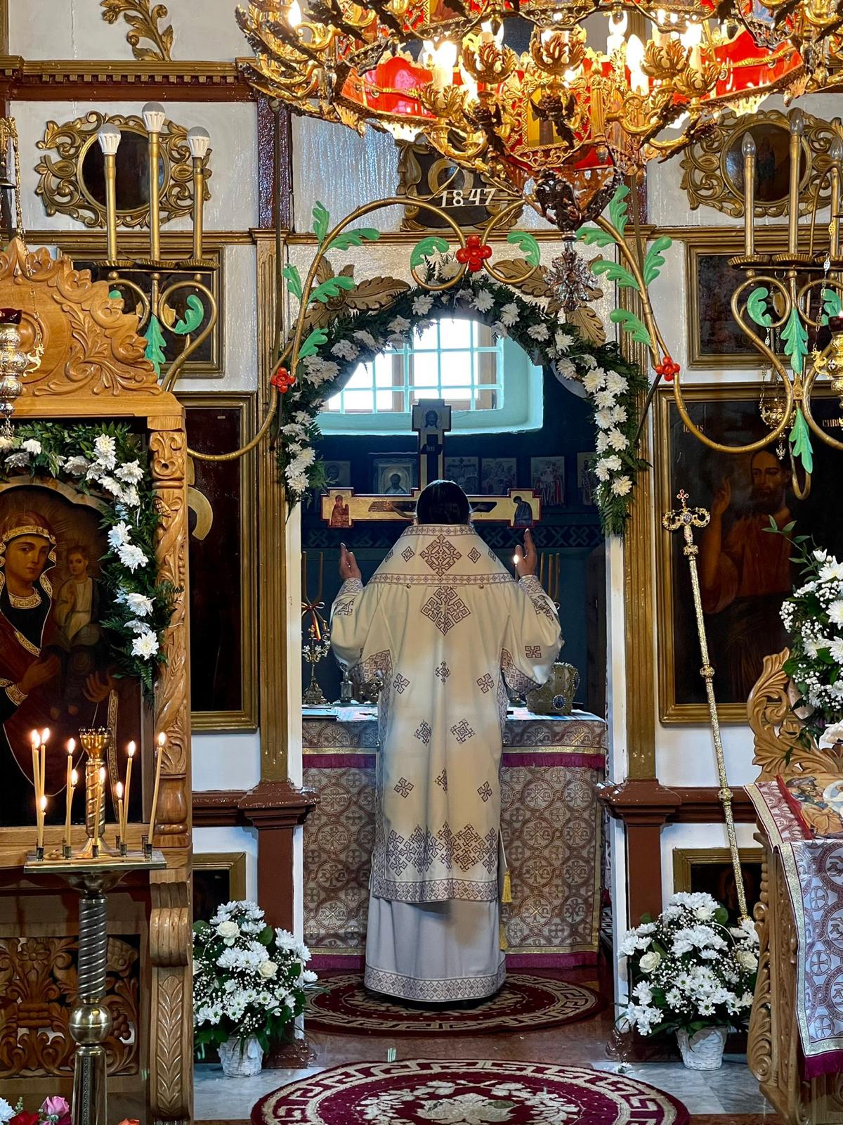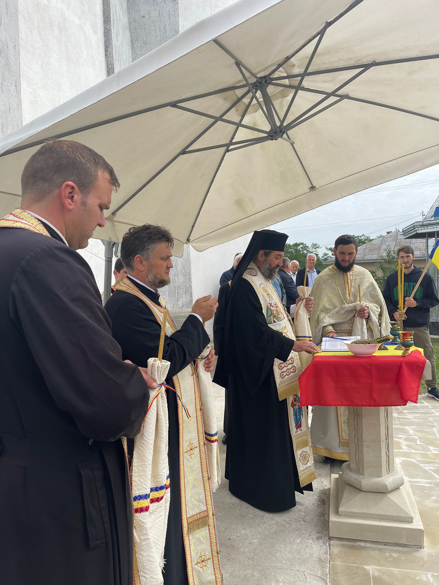 Dupa sosirea ierahului a urmat Sfanta Liturghie savarsita de Preasfintitul Nichifor Botosaneanul inconjurat de un sobor de preoti si diaconi. Apoi, toti cei prezenti au iesit in curtea bisericii si au participat la sfintirea monumentului eroilor, potrivit părintelui paroh Nicu Sorin Axinte.