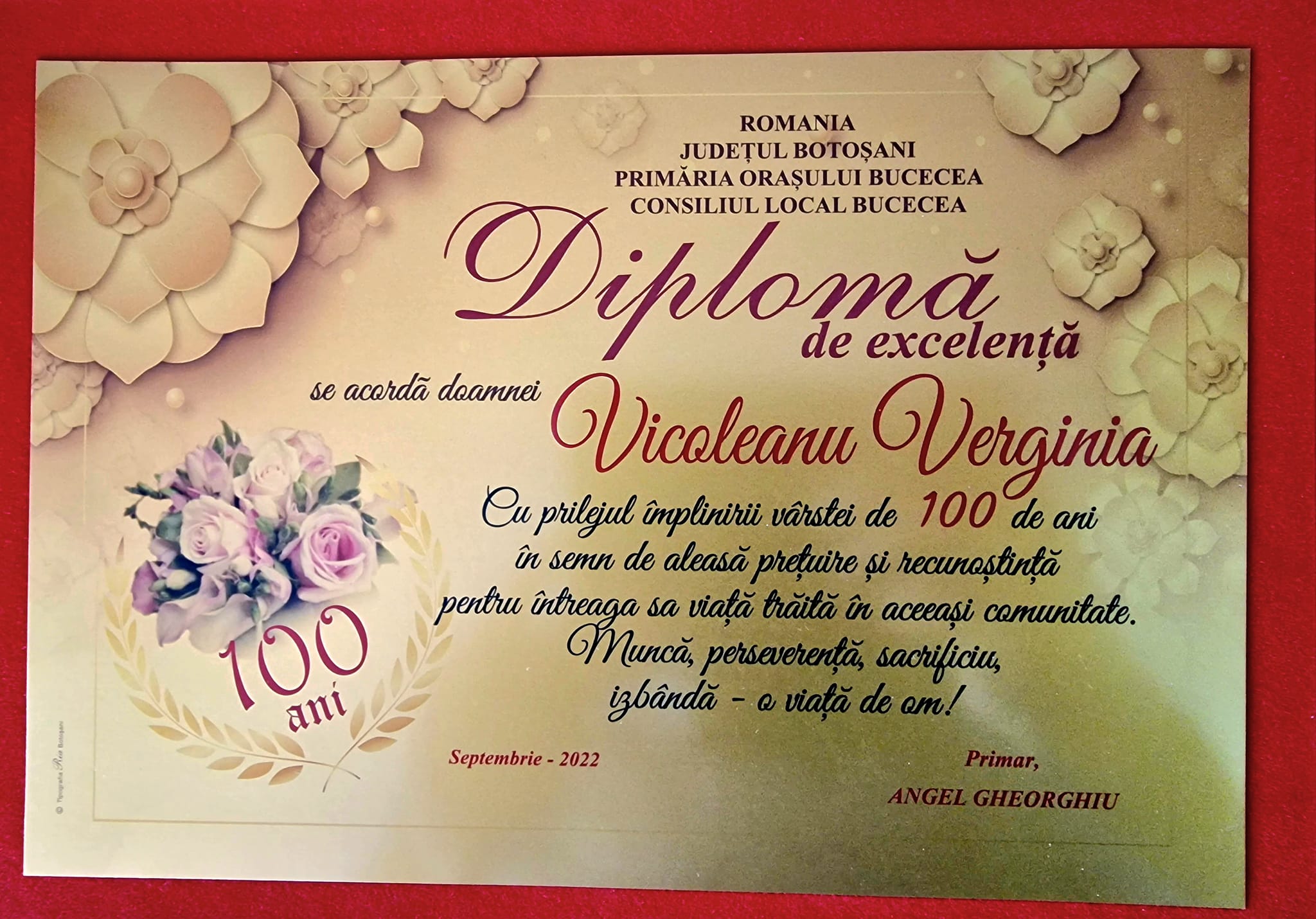 „Viata i-a oferit si bune si rele, a trait cumpatat, a muncit, si a zambit cand m-a recunoscut, pentru ca am fost vecini in copilarie. Din partea Primariei orasului Bucecea si a Consiliului local i-am daruit un tort, un buchet de flori si un premiu de 500 lei alaturi de o diploma cu centenar”, a spus primarul Angel Gheorghiu.