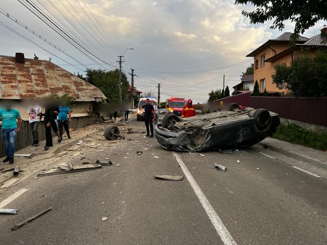 Autoturismul a ajuns cu roțile în sus, iar traficul a fost blocat. Polițiștii au demarat o anchetă pentru a stabili cum s-a produs nefericitul incident.