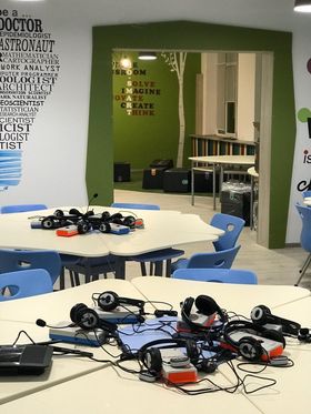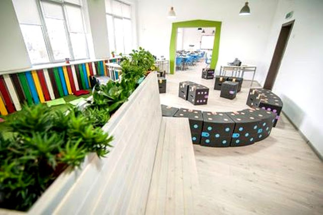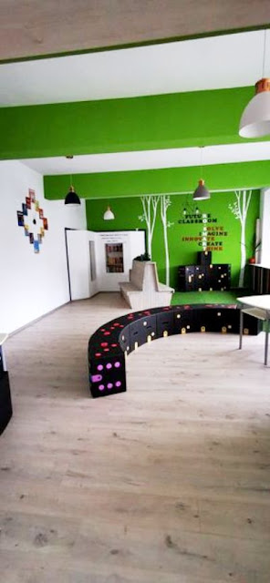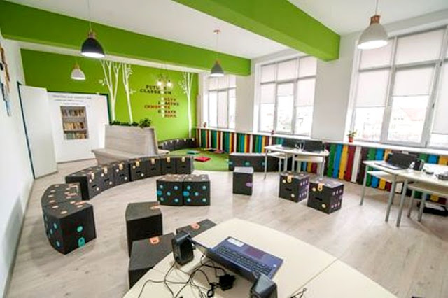 „Vreau să vă arăt o clasă "a viitorului", asa cum am gândit-o și am creat-o. Renovarea a fost făcută prin finanțarea primăriei, iar dotările au fost susținute de o firmă, ca urmare a unui proiect câștigător. Nu învață o singură clasă acolo, vin clase pe rând. Include laborator fonetic pentru învățarea limbilor străine, cuburi interactive care comunica wireless cu tabla interactivă. Tabla interactivă multi-touch permite 100 de atingeri odată. The future classroom mai este dotată cu un microscop de ultimă generație, care transmite imaginea mărită de până la 100 de ori pe tabla interactivă. Sala de clasă îmbină zone de învățare, dar si de relaxare. Sper să vă placă!”, a precizat pentru sursa citată, Claudia Hârtie.