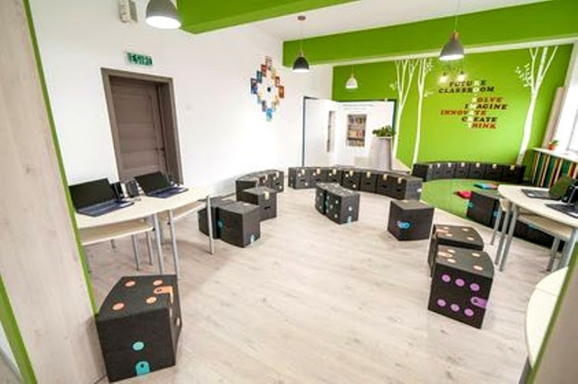 „Vreau să vă arăt o clasă „a viitorului”, asa cum am gândit-o și am creat-o. Renovarea a fost făcută prin finanțarea primăriei, iar dotările au fost susținute de o firmă, ca urmare a unui proiect câștigător. Nu învață o singură clasă acolo, vin clase pe rând. Include laborator fonetic pentru învățarea limbilor străine, cuburi interactive care comunica wireless cu tabla interactivă. Tabla interactivă multi-touch permite 100 de atingeri odată. The future classroom mai este dotată cu un microscop de ultimă generație, care transmite imaginea mărită de până la 100 de ori pe tabla interactivă. Sala de clasă îmbină zone de învățare, dar si de relaxare. Sper să vă placă!”, a precizat pentru sursa citată, Claudia Hârtie.