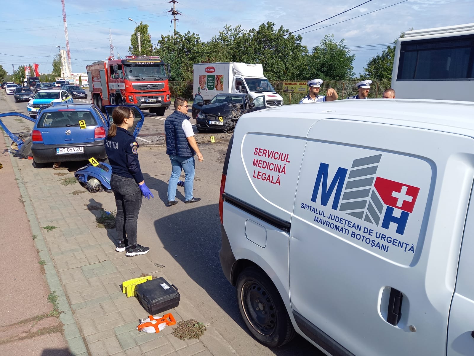 „Din verificările efectuate până în acest moment s-a stabilit faptul că un autoturism, condus de un tânăr, de 28 de ani, în timp ce se deplasa pe Șoseaua Iașului, din municipiul Botoșani, direcția de deplasare, dinspre Alfa Land înspre Calea Națională, ar fi pătruns pe sensul opus de mers, intrând în impact cu un autoturism condus de un bărbat, de 44 de ani. În urma impactului, bărbatul de 44 de ani a decedat, iar alte patru persoane au fost rănite, fiind transportate la spital pentru acordarea de îngrijiri medicale. Polițiștii continuă cercetările sub aspectul comiterii infracțiunilor de ucidere din culpă și vătămare corporală din culpă”, precizează purtătorul de cuvânt al Poliției Botoșani, Delia Nenișcu.