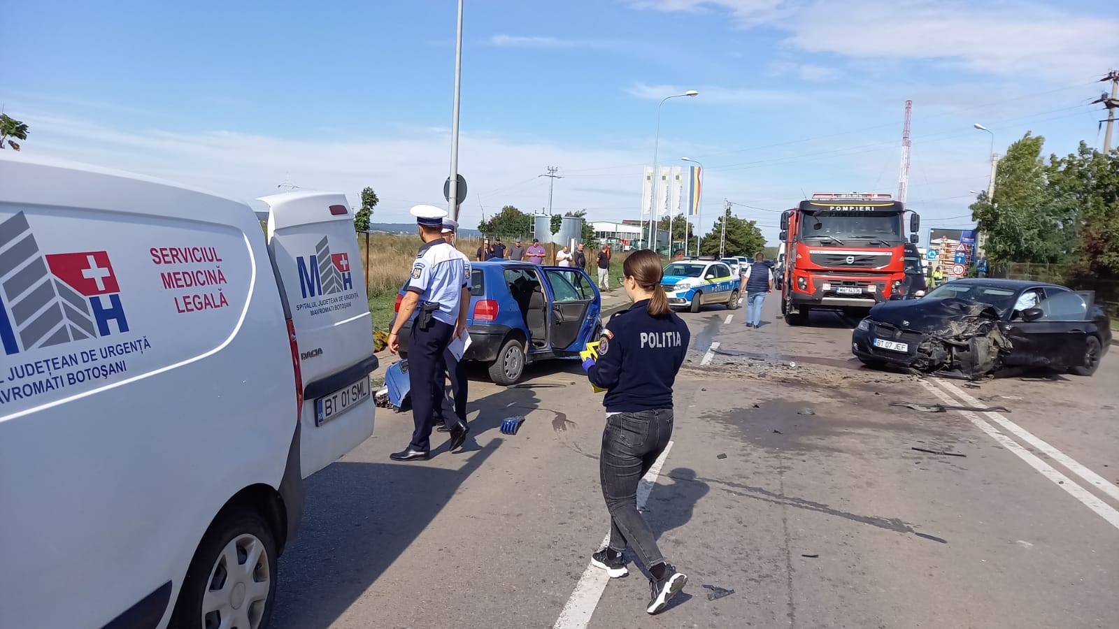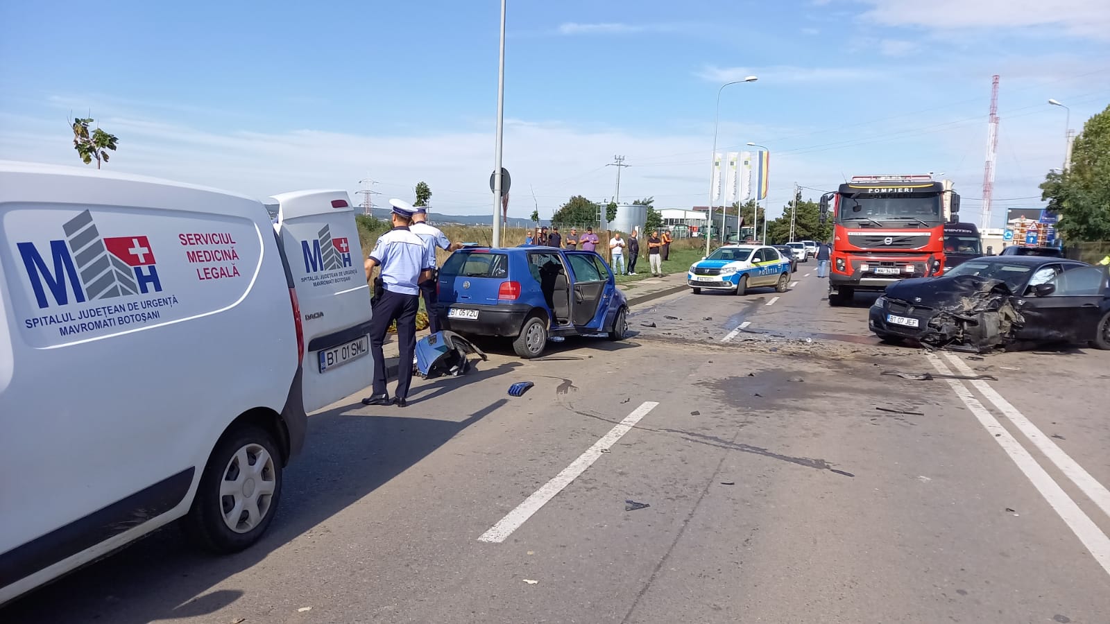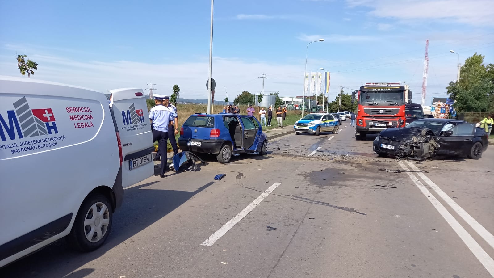 Din primele informații, șoferul de 44 de ani circula cu un autoturism Polo dinspre Botoșani spre Frumușica, iar la ieșirea din sensul giratoriu a fost lovit de un autoturism BMW condus de un tânăr, care a intrat pe sensul opus.