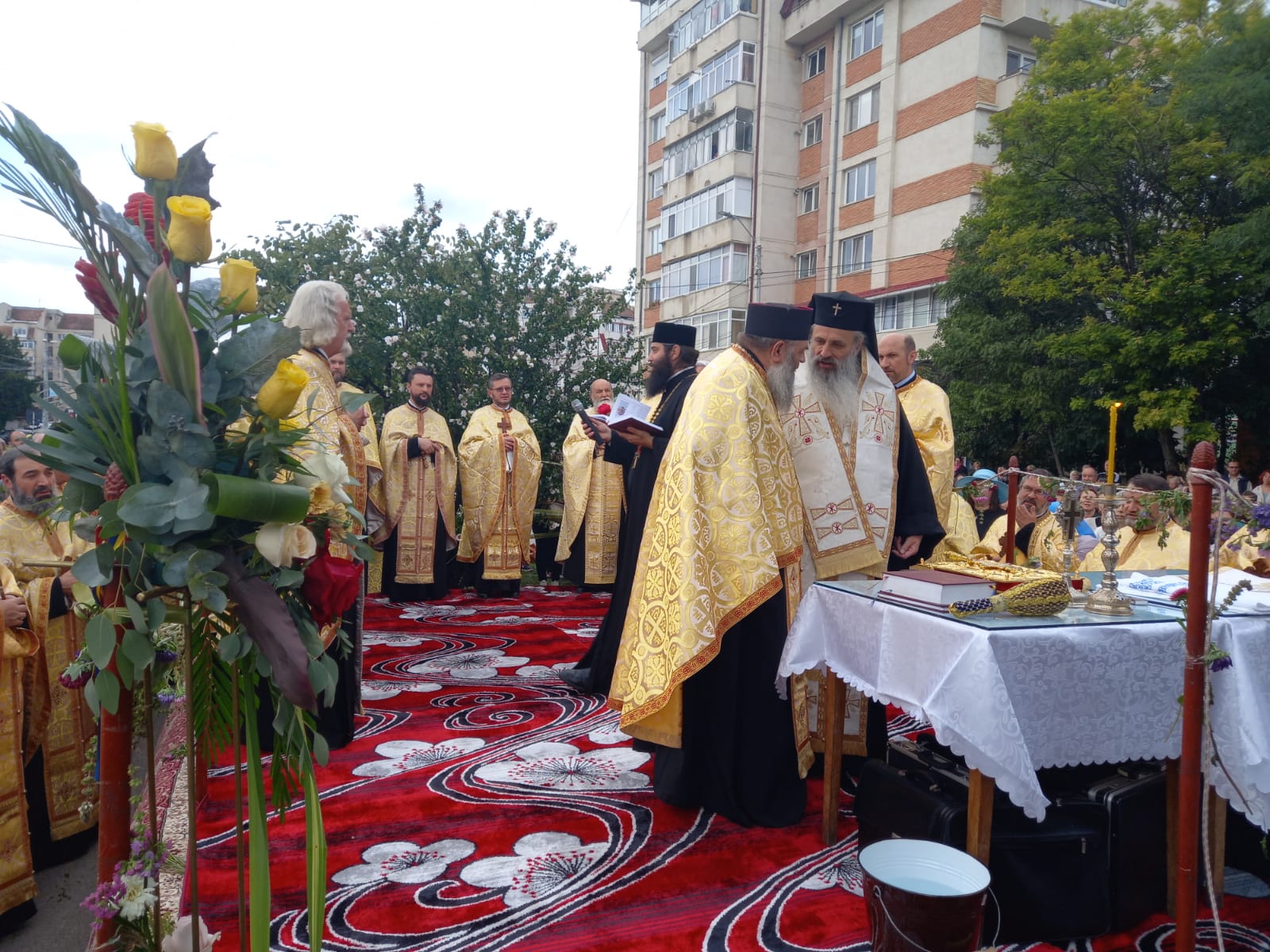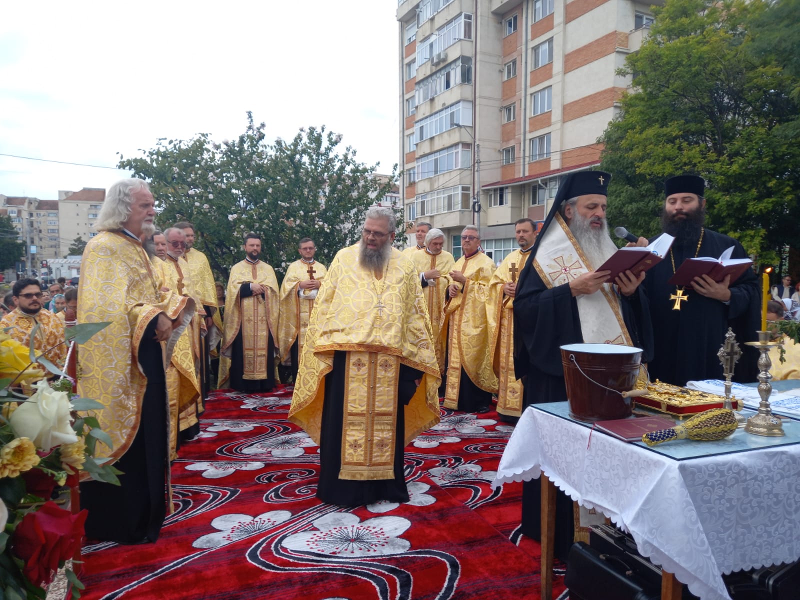 Evenimentul a debutat cu un concert de cântări religioase susținut de către Corala „Atheneu”, dirijată de prof. dr. Laurențiu Palade. Înaltpreasfințitul Părinte Teofan, mitropolitul Moldovei și Bucovinei, a fost întâmpinat de credincioși cu flori de busuioc în mâini.